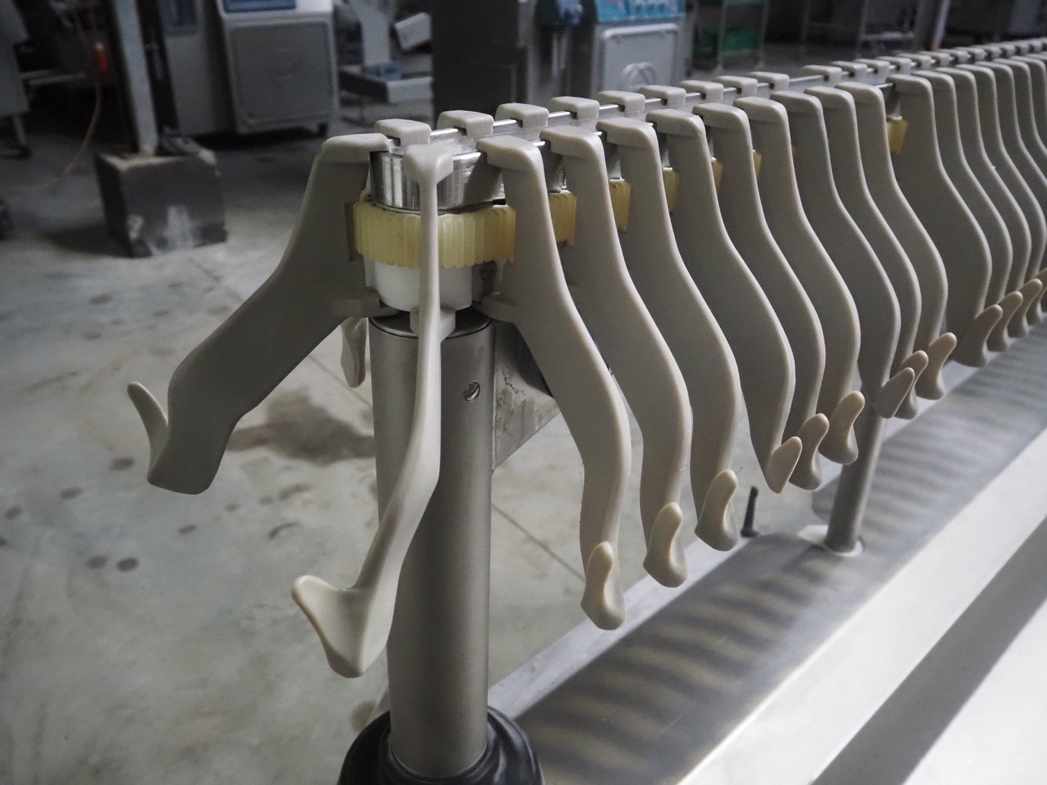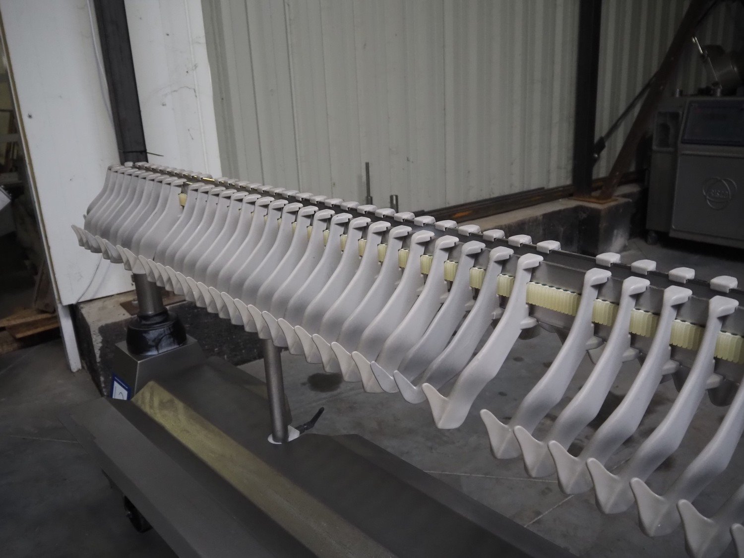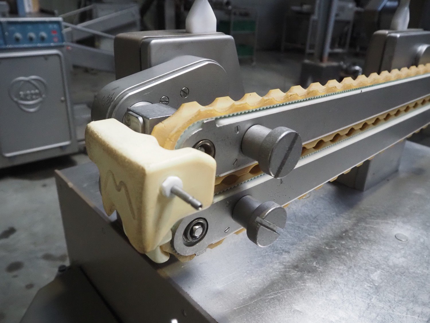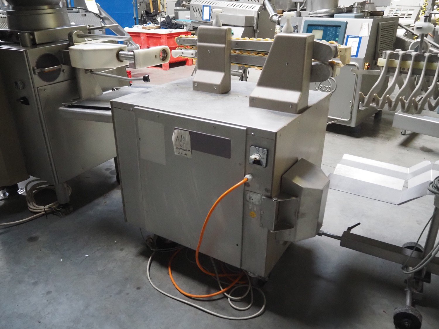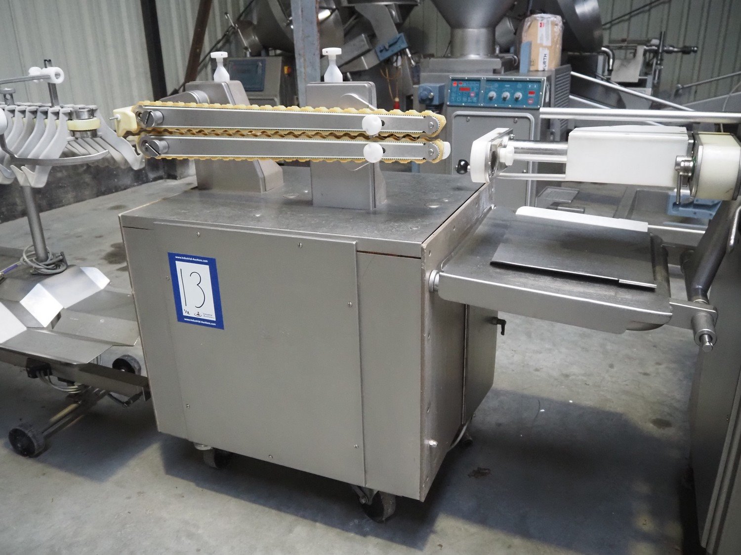 Handtmann linking machine, year of construction: 2000, 400 V, 50 Hz, 3.5 A, 2.5 kW, belt width: 25 mm, total dimensions: 830 mm x 700 mm x 1270 mm. Including Handtmann hanging line, type: 220-16, serial number: 1310, year of construction: 2003, dimensions: 2550 mm x 650 mm x 1290 mm. Kavel locatie: Lipsko 241, 22-400 Zamość, Polen