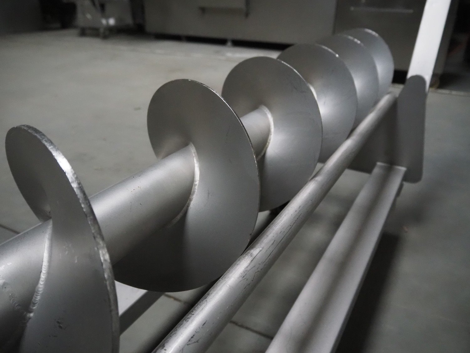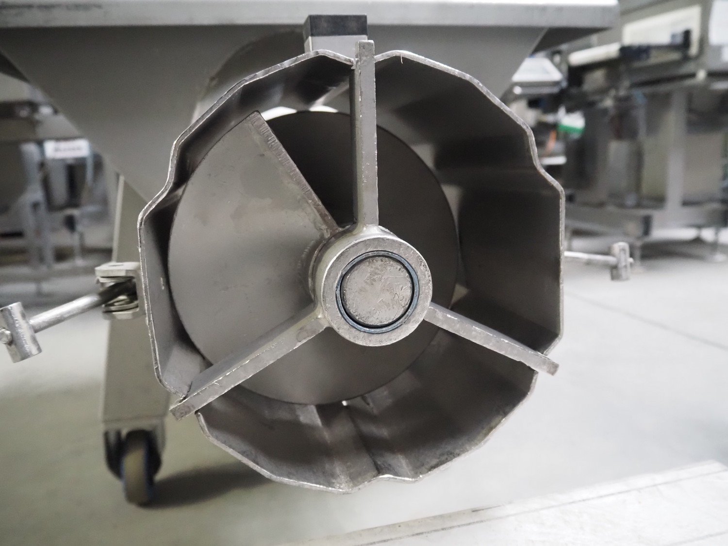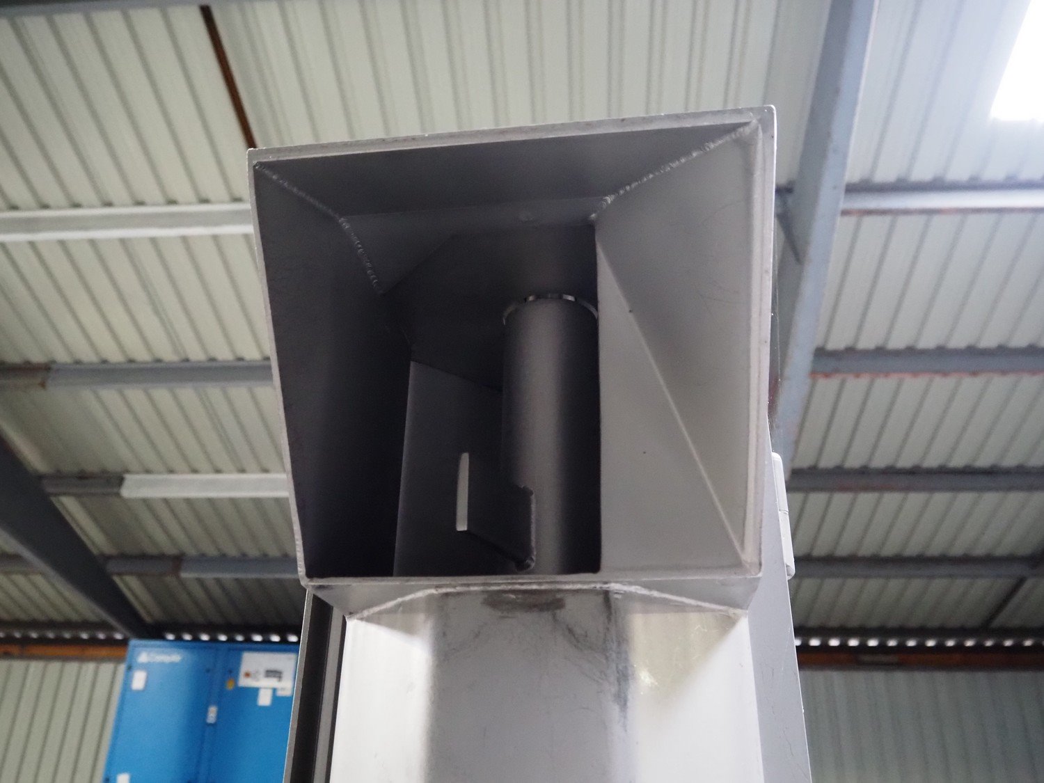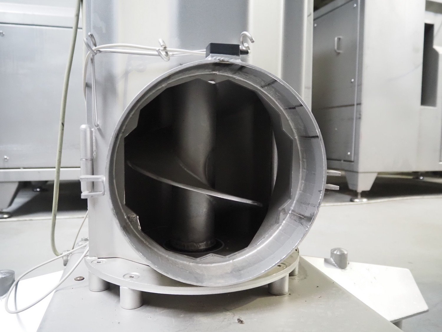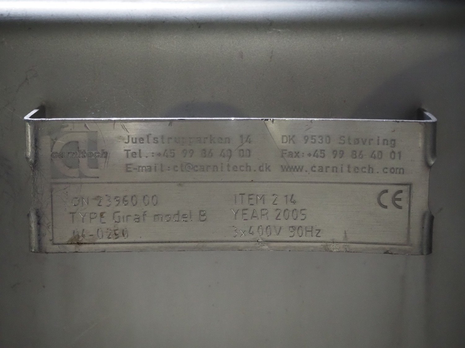 Carnitech giraf, type: Giraf model B, serial number: 04-0250, year of construction: 2005, 400 V, 3 PH, 50 Hz, screw diameter: 230 mm, tier: 190 mm, elevating height: 2000 mm, total dimensions: 1000 mm x 1000 mm x 2400 mm. Including mobile s/s infeed bunker, dimensions: 1400 mm x 400 mm x 400 mm. Including trolley with screw, dimensions: 1300 mm x 500 mm x 970 mm. Kavel locatie: Lipsko 241, 22-400 Zamość, Polen