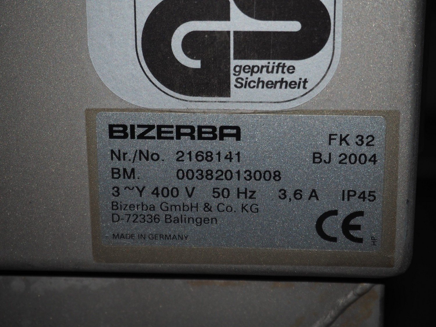 Bizerba GmbH & Co. KG bandsaw, type: FK 32, serial number: 2168141, year of construction: 2004, 400 V, 3 Ph, 50 Hz, 3.6 A, table dimensions: 750 mm x 780 mm, total dimensions: 710 mm x 780 mm x 1600 mm. Kavel locatie: Lipsko 241, 22-400 Zamość, Polen