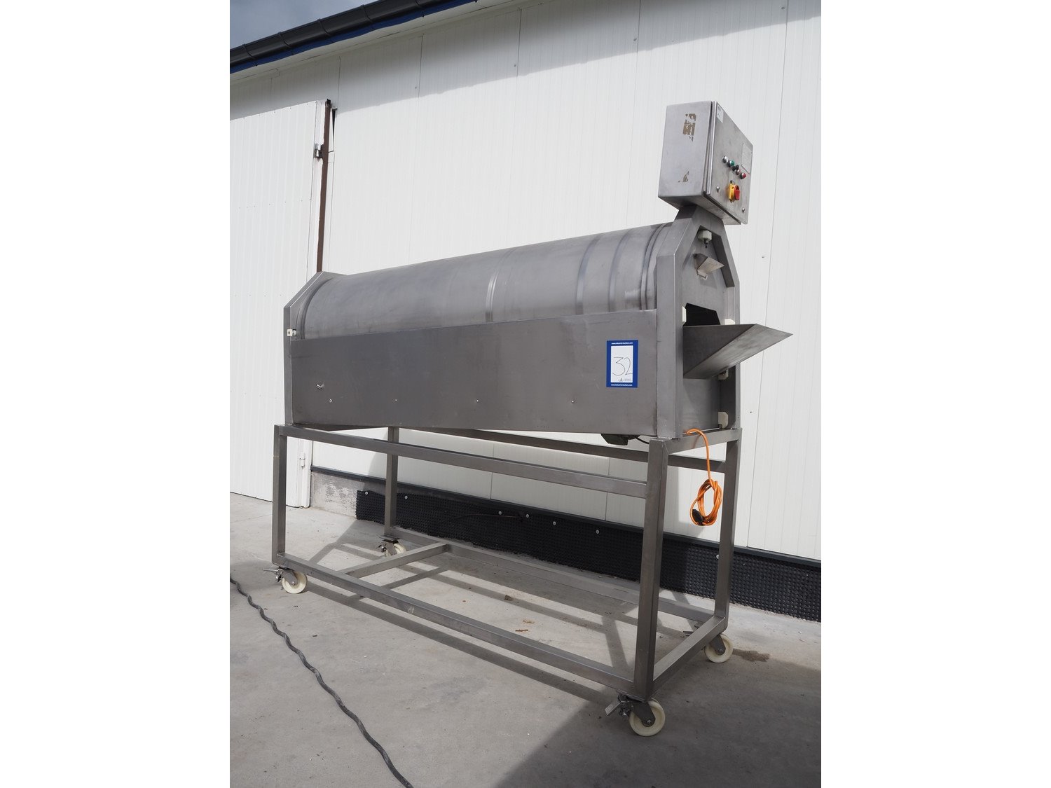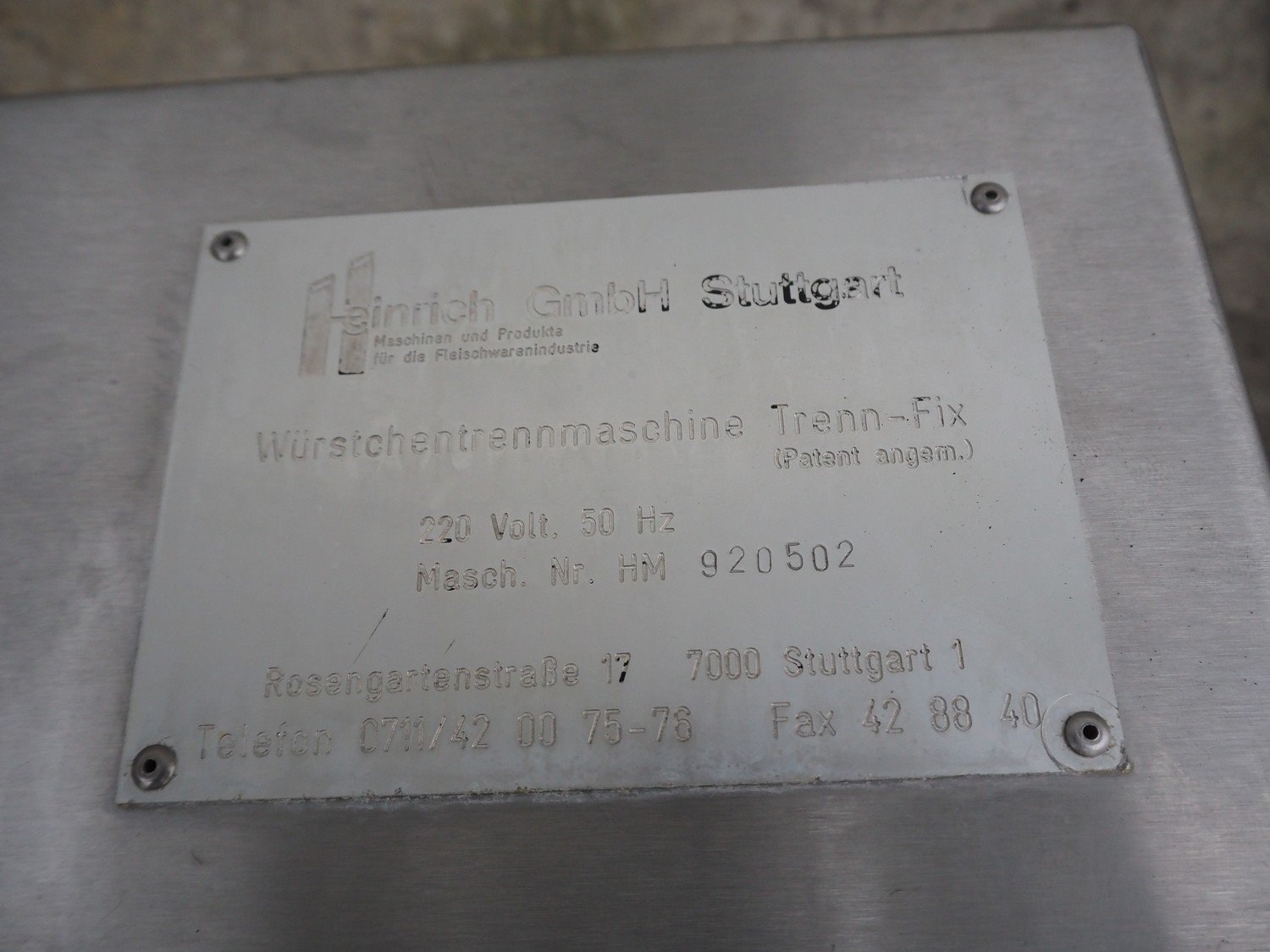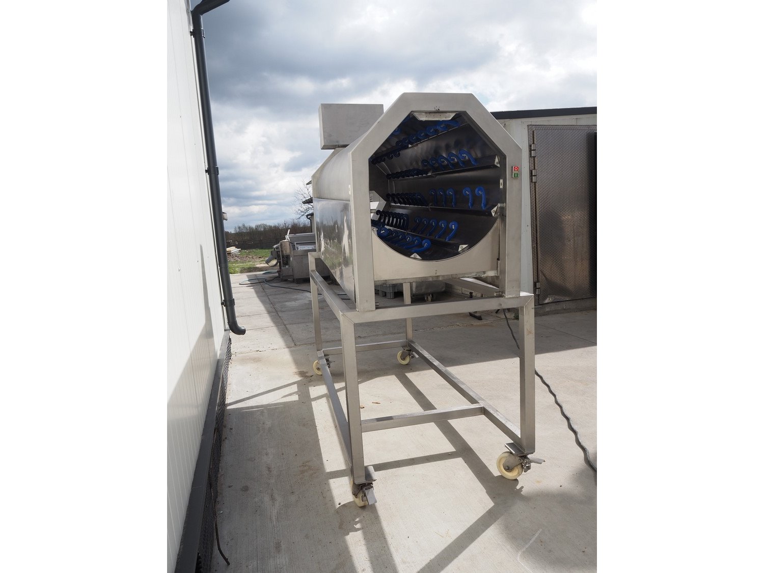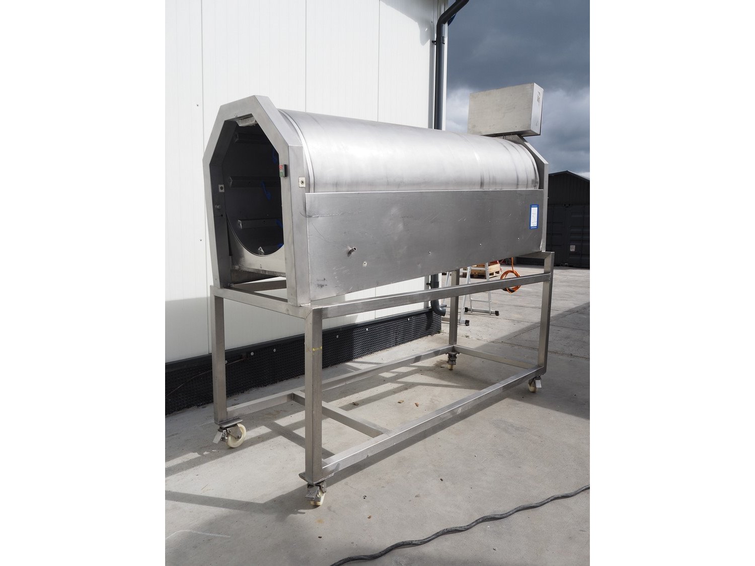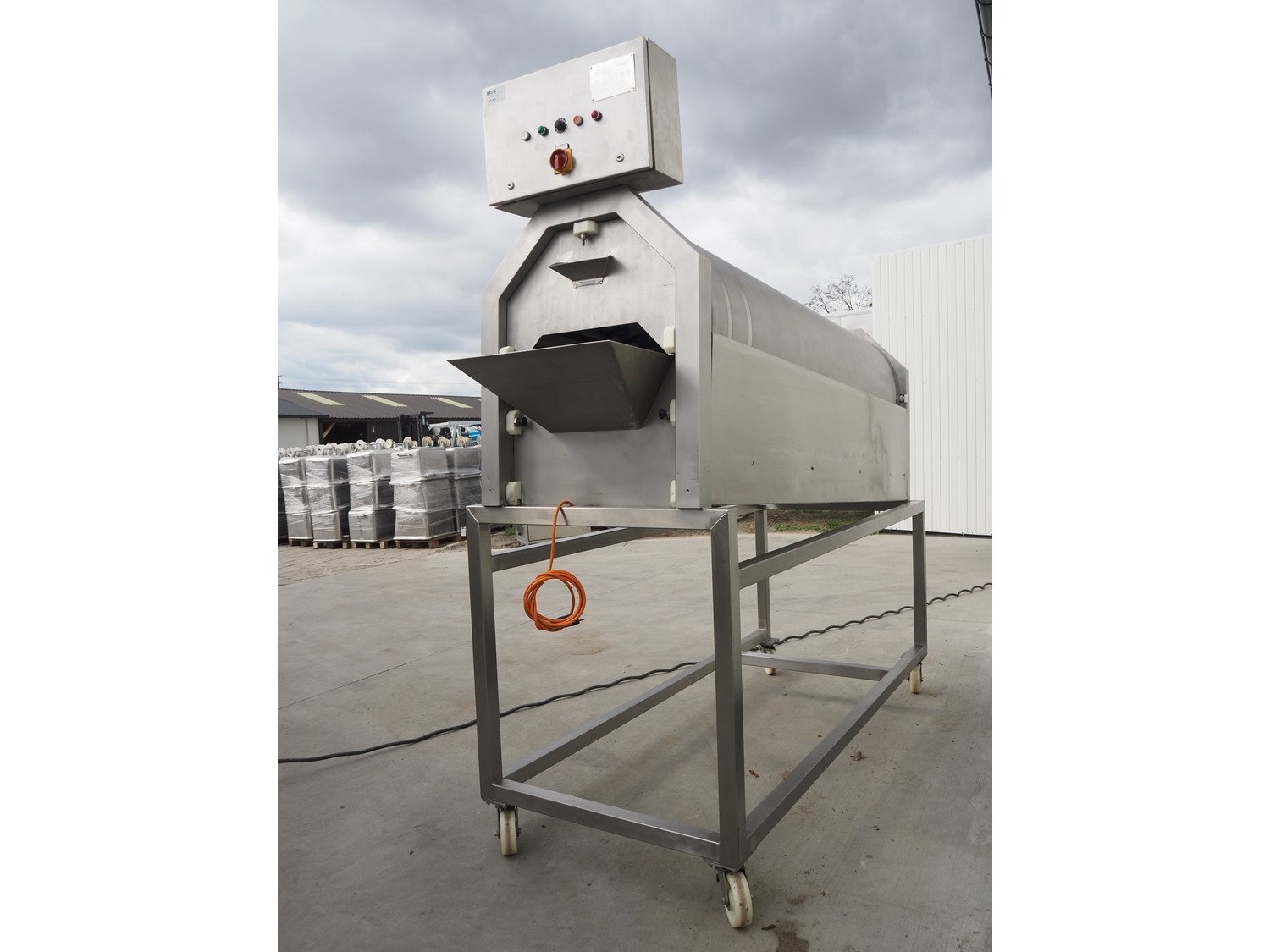 Heinrich GmbH mobile sausage cutter, model: Trenn-Fix, serial number: HM 920502, 220 V, 50 Hz, diameter drum: 750 mm, total dimensions: 2850 mm x 1000 mm x 2220 mm. Kavel locatie: Lipsko 241, 22-400 Zamość, Polen