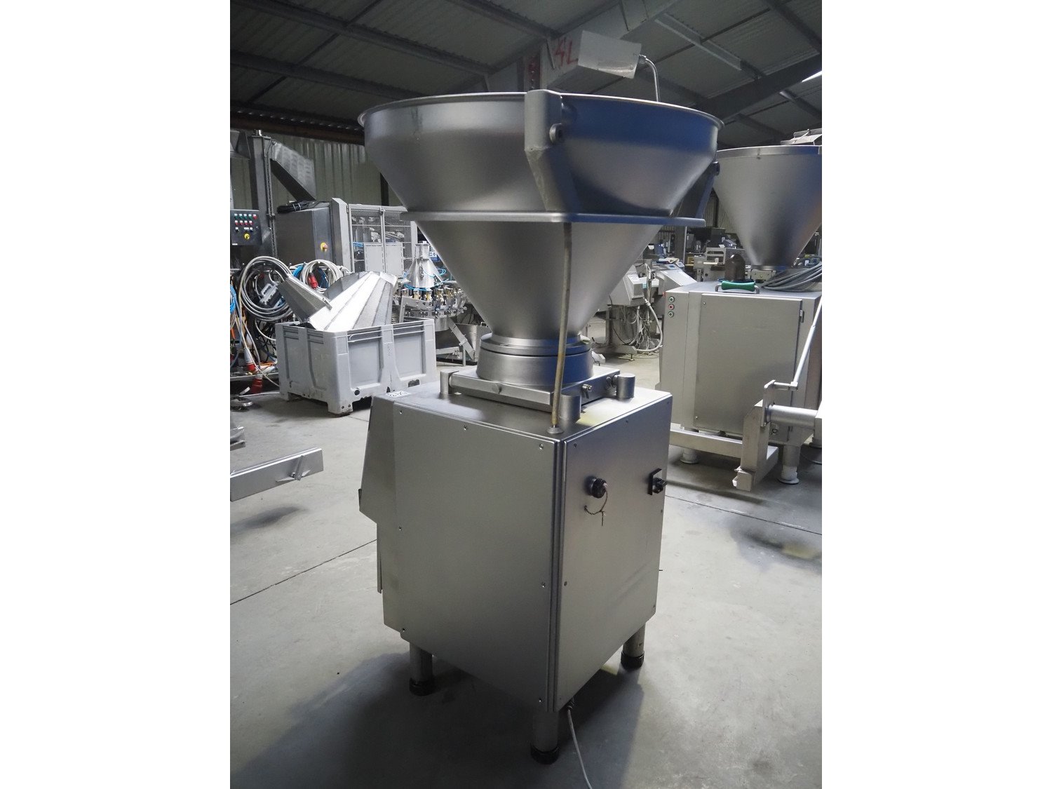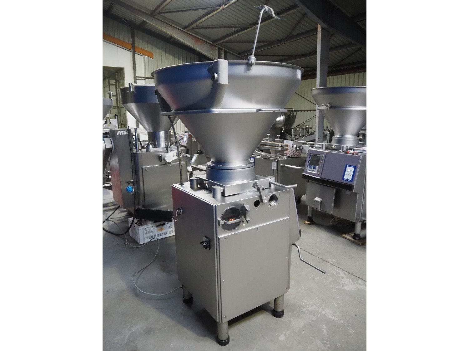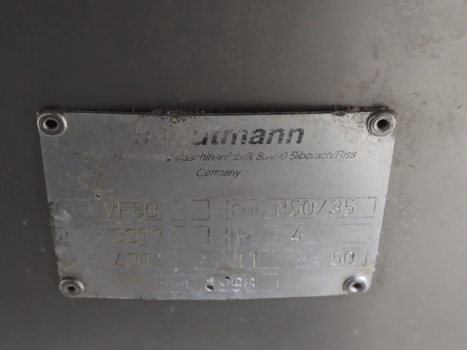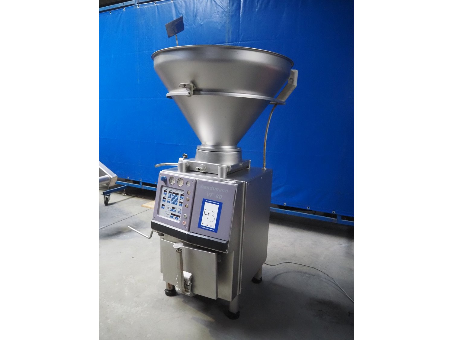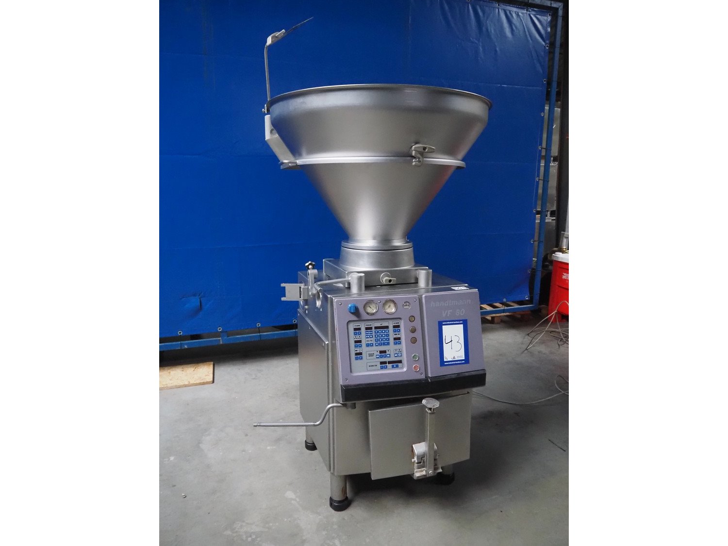 Handtmann vacuum filling machine, type: VF80, number: 3297, year of construction: 1998, 400 V, 50 Hz, 11 A, 4 kW, dimensions: 1100 mm x 900 mm x 2170 mm. Incomplete, missing rotor. With crate with parts and attachments. Kavel locatie: Lipsko 241, 22-400 Zamość, Polen