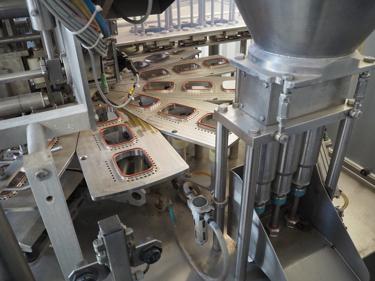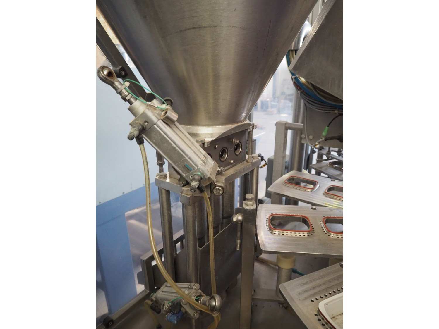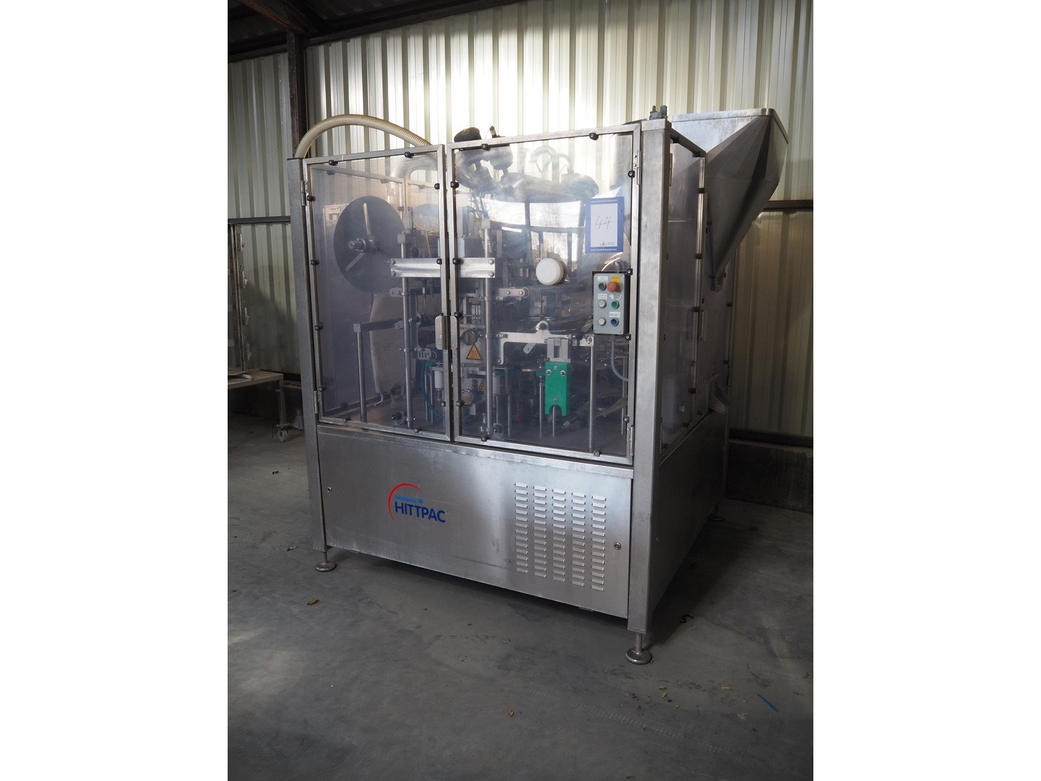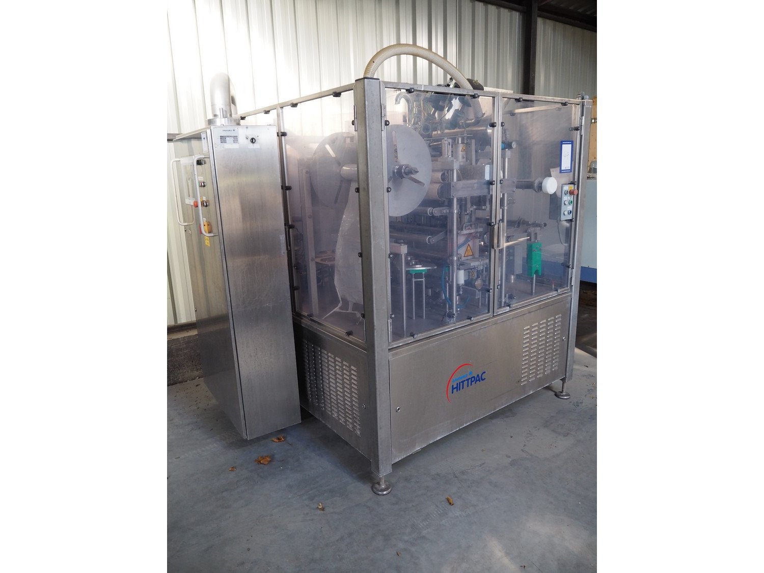 Herbert Grunwald GmbH cup filling, sealing and lidding machine, type: HITTPAC AKH-059/3, work number: 31/08, year of construction: 2009, 400 V, 3 Ph, 50 Hz, 20.0 A, 9.0 kW, Busch vacuum pump, type: RA 0100 F 503, number: 080086618, year of construction: 2008, capacity: 100 m³ per hour, dimensions cups: 113 mm x 83 mm, total dimensions: 2200 mm x 1750 mm x 2210 mm. Kavel locatie: Lipsko 241, 22-400 Zamość, Polen