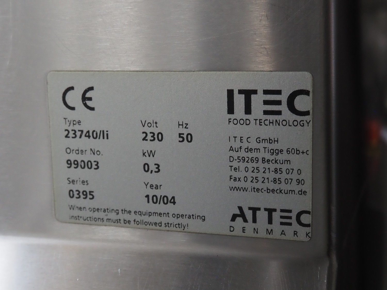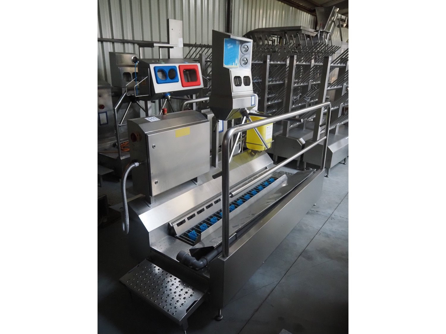Itec Food Technology hygiene station with sole cleaner, hand disinfection and tourniquet, type: 23740/li, serial number: 0395, order number: 99003, year of construction: 10/2004, 230 V, 50 Hz, 0.3 kW, brush rollers length: 1600 mm, total dimensions: 2750 mm x 950 mm x 1900 mm. Kavel locatie: Lipsko 241, 22-400 Zamość, Polen