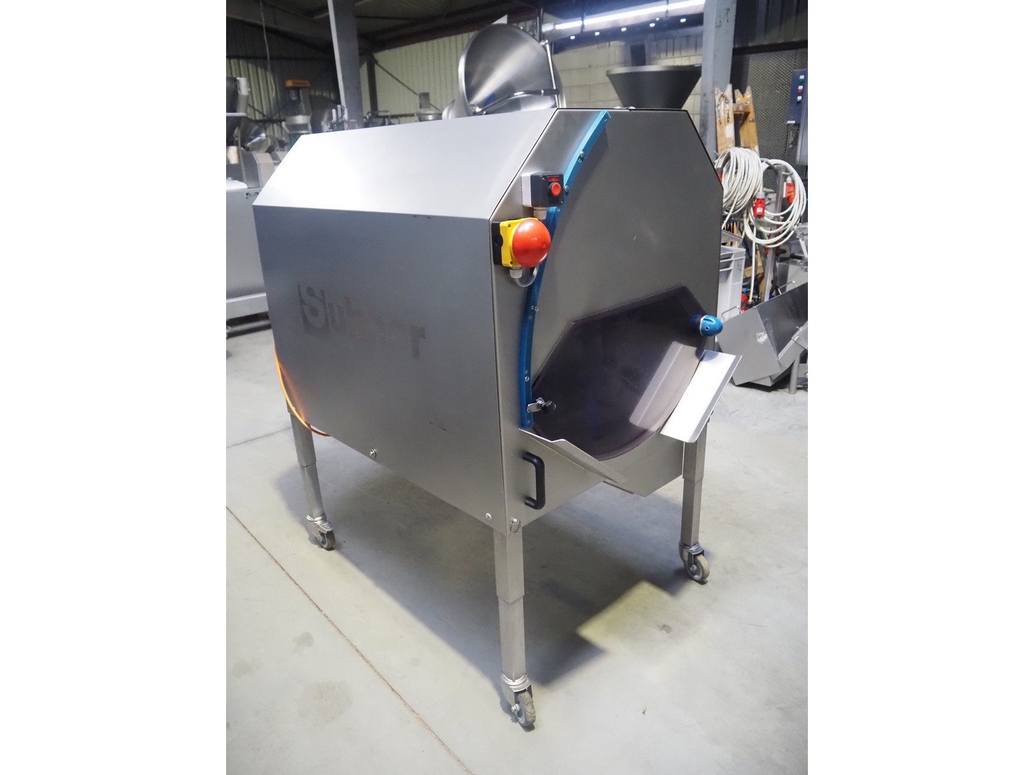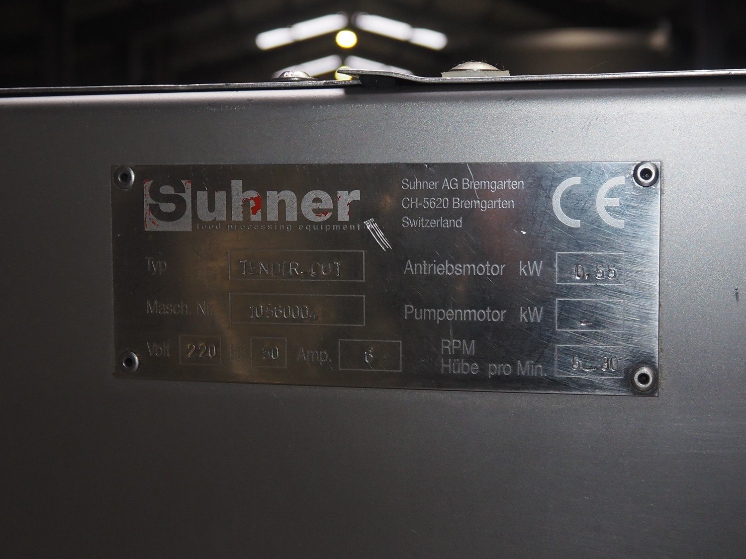 Suhner sausage cutter, type: tender-cut, serial number: 10560004, 220 V, 50 Hz, 6 A, 0.55 kW, 5-30 RPM, drum clearance: 490 mm, total dimensions: 1900 mm x 900 mm x 1470 mm. Kavel locatie: Lipsko 241, 22-400 Zamość, Polen