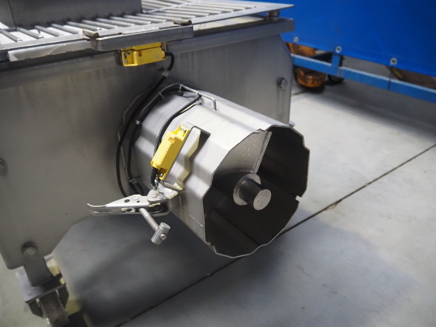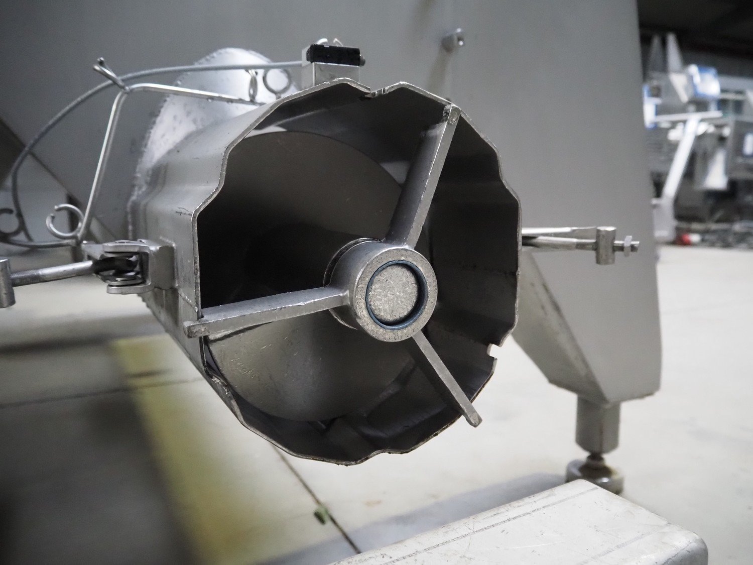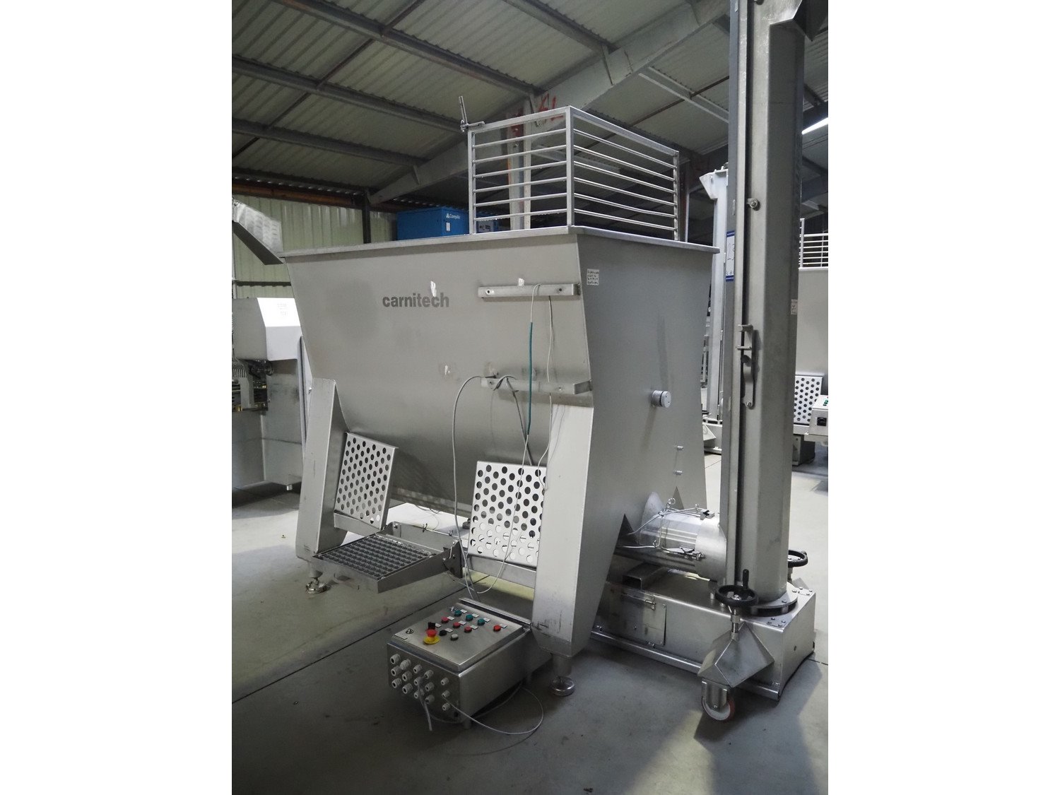Marel Carnitech mobile s/s giraf, model: B250, serial number: M10189, year of construction: 2016, 400 V 3 Ph, 50 Hz, 7.9 A, screw dimensions: 240 mm, tier: 180 mm, elevating height: 2500 mm, total dimensions: 2000 mm x 1000 mm x 3000 mm, with s/s infeed bunker, dimensions: 2300 mm x 1500 mm x 1200 mm. Including s/s trolley, dimensions: 1350 mm x 450 mm x 970 mm. Kavel locatie: Lipsko 241, 22-400 Zamość, Polen