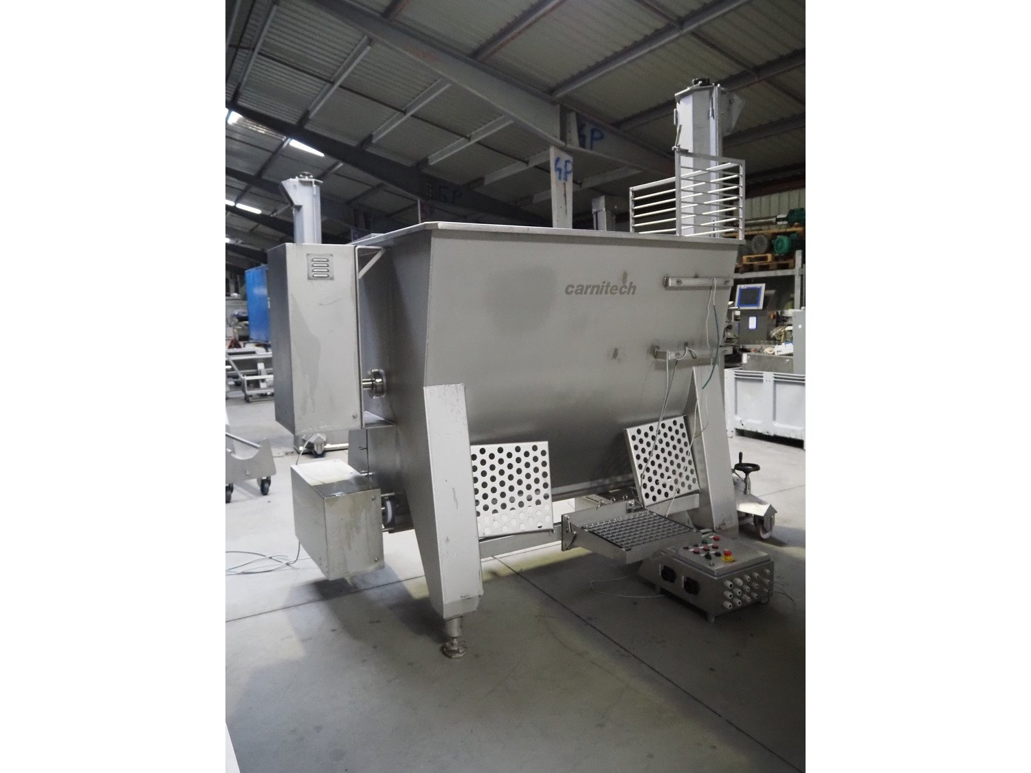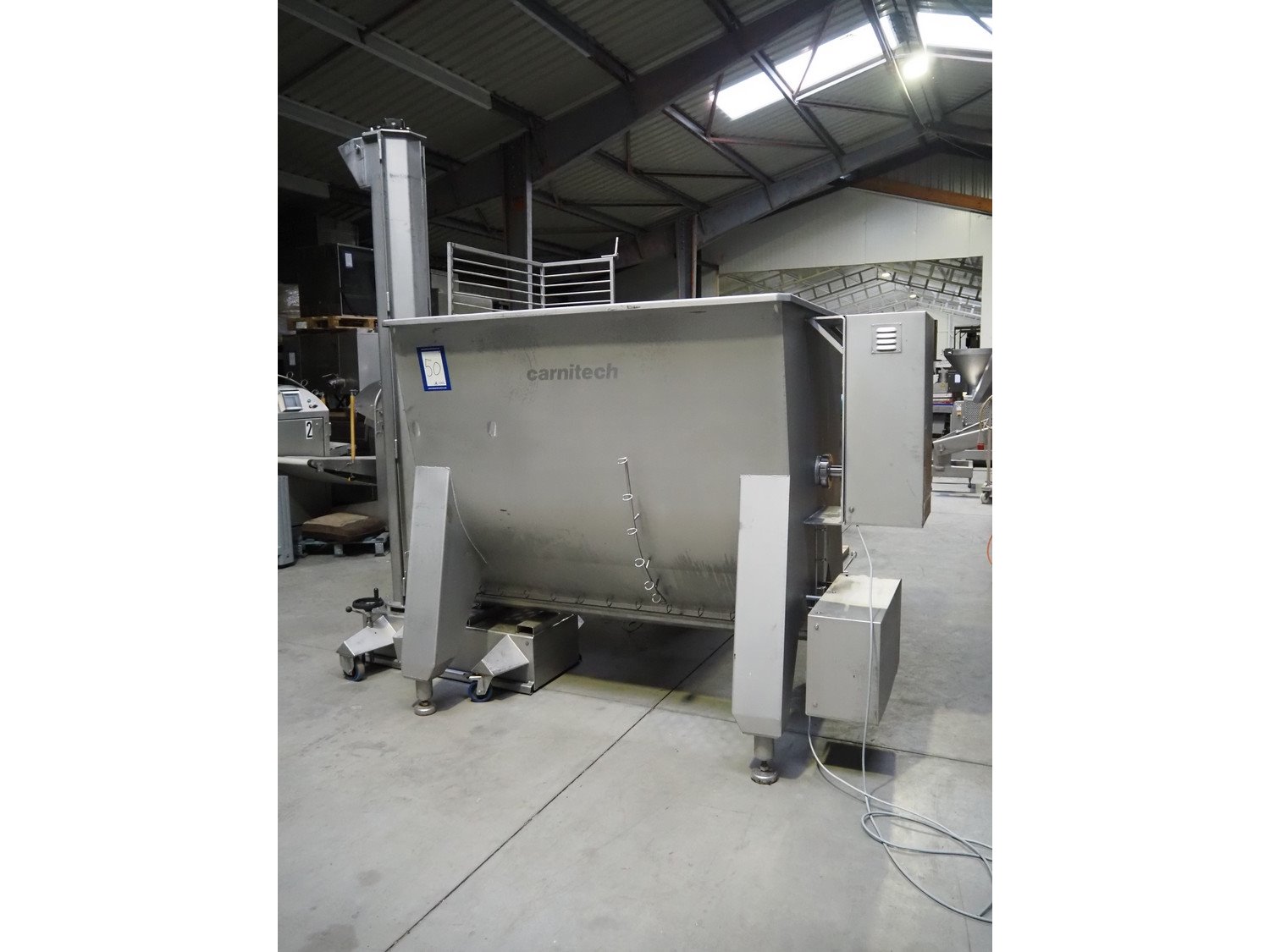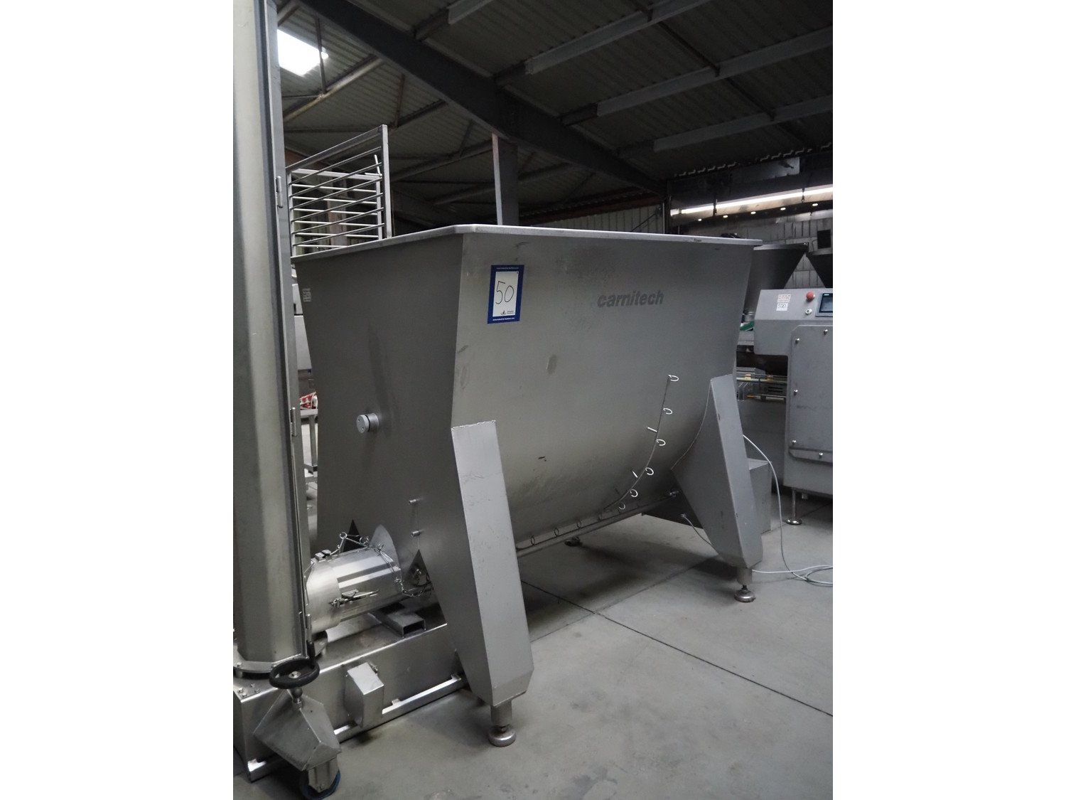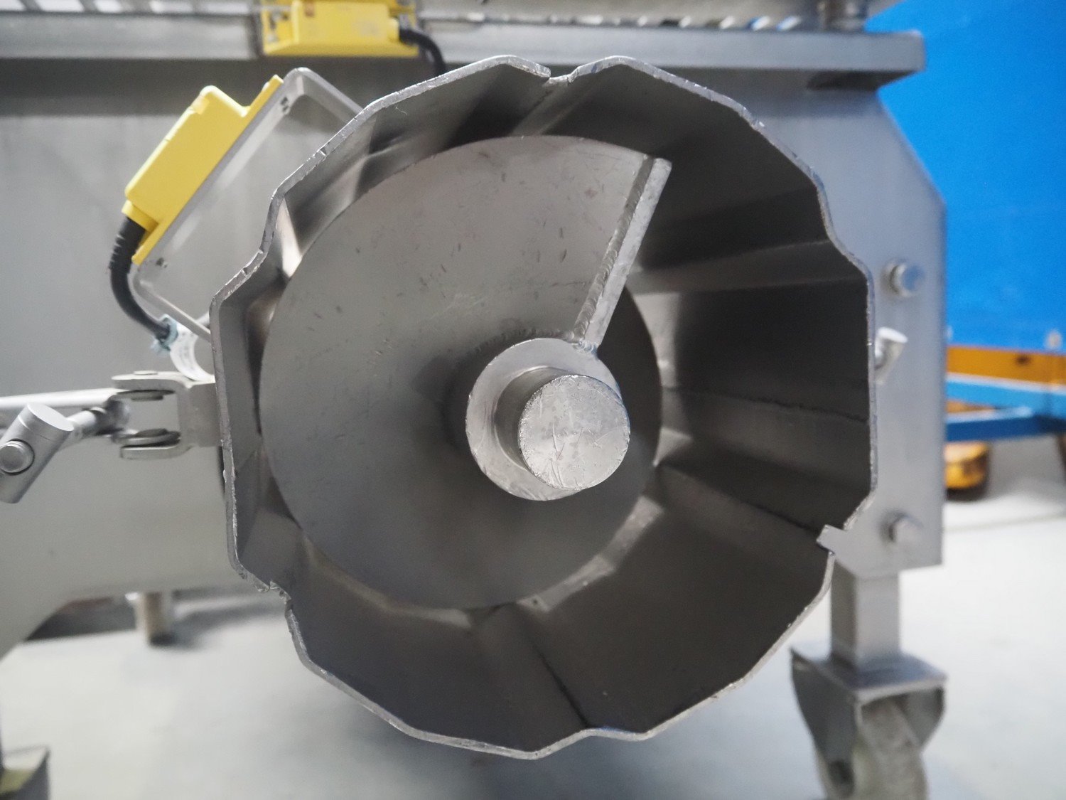 Marel Carnitech mobile s/s giraf, model: B250, serial number: M10189, year of construction: 2016, 400 V 3 Ph, 50 Hz, 7.9 A, screw dimensions: 240 mm, tier: 180 mm, elevating height: 2500 mm, total dimensions: 2000 mm x 1000 mm x 3000 mm, with s/s infeed bunker, dimensions: 2300 mm x 1500 mm x 1200 mm. Including s/s trolley, dimensions: 1350 mm x 450 mm x 970 mm. Kavel locatie: Lipsko 241, 22-400 Zamość, Polen