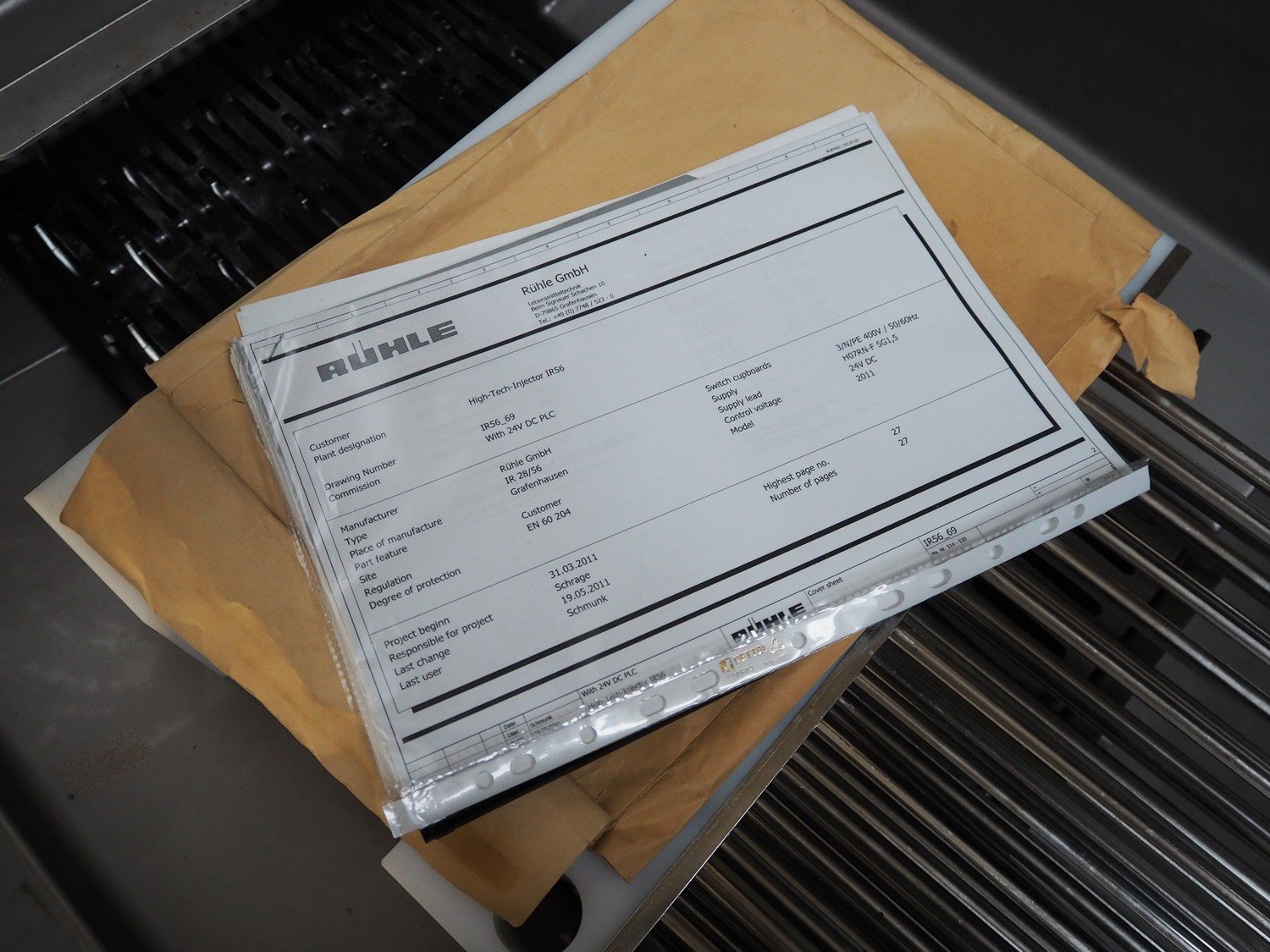 Rühle injector, model: IR 56, number: 0522, year of construction: 2011, 400 V, 3 Ph, 50 Hz, 16 A, 7.5 kW, s/s walking beam, beam width: 350 mm, total dimensions: 1500 mm x 950 mm x 2040 mm. Kavel locatie: Lipsko 241, 22-400 Zamość, Polen