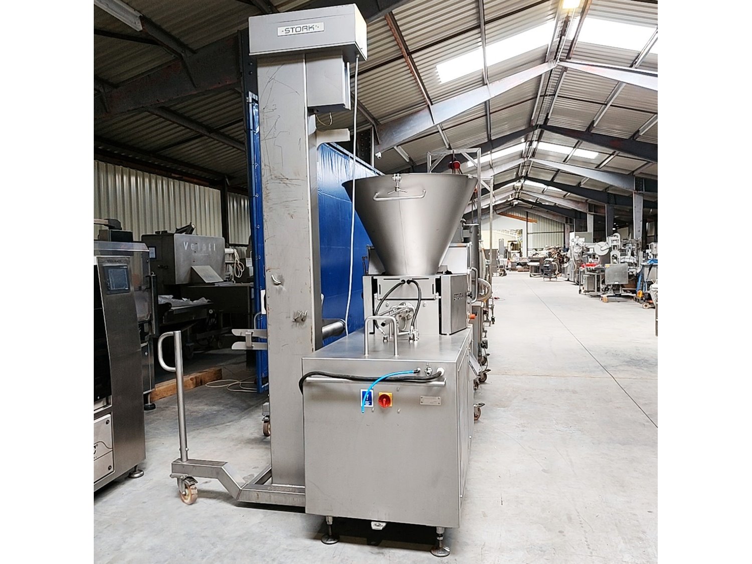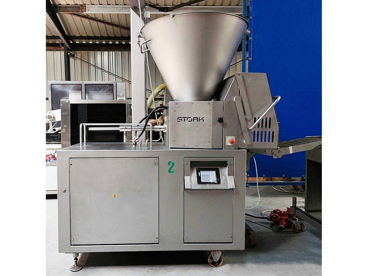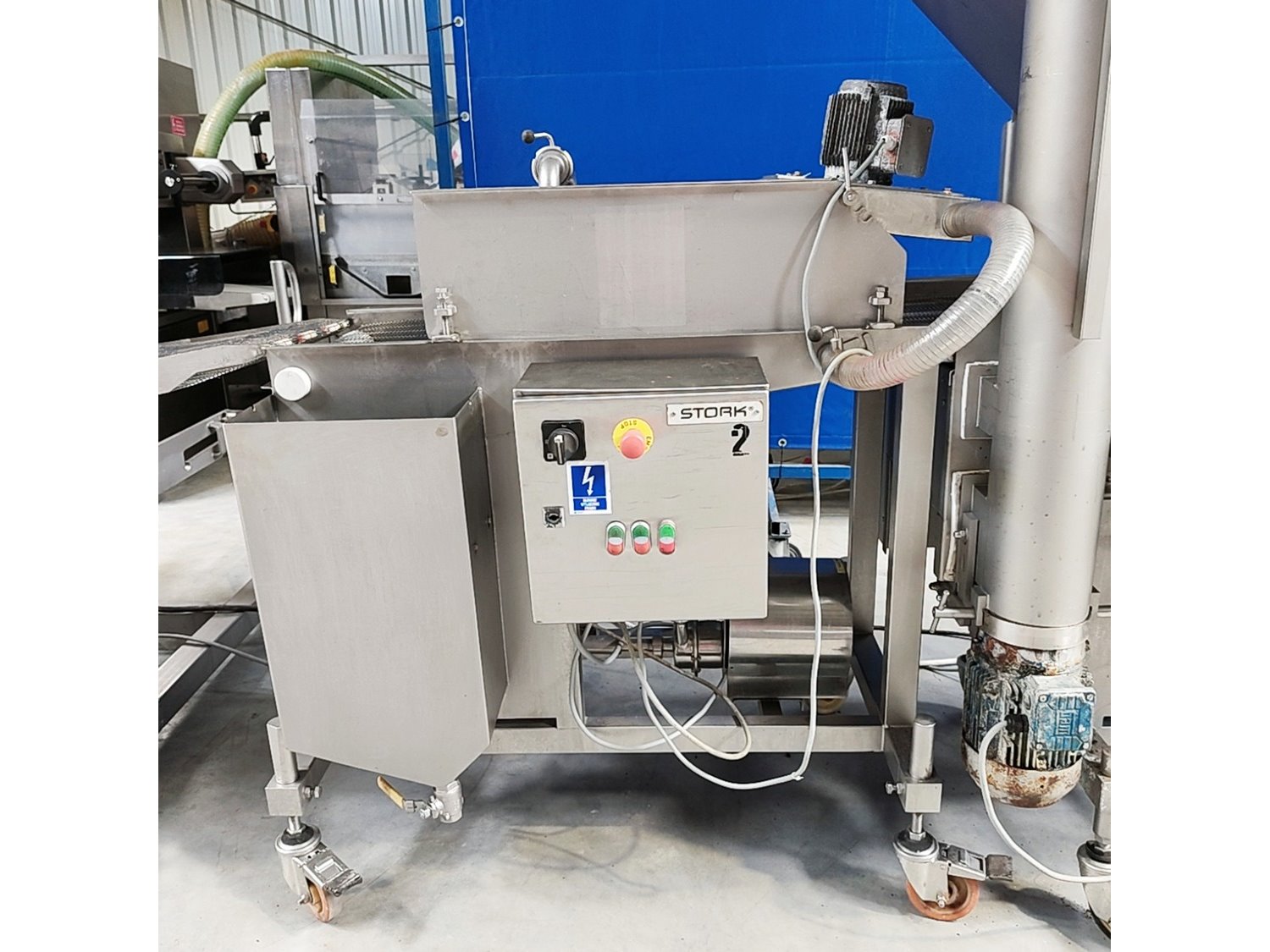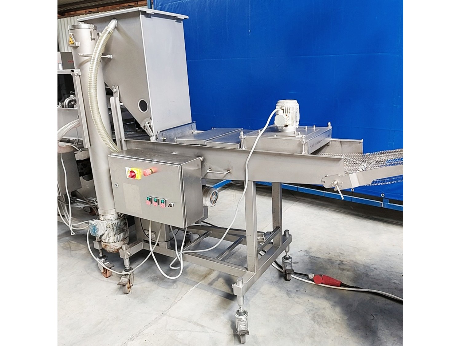 Stork forming- and breading line, consisting of: Stork Titan B.V. mobile forming machine, model: THV 400-E65 TA2107, type: 4779132, serial number: 10058201, year of construction: 2006, s/s mesh belt, belt width: 400 mm, diameter press: 95 mm, total dimensions: 2450 mm x 900 mm x 2040 mm. Stork Titan B.V. mobile battering machine. Marel Townsend Further Processing B.V. mobile breading machine, model: TPM 400 TD2104, type: 4279225, serial number: 10153206, year of construction: 2016, s/s mesh belt, belt width: 400 mm, clearance: 420 mm x 70 mm, total dimensions: 2400 mm x 830 mm x 1950 mm. Without lifter. Kavel locatie: Lipsko 241, 22-400 Zamość, Polen