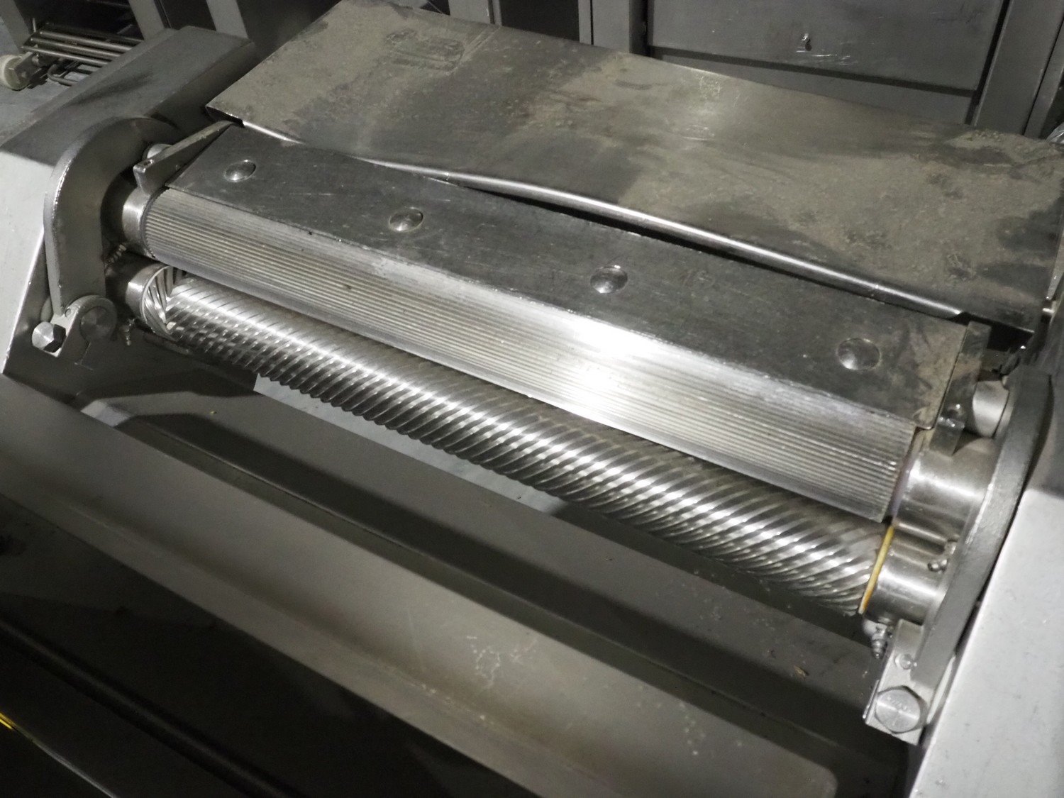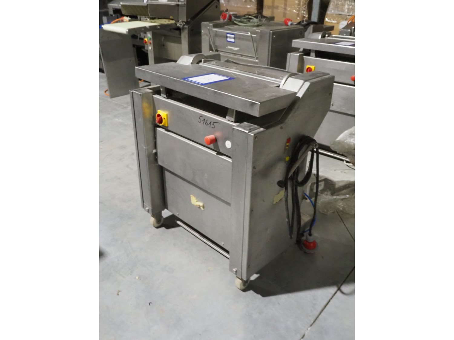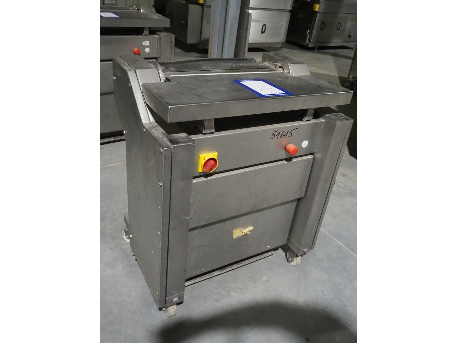 Townsend mobile skinning machine, model: 7500, serial number: 1180, year of construction: 1992, 380 V, 3 Ph, 50 Hz, 2.0 A, working width: 500 mm, foot control, total dimensions: 900 mm x 550 mm x 1100 mm. Kavel locatie: Lipsko 241, 22-400 Zamość, Polen