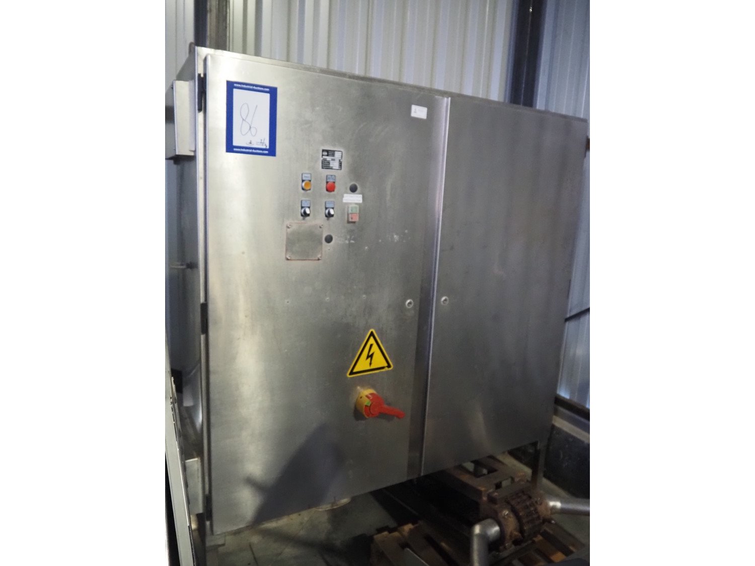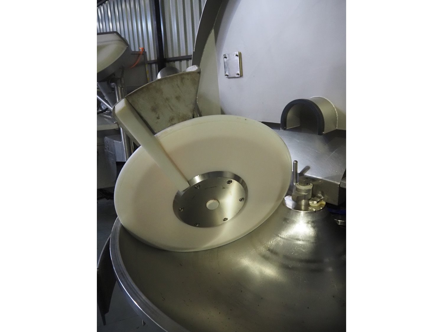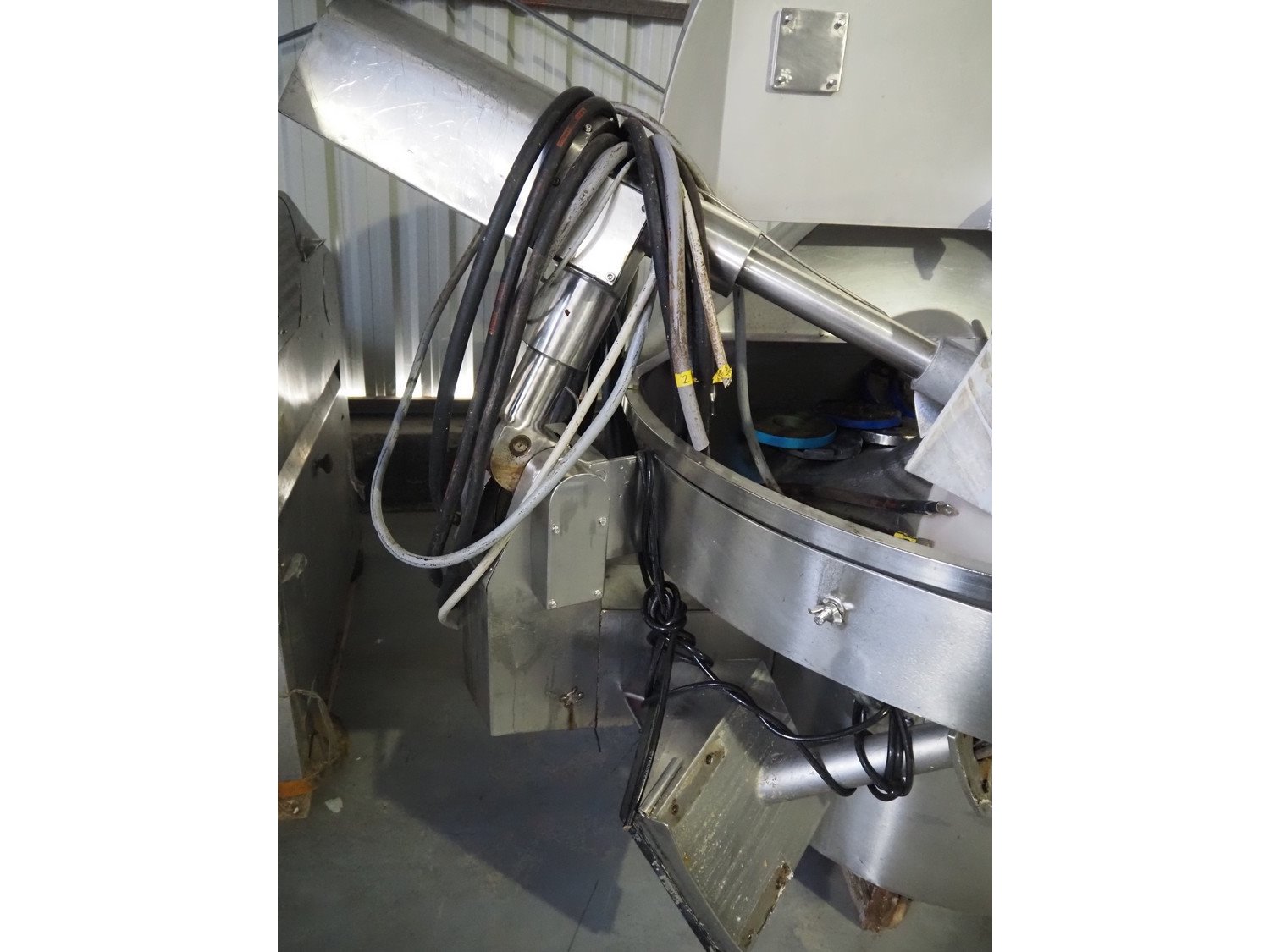 Krämer + Grebe bowl cutter with lifter for 200 liter meat bins and ejector, type: Cutter 325 L STL, serial number: 173/296, revised in 2005, s/s bowl and knives, volume: 325 liter, dimensions: 3000 mm x 2200 mm x 1900 mm. Including switch cabinet, dimensions: 1700 mm x 600 mm x 2000 mm and lifter, dimensions: 1800 mm x 1200 mm x 800 mm. Kavel locatie: Lipsko 241, 22-400 Zamość, Polen