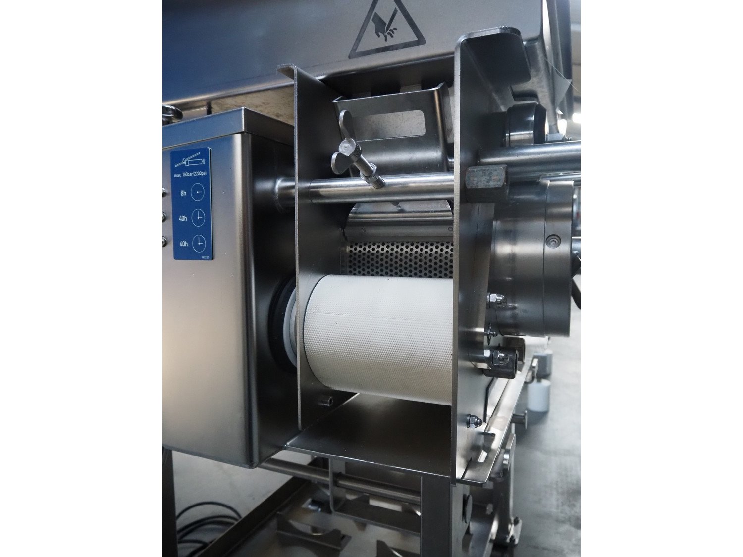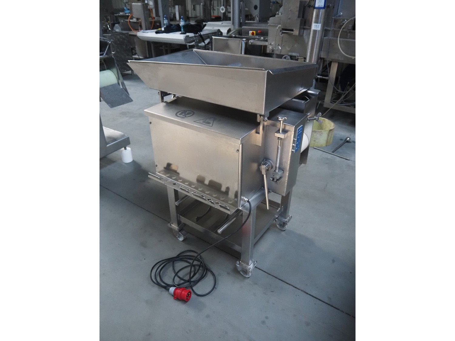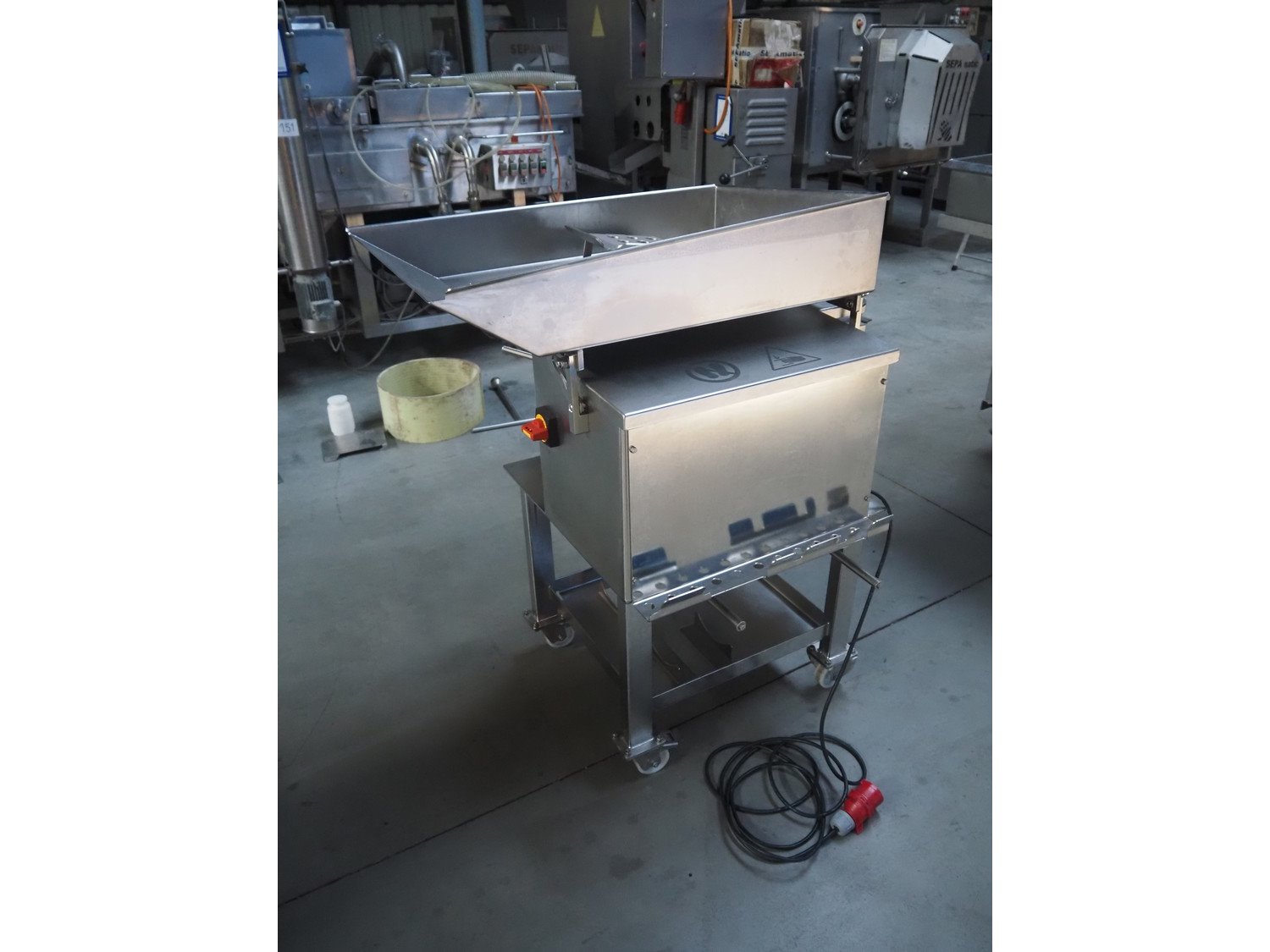 Baader separator, type: 600/501, serial number: 120002228/10, year of construction: 2016, 400 V, 3 Ph, 50 Hz, 4.0 A, 1.5 kW, plastic belt, belt width: 180 mm, diameter output: 190 mm, diameter perforations: 5 mm, total dimensions: 1050 mm x 850 mm x 1170 mm. Kavel locatie: Lipsko 241, 22-400 Zamość, Polen