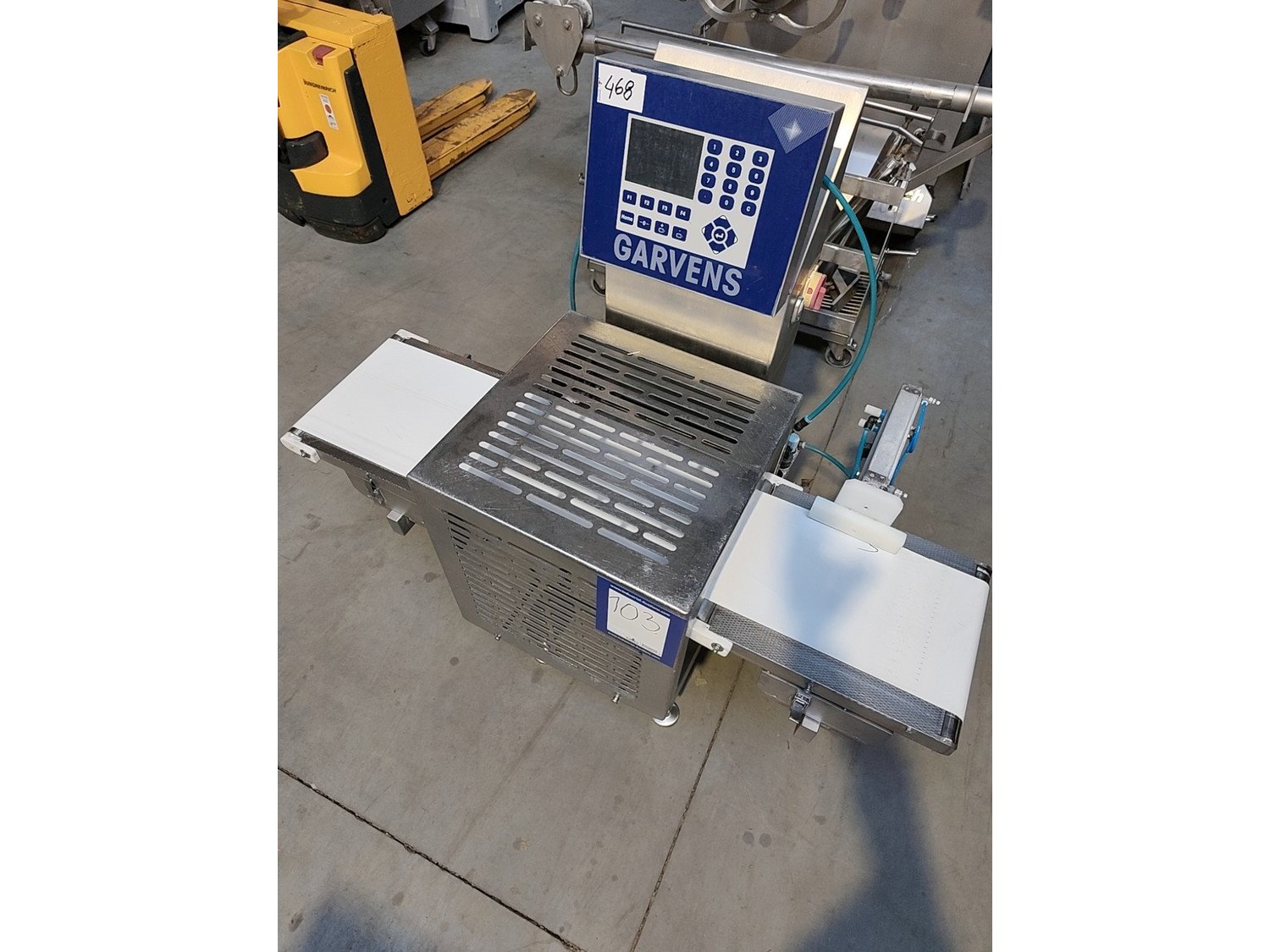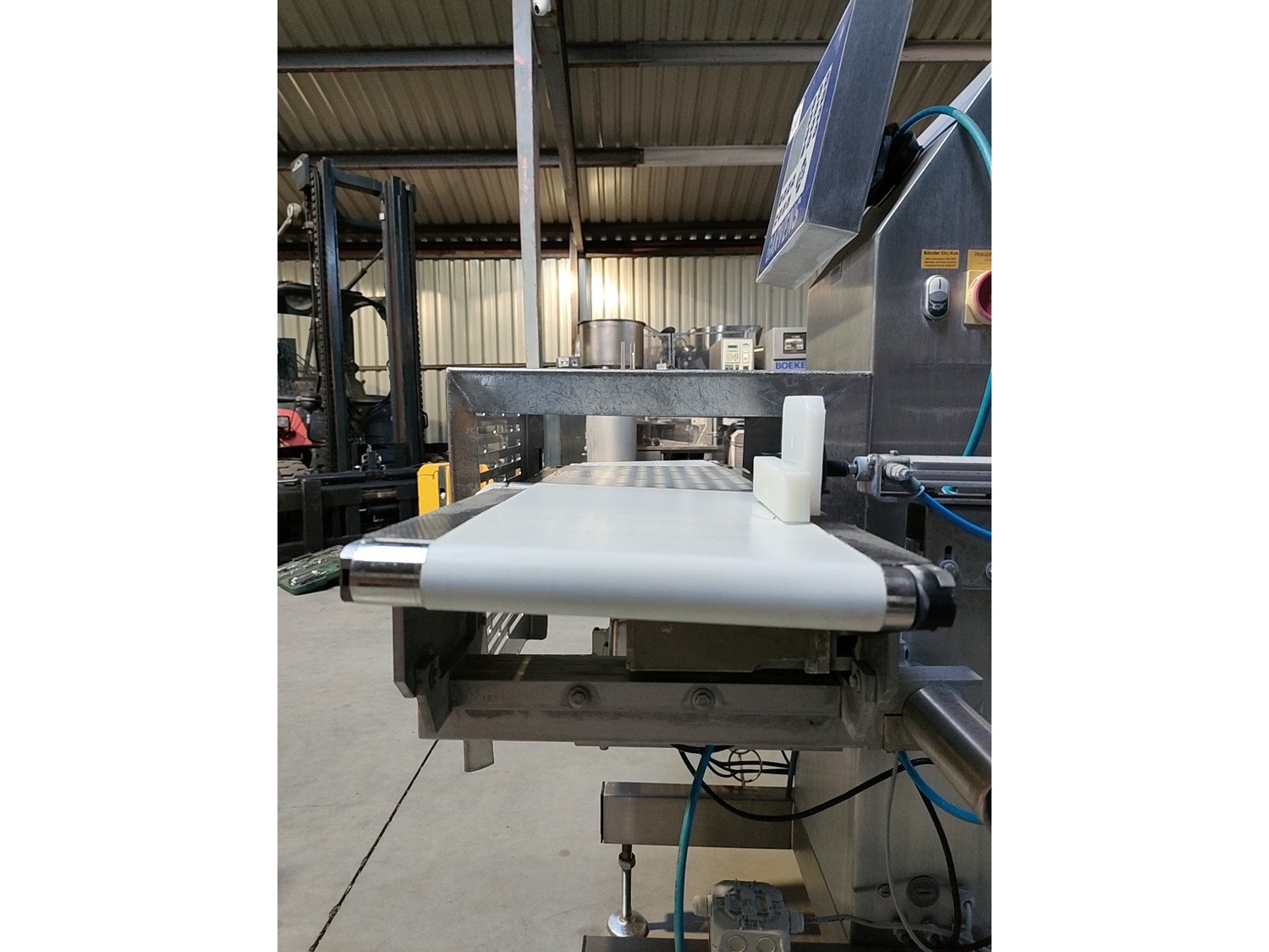 Garvens Automation GmbH checkweigher with rejectior, model E3, serial number: 333475, year of construction: 2005, 230 V, 50 Hz, weigher DMS, maximum load: 3000 g, dimensions: 1400 mm x 800 mm x 1550 mm. Kavel locatie: Lipsko 241, 22-400 Zamość, Polen