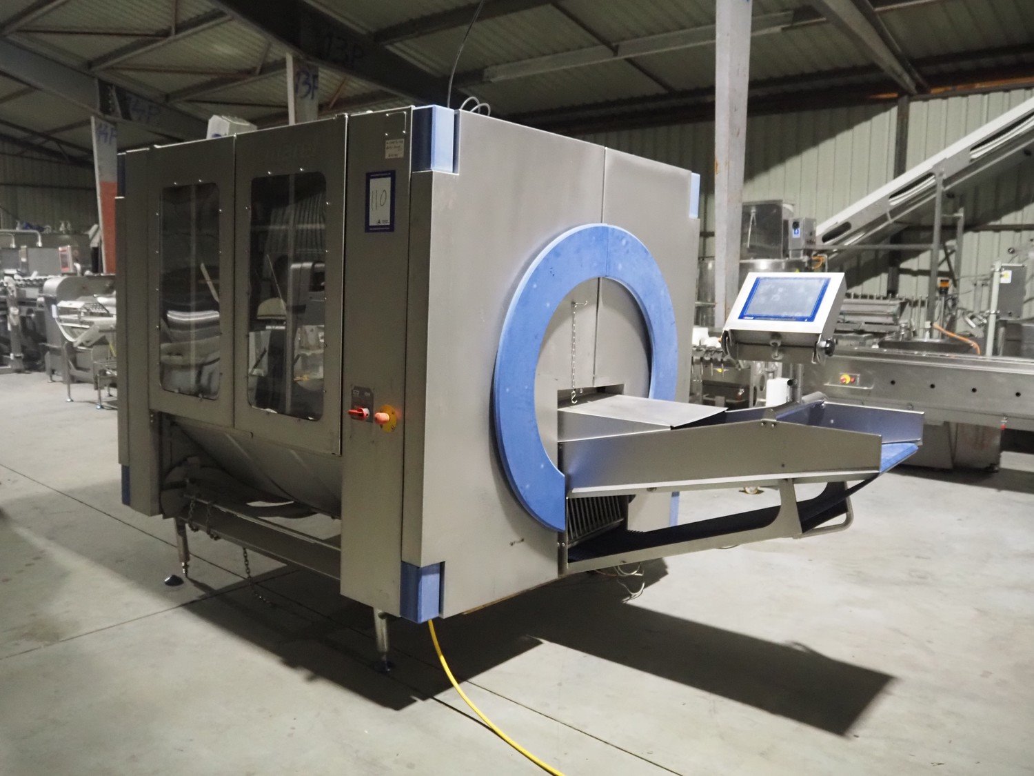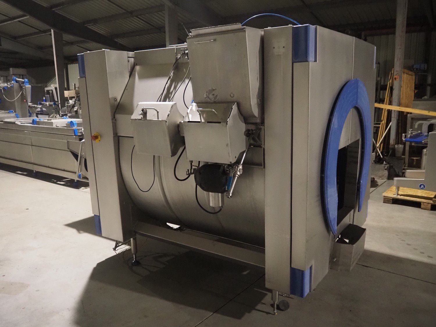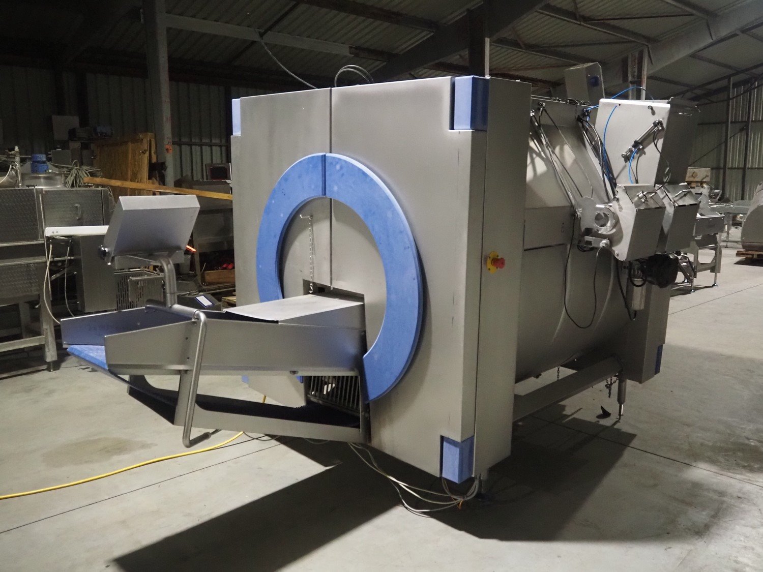 Marel in-line massaging and marinating drum, model: Valuedrum, serial number: 3879503, year of construction: 2010, 400 V, 3 Ph, 50 Hz, 8 kW, weight: 1100 kg, plastic mesh belt, belt width: 405 mm , diameter drum: 865 mm, total dimensions: 3450 mm x 2000 mm x 2050 mm. Kavel locatie: Lipsko 241, 22-400 Zamość, Polen