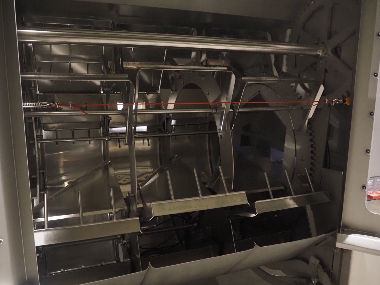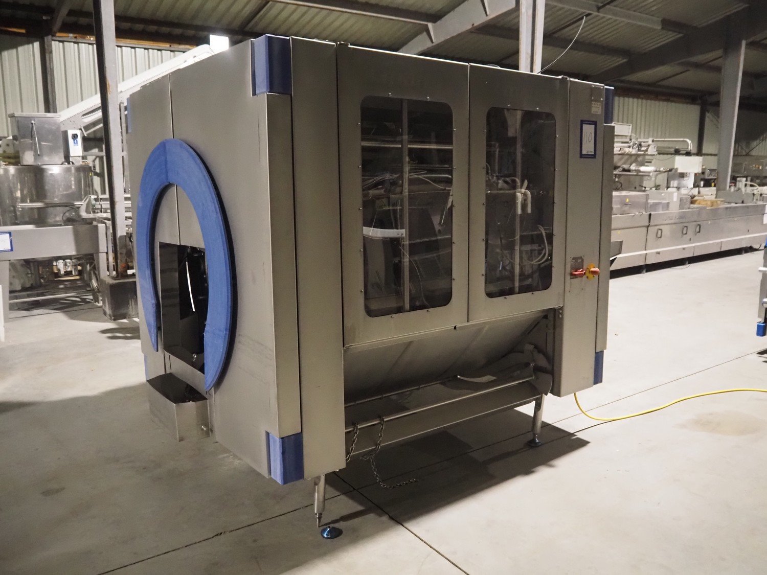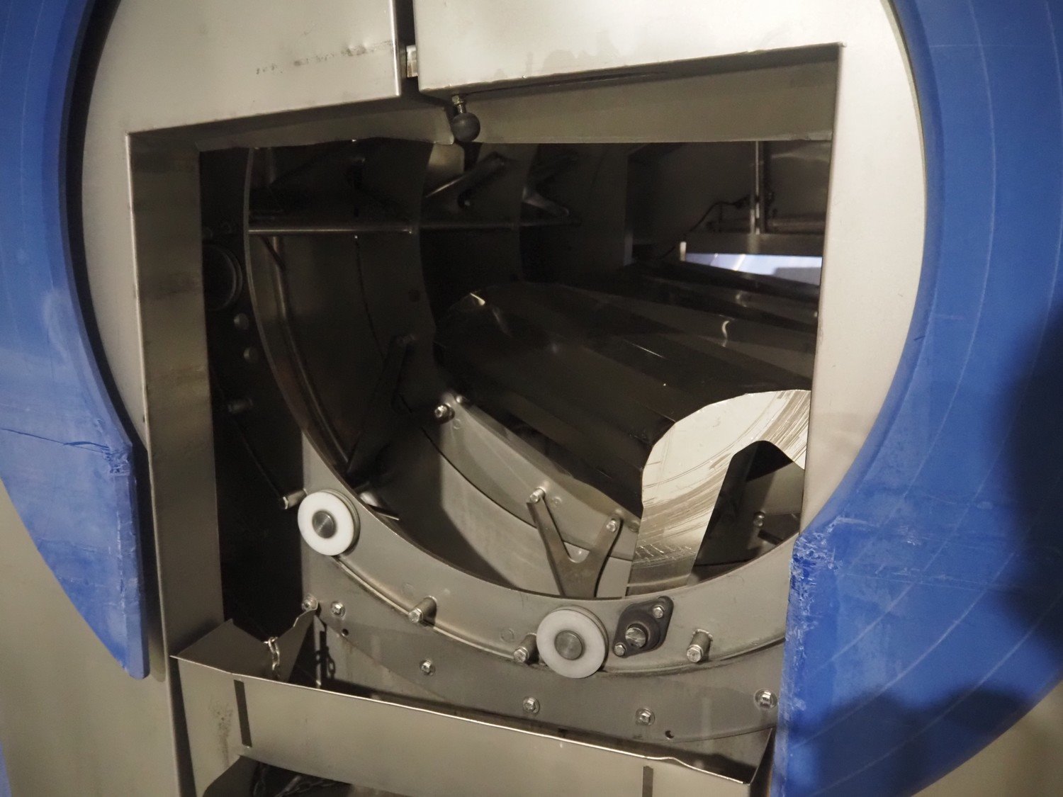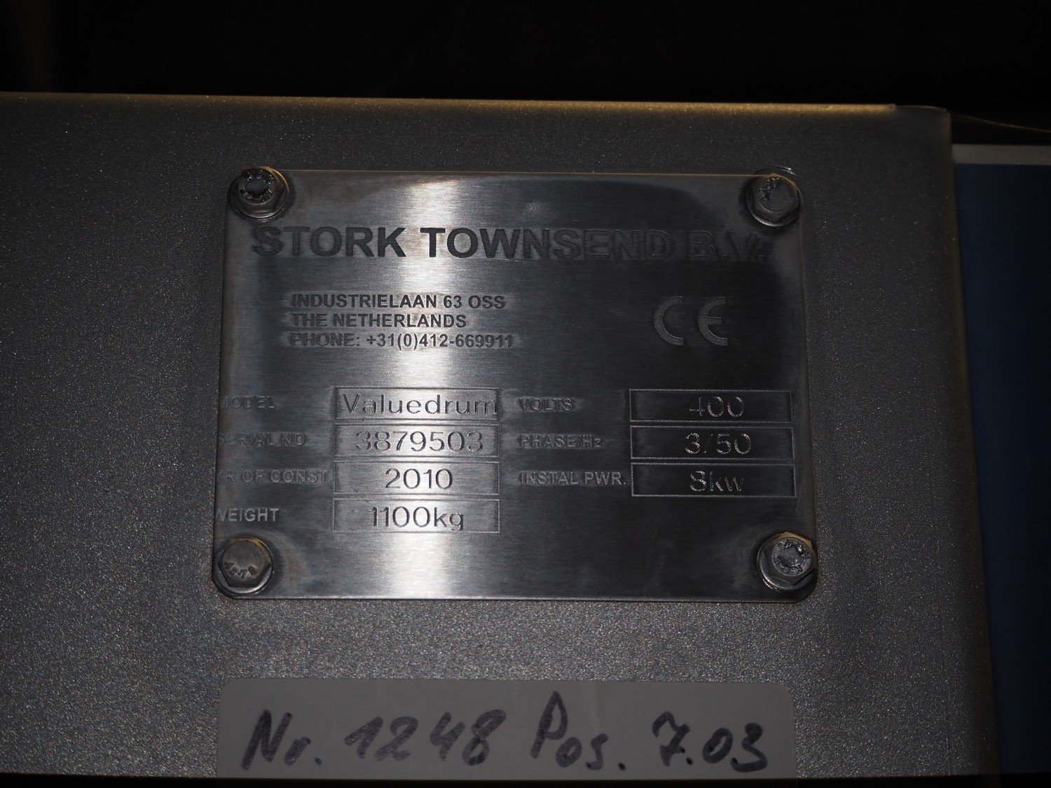 Marel in-line massaging and marinating drum, model: Valuedrum, serial number: 3879503, year of construction: 2010, 400 V, 3 Ph, 50 Hz, 8 kW, weight: 1100 kg, plastic mesh belt, belt width: 405 mm , diameter drum: 865 mm, total dimensions: 3450 mm x 2000 mm x 2050 mm. Kavel locatie: Lipsko 241, 22-400 Zamość, Polen