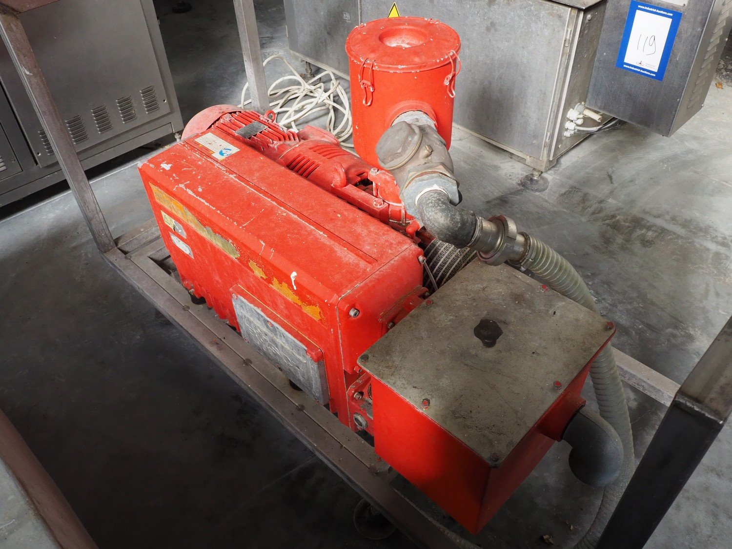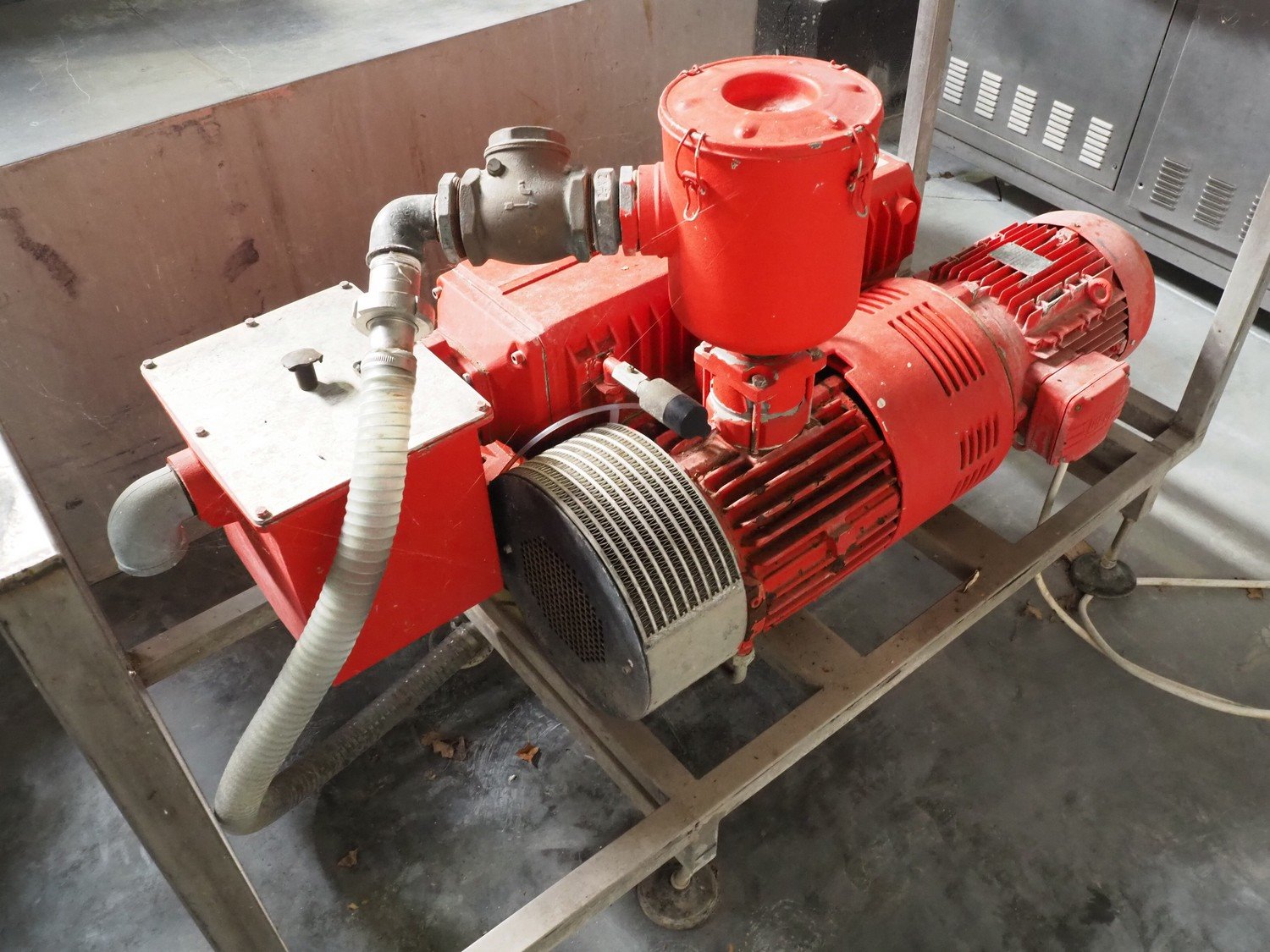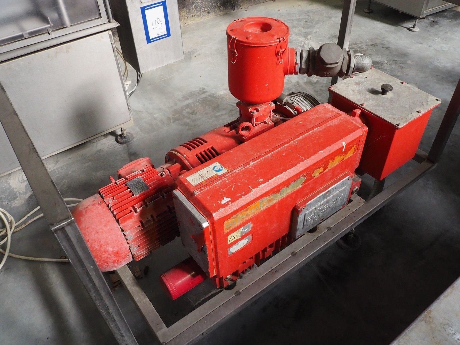 Busch rotary vane vacuum pump, type: R5 RA 0302 D, capacity: 300 m³/h, on s/s frame with s/s cover, dimensions: 1500 mm x 650 mm x 970 mm. Kavel locatie: Lipsko 241, 22-400 Zamość, Polen