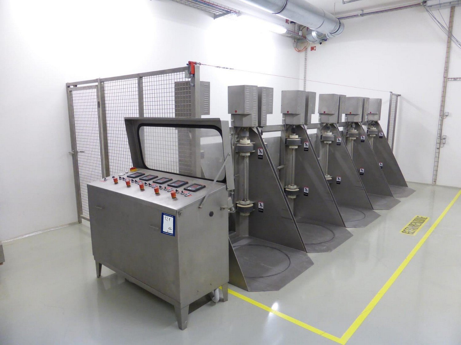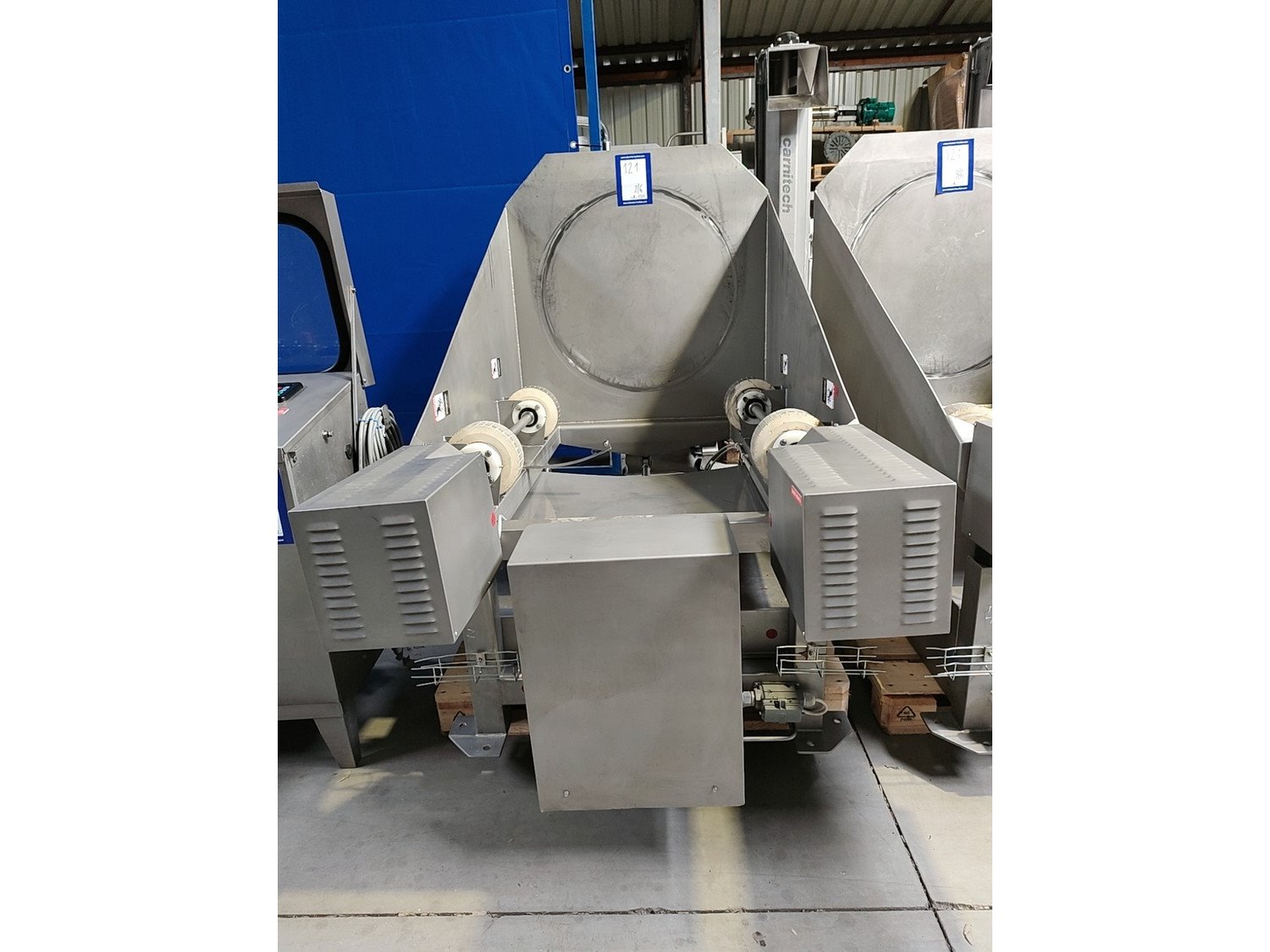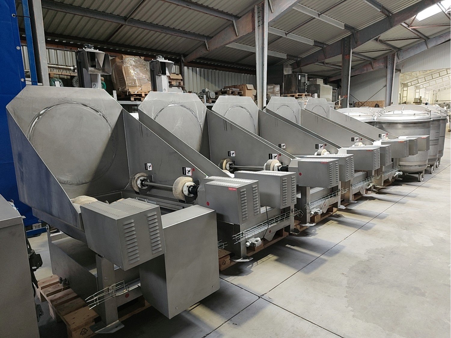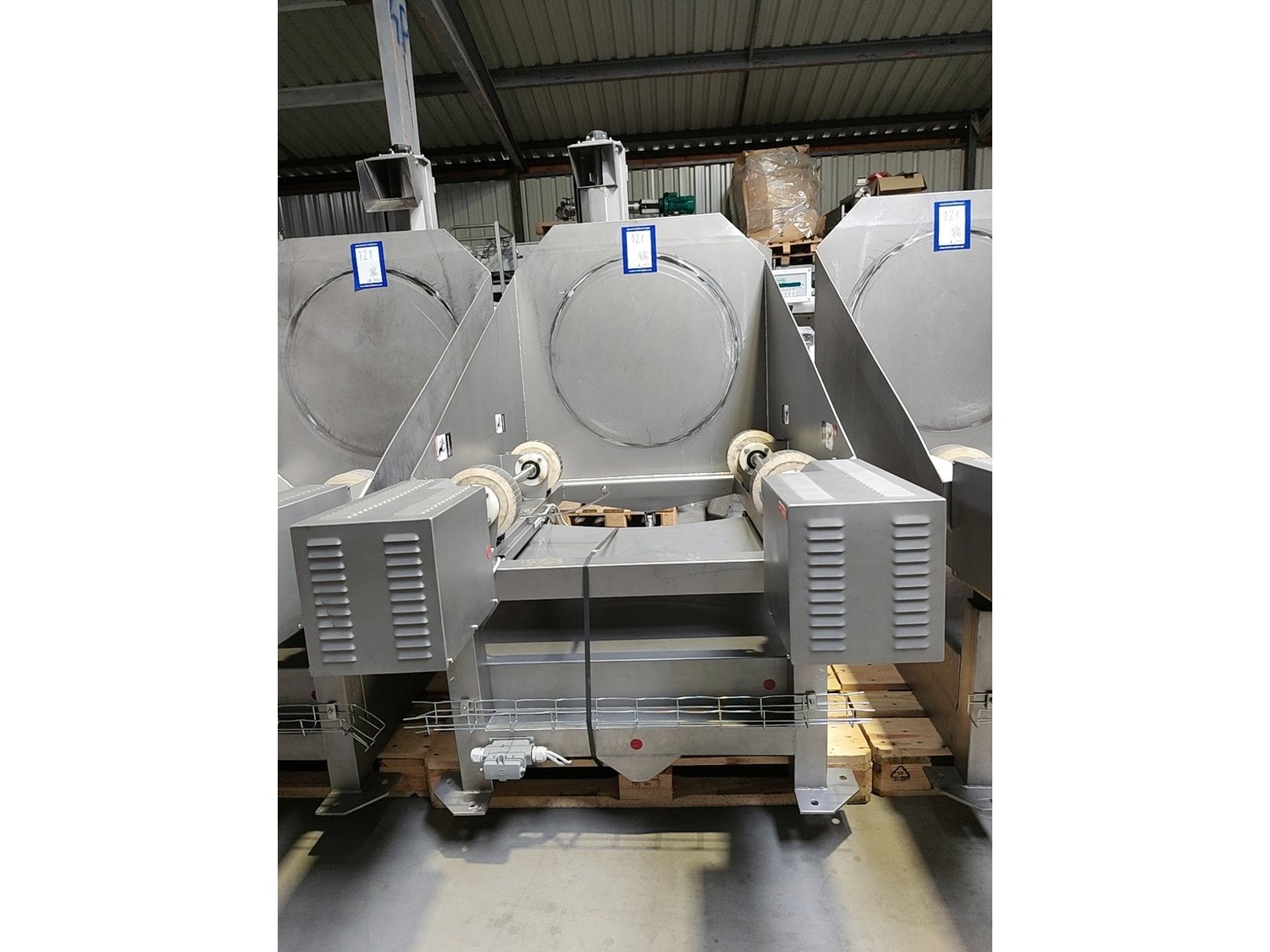 Inject Star vacuum tumblers, model: HS 5, capacity: 500 liter, weight of raw material: 250-350 kg, voltage: 400 V, 3 Ph, 50 Hz, turnover regulation: Mechanical, vacuum tumbler weight: 700 kg. Five removable barrels in the set. Kavel locatie: Lipsko 241, 22-400 Zamość, Polen