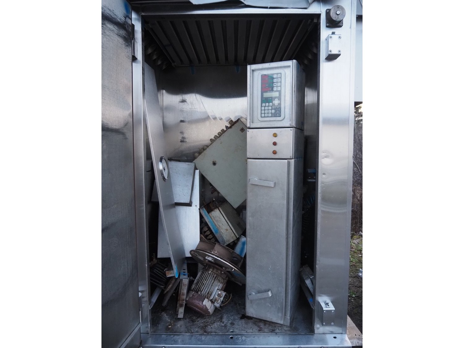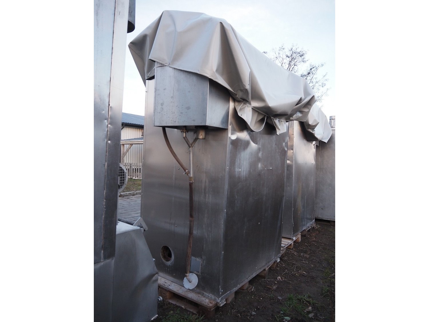 Fessmann smoke chamber for 1 trolley, inside dimensions: 1090 mm x 1030 mm x 2000 mm, with smoke generator, total dimensions: 1780 mm x 1280 mm x 2550 mm. Kavel locatie: Lipsko 241, 22-400 Zamość, Polen