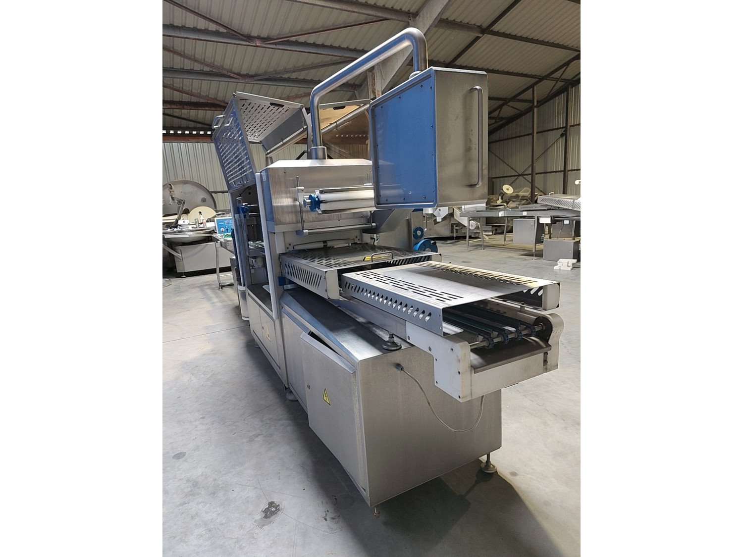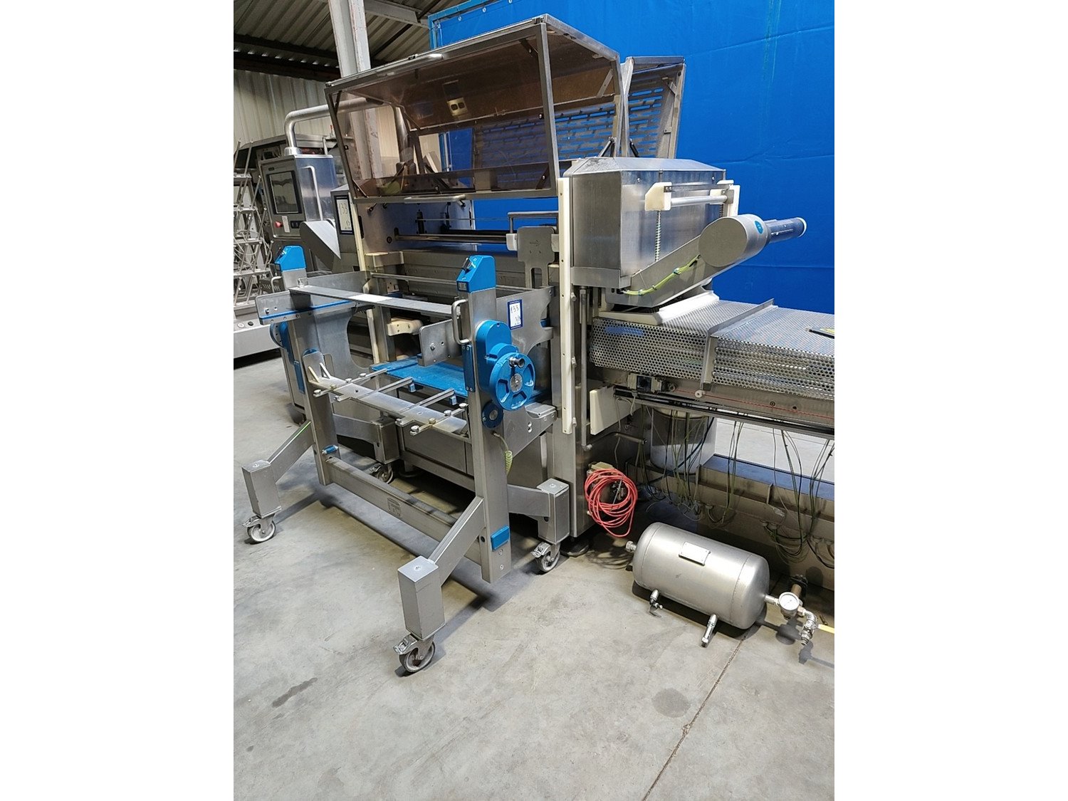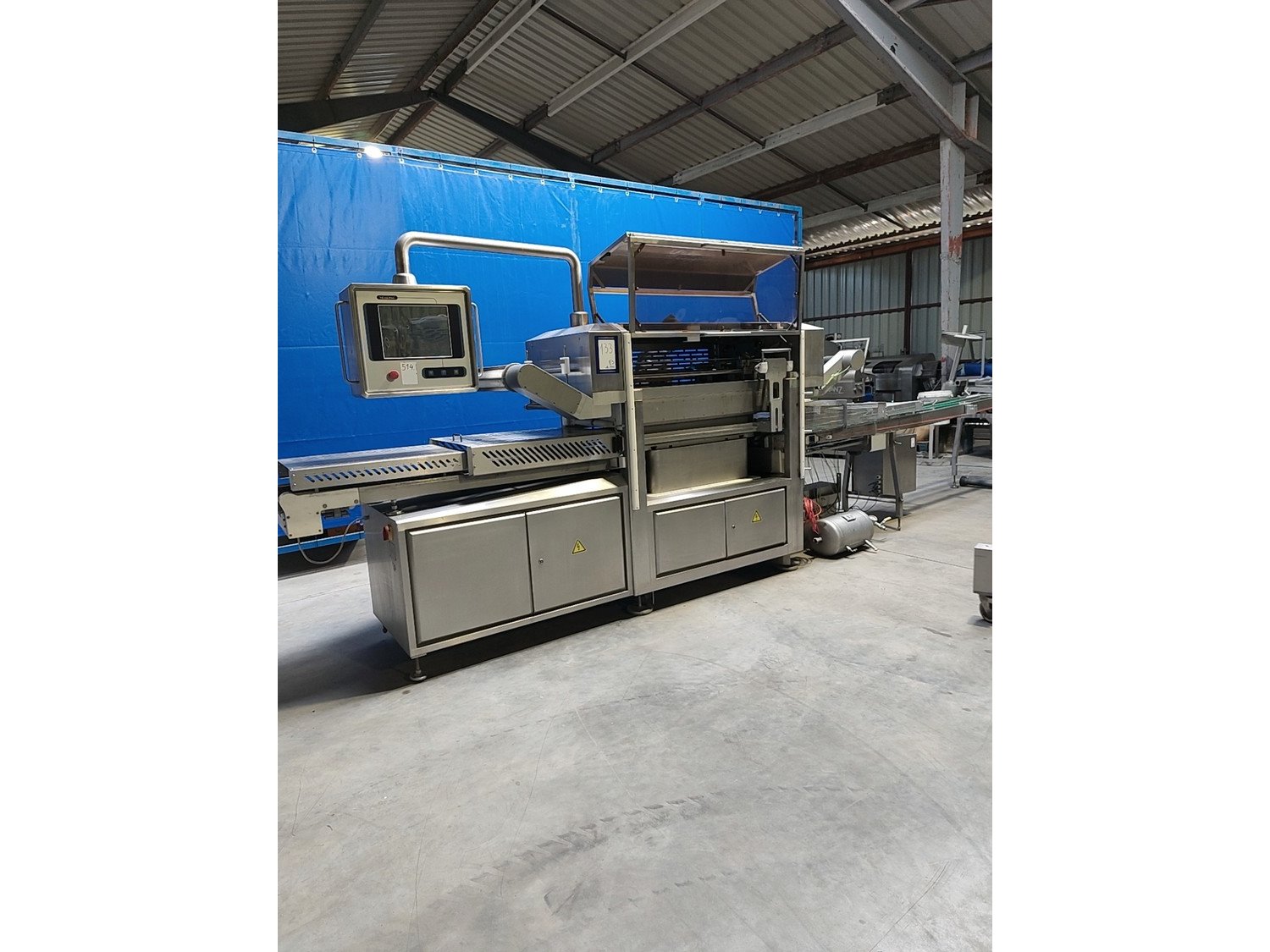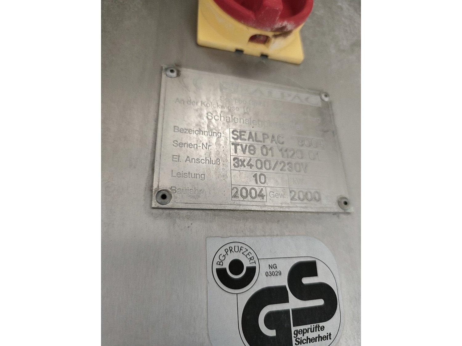 Sealpac traysealer, model: 800+, serial number: TVG 01 1120 01, year of construction: 2004, 400 / 230 V, 3 Ph, 50 Hz, 10 kW, weight: 2000 kg, dye dimensions: (5x) 200 mm x 155 mm, total dimensions: 6600 mm x 900 mm x 2200 mm. Including dye trolley, dimensions 1600 mm x 1000 mm x 1400 mm. Kavel locatie: Lipsko 241, 22-400 Zamość, Polen