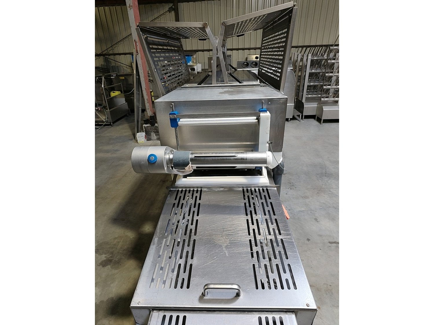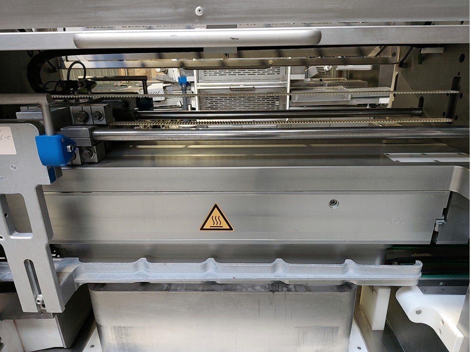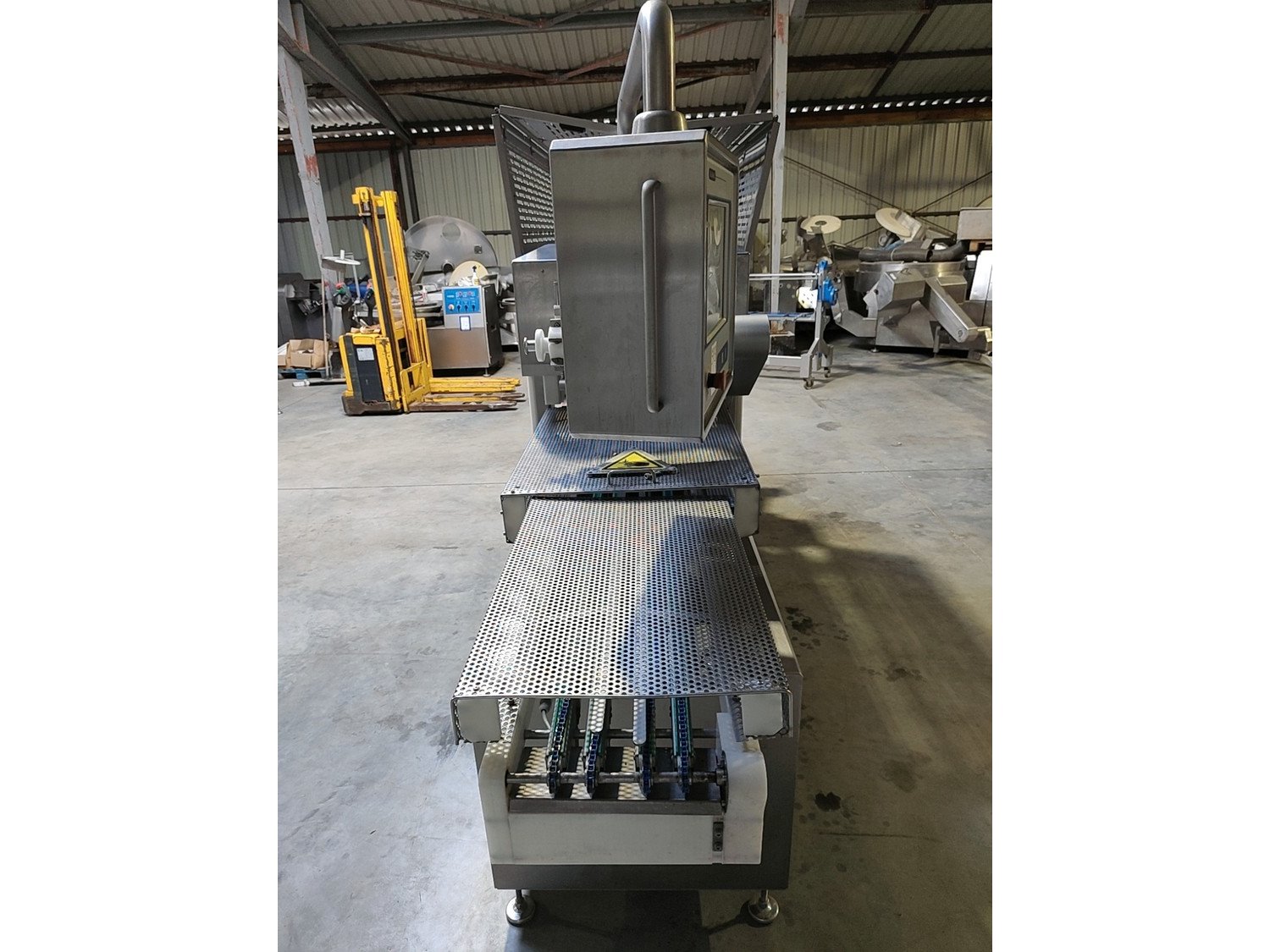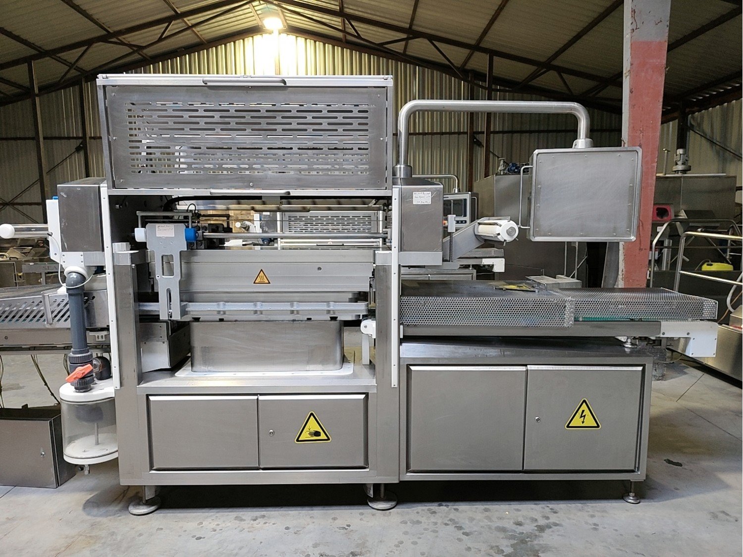 Sealpac traysealer, model: 800+, serial number: TVG 01 1124 01, year of construction: 2004, 400 / 230 V, 3 Ph, 50 Hz, 10 kW, weight: 2000 kg, dye dimensions: (6x) 170 mm x 130 mm, total dimensions: 6600 mm x 900 mm x 2200 mm. Including trolley for dyes, dimensions 1600 mm x 1000 mm x 1400 mm. Kavel locatie: Lipsko 241, 22-400 Zamość, Polen
