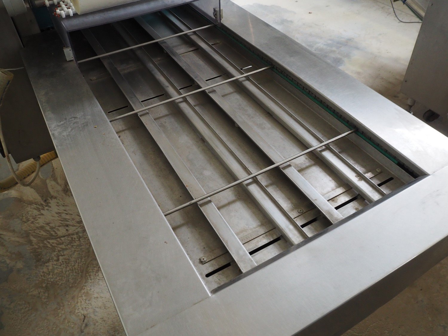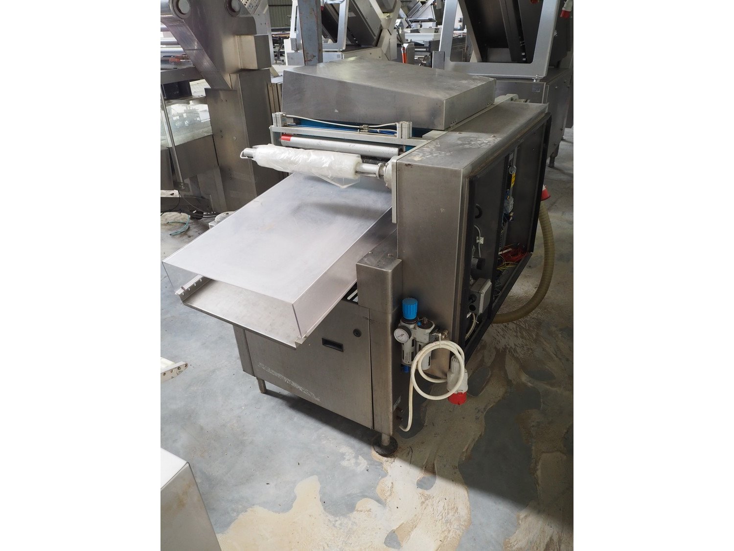 Henkovac traysealer, model: TPS-950, serial number: 29.07.10.22, year of construction: 2007, 400 V, 3 Ph, 50 Hz, 15 A, weight: 500 kg, dimensions dyes: (2x) 250 mm x 165 mm, outfeed roller conveyor, roller width: 490 mm, total dimensions: 2650 mm x 1040 mm x 1400 mm. Missing cover. Kavel locatie: Lipsko 241, 22-400 Zamość, Polen