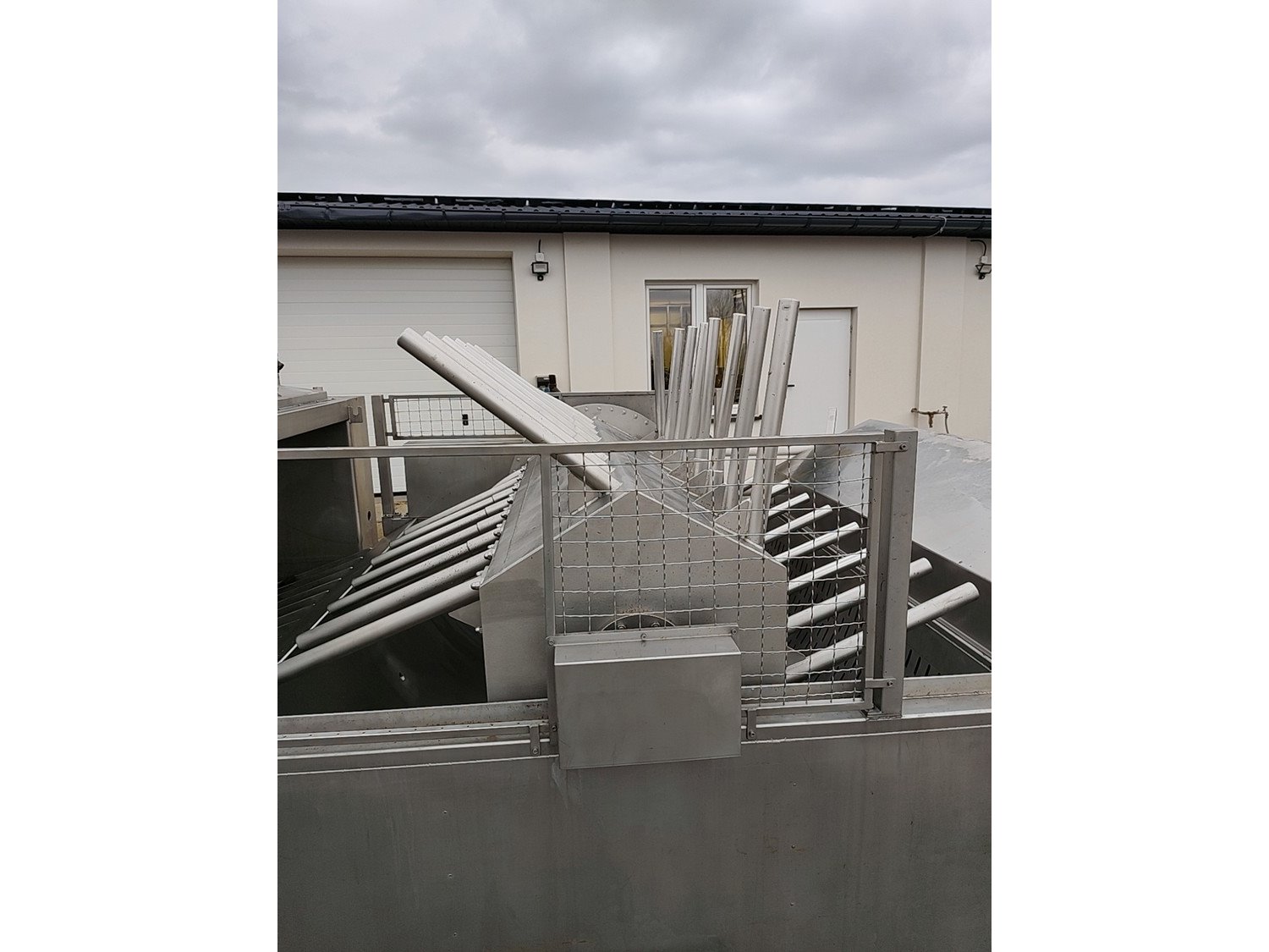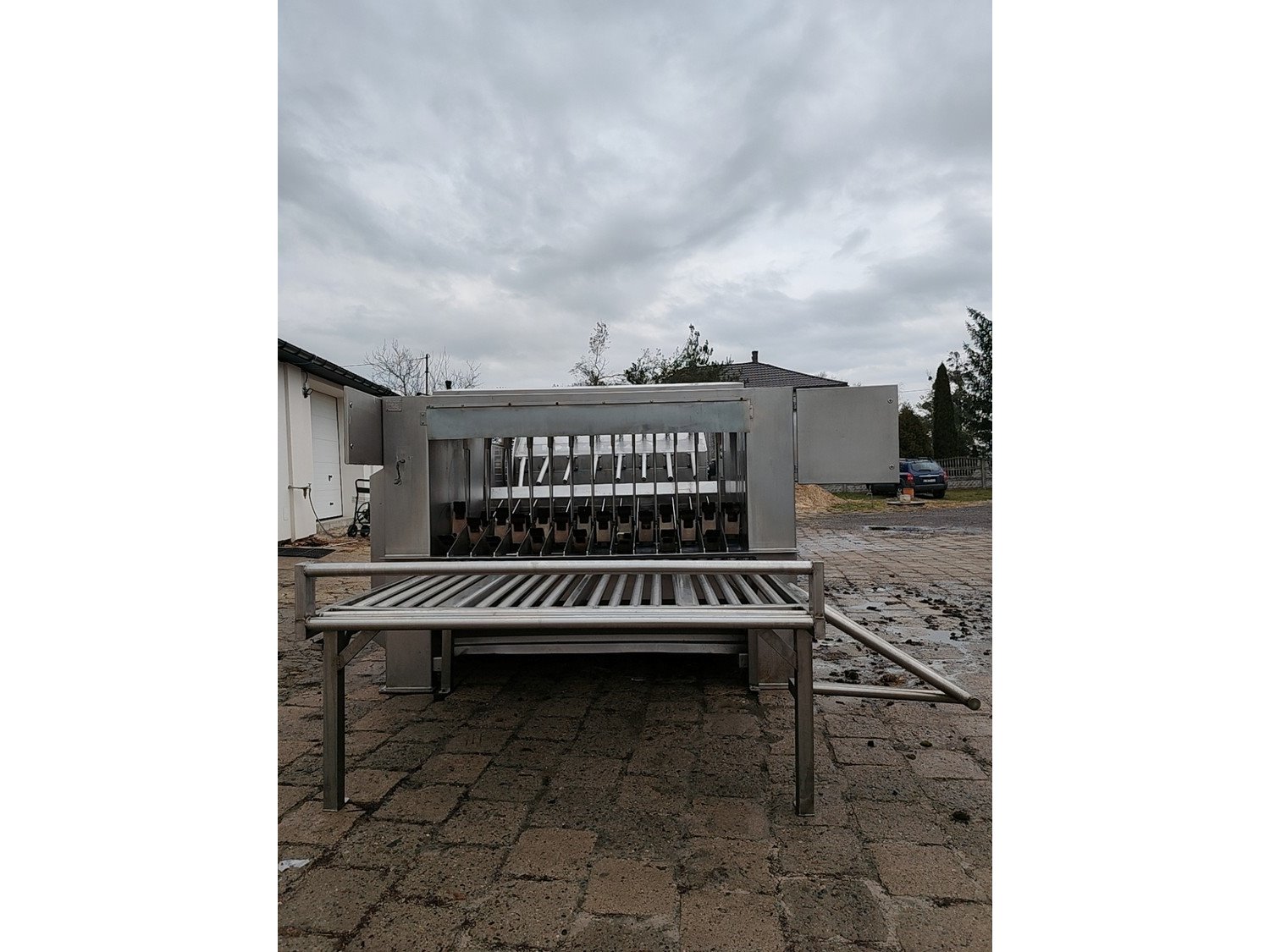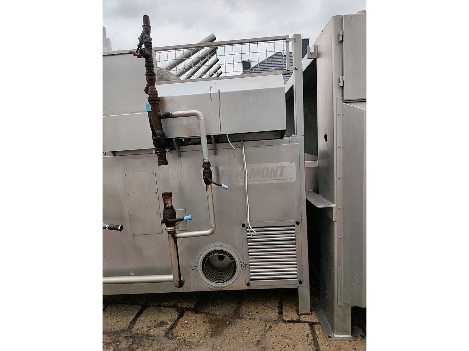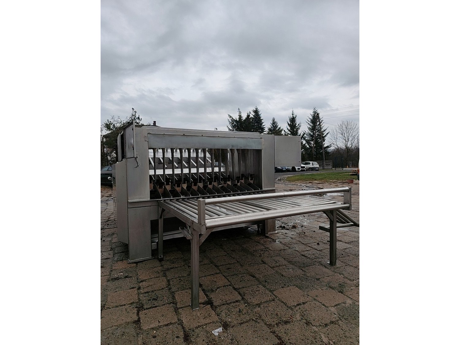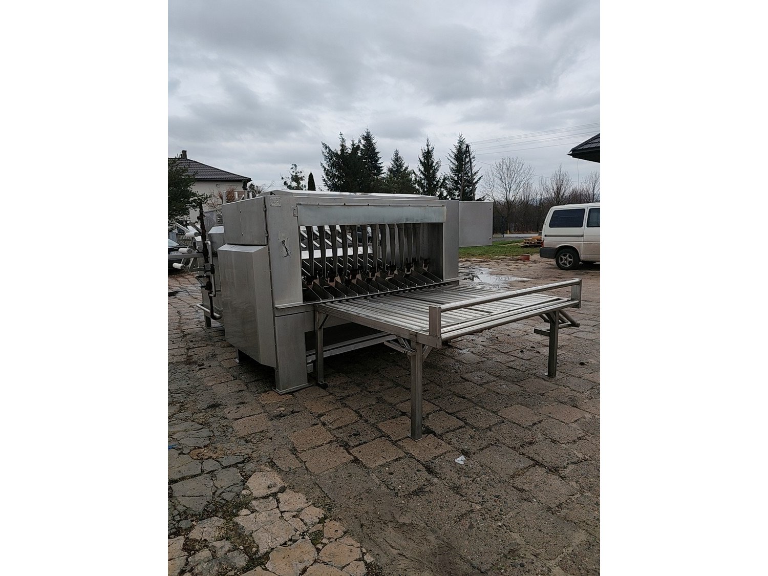 Pekmont immersion scalder and dehairer line, consisting of: Pekmont immersion scalder, type OP-3p, number: 28, year of construction: 2010, 400 V, 2.2kW, weight: 1450 kg, dimensions: 3300 mm x 2800 mm x 2300 mm. Pekmont dehairer, type: SP-1, number: 24, year of construction: 2010, 400 V, 11 kW, weight: 2100 kg, dimensions: 2800 mm x 1500 mm x 2100 mm. S/s table, dimensions: 2200 mm x 1750 mm x 1050 mm. Kavel locatie: Lipsko 241, 22-400 Zamość, Polen