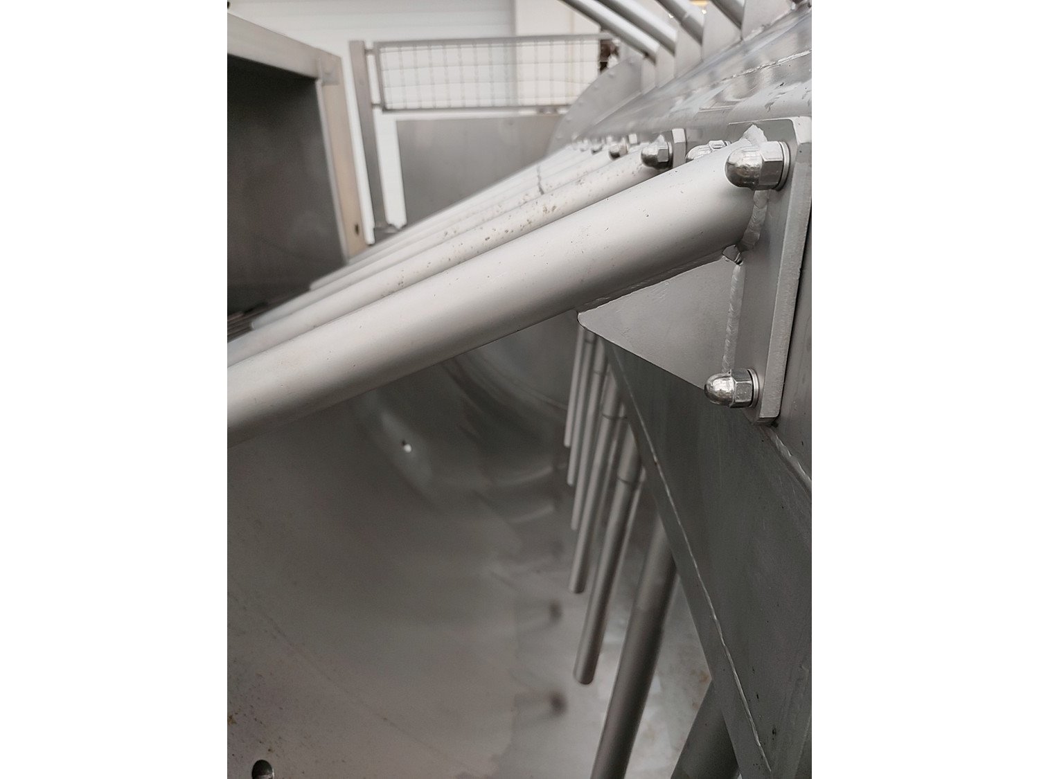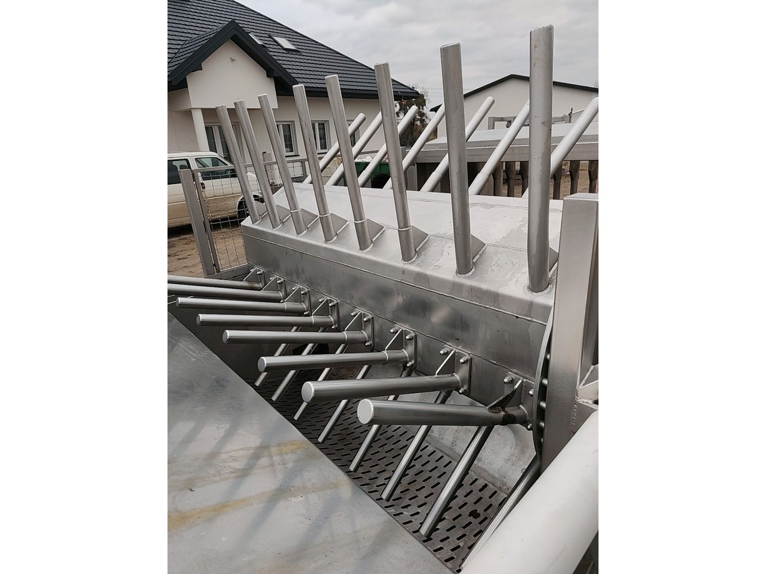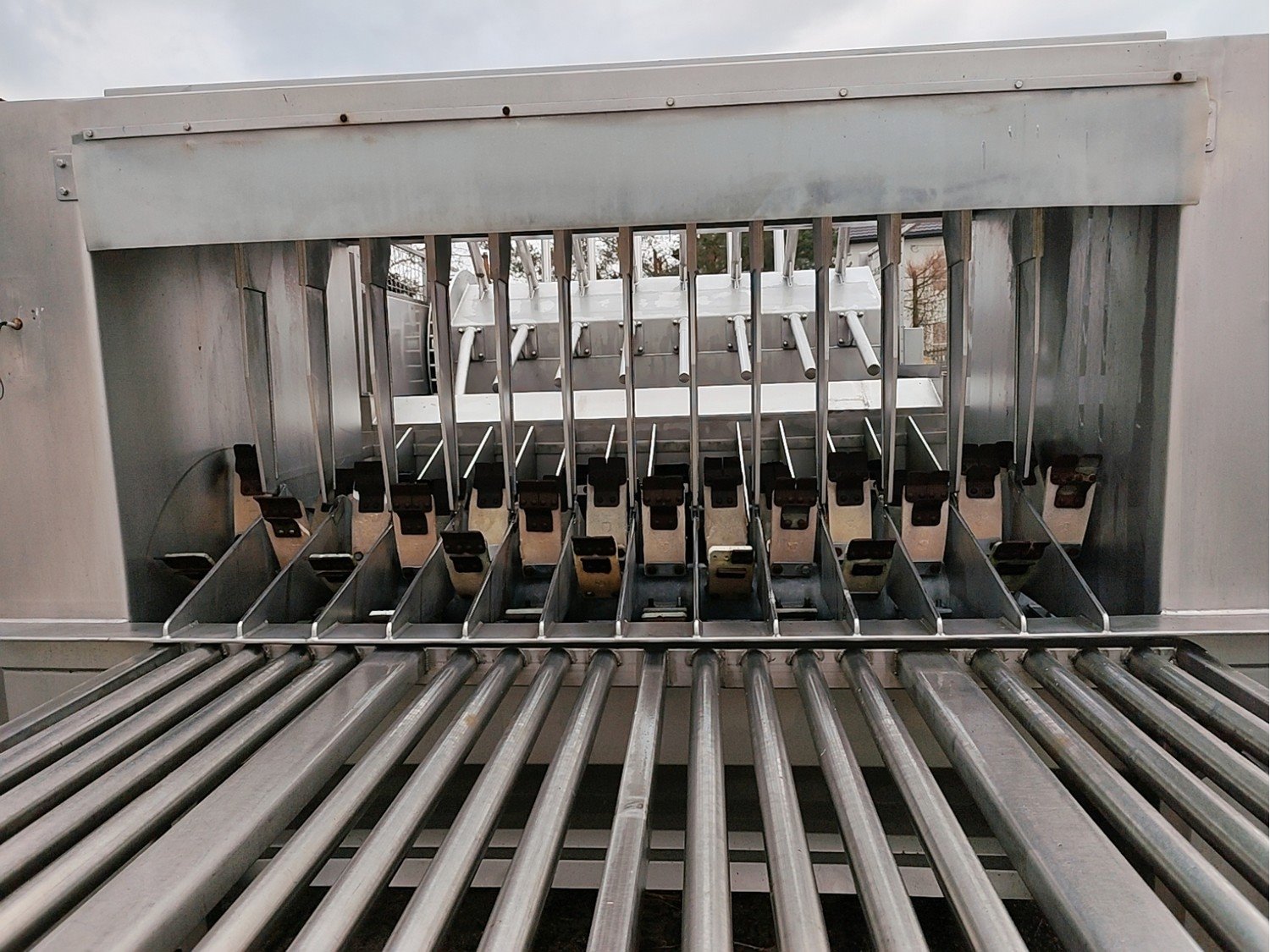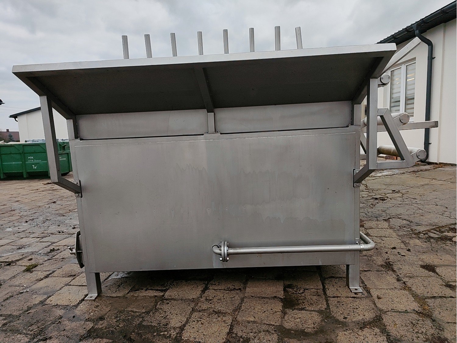 Pekmont immersion scalder and dehairer line, consisting of: Pekmont immersion scalder, type OP-3p, number: 28, year of construction: 2010, 400 V, 2.2kW, weight: 1450 kg, dimensions: 3300 mm x 2800 mm x 2300 mm. Pekmont dehairer, type: SP-1, number: 24, year of construction: 2010, 400 V, 11 kW, weight: 2100 kg, dimensions: 2800 mm x 1500 mm x 2100 mm. S/s table, dimensions: 2200 mm x 1750 mm x 1050 mm. Kavel locatie: Lipsko 241, 22-400 Zamość, Polen