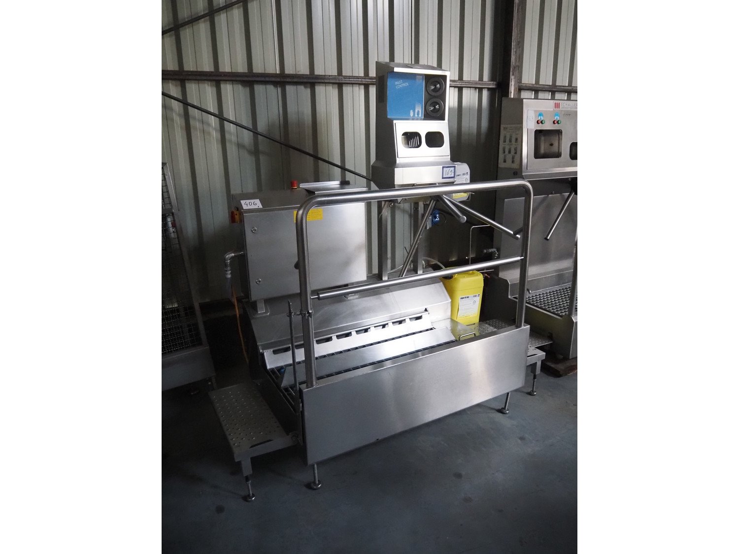 ITEC Food Technology hygiene station with sole cleaner, hand disinfection and tourniquet, type: 23872, serial number: 0025, order number: 49447, year of construction: 11/2003, 400 V, 3 Ph, 50 Hz, 0.3 kW, brush length: (2x) 900 mm, total dimensions: 1950 mm x 1000 mm x 2000 mm. Kavel locatie: Lipsko 241, 22-400 Zamość, Polen