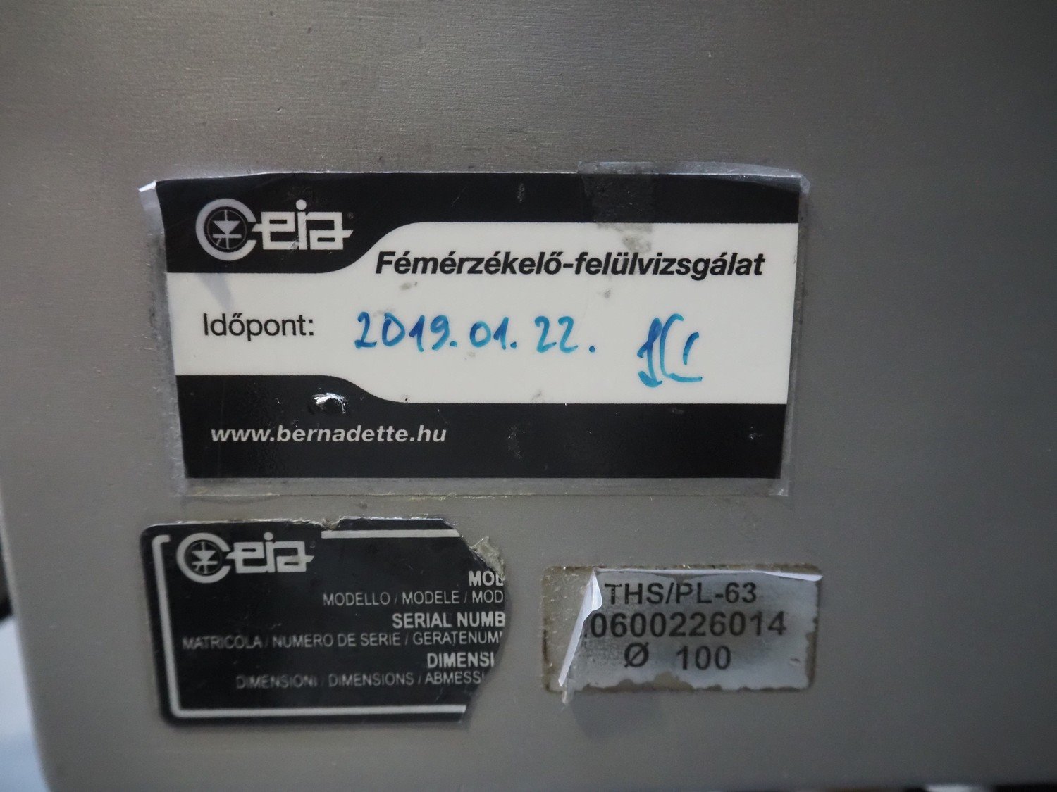 Ceia S.p.A. mobile pipeline metal detector, model: THS/PL-63, serial number: 20600226014, 230 V, 50-60 Hz, clearance: Ø 100 mm, total dimensions: 580 mm x 360 mm x 1580 mm. Kavel locatie: Lipsko 241, 22-400 Zamość, Polen