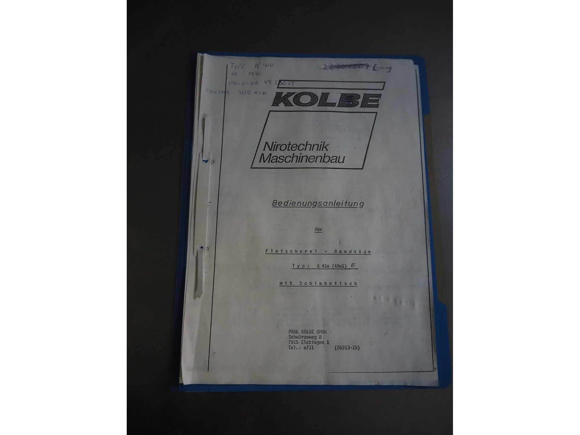 Kolbe bandsaw, type: K410, serial number: 49 230 ET, year of construction: 1990, table dimensions: 970 mm x 880 mm, total dimensions: 970 mm x 880 mm x 1820 mm. Kavel locatie: Lipsko 241, 22-400 Zamość, Polen