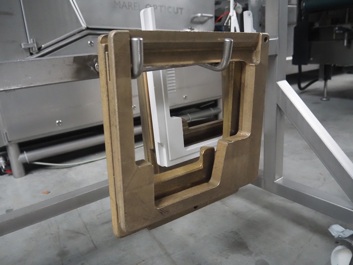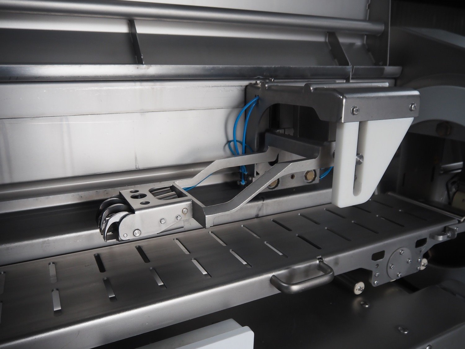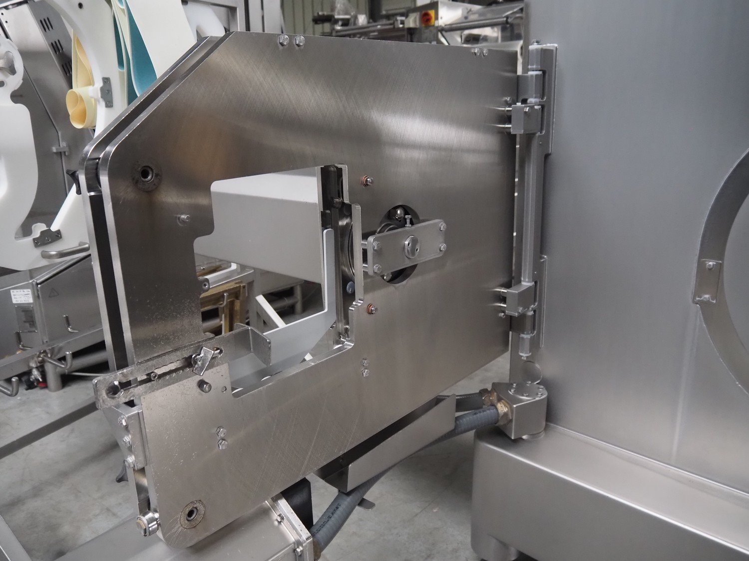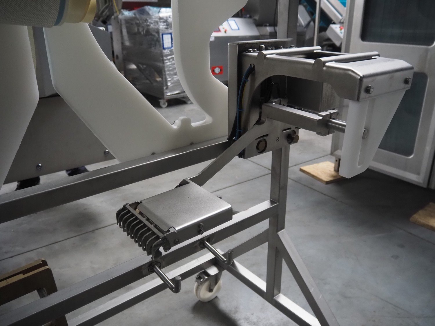 Treif Maschinenbau GmbH slicer and portion cutter, type: FALCON conti, machine number: 461005.154538.109916, year of construction: 2010, 24/380/480 V, 3 Ph, 50/60 Hz, 18/22/32 A, 8.6/11.7 kW, clearance: 260 mm x 220 mm, dimensions: 4300 mm x 1400 mm x 1900 mm. Without belt. Including s/s tool trolley with knife holders, dimensions trolley: 1400 mm x 750 mm x 1600 mm. Kavel locatie: Lipsko 241, 22-400 Zamość, Polen