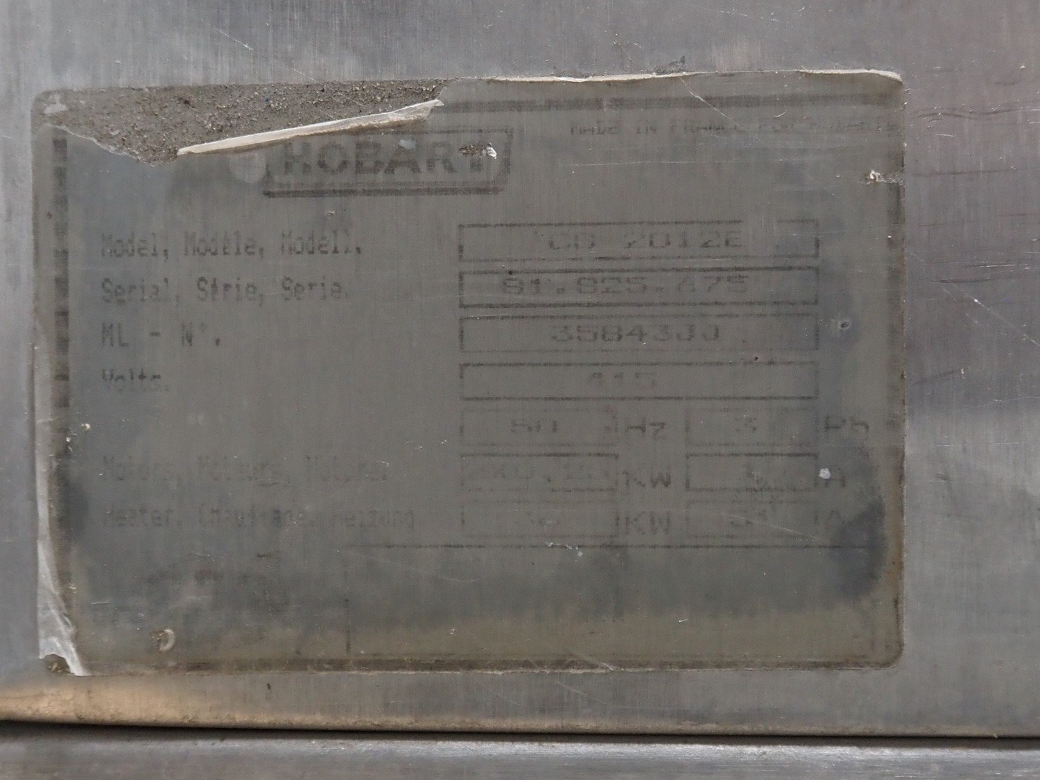 Hobart combi steamer, type: CD.20126, serial number: 81.825.475, 415 V, 3 Ph, 50 Hz, 20 floors, floor dimensions: (20x) 325 mm x 535 mm, total dimensions: 1100 mm x 1150 mmm x 1920 mm. Kavel locatie: Lipsko 241, 22-400 Zamość, Polen