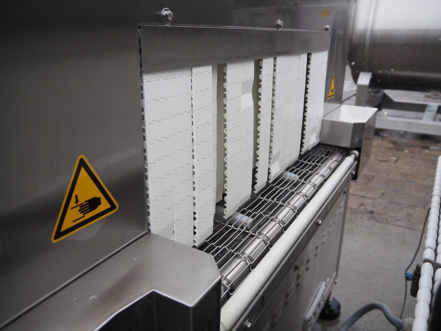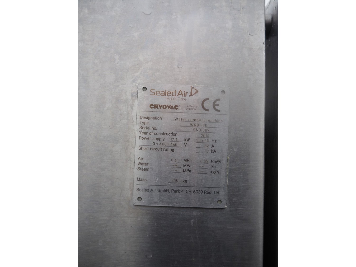 Cryovac drying tunnel, type: WR81-800, serial number: SN01307, year of construction: 2016, 400-460 V, 3 Ph, 50 / 60 Hz, 32 A, 17.6 kW, s/s mesh belt, belt width: 845 mm, working width: 800 mm, clearance: 810 mm x 300 mm, total dimensions: 2050 mm x 1320 mm x 1650 mm. Kavel locatie: Lipsko 241, 22-400 Zamość, Polen