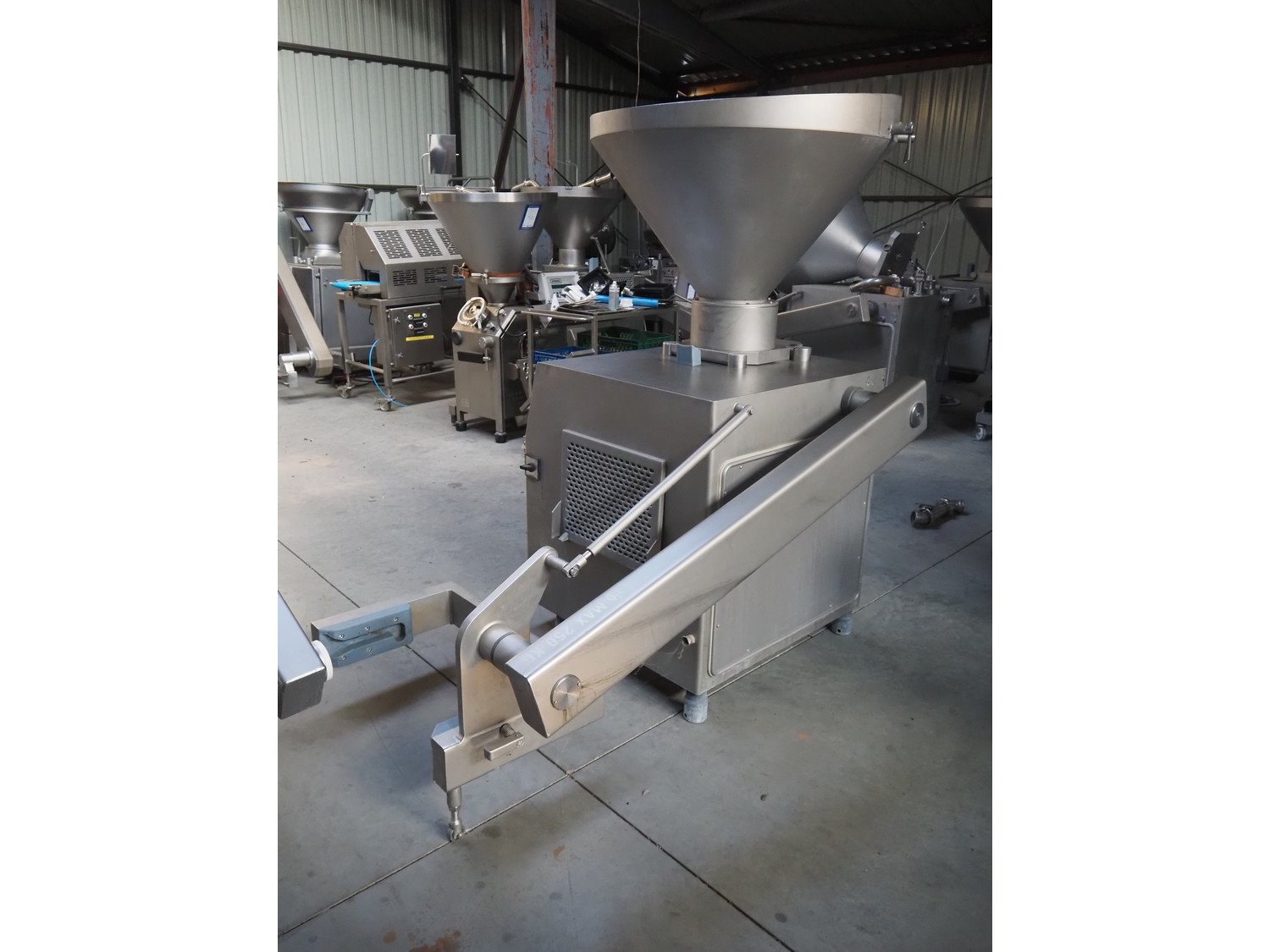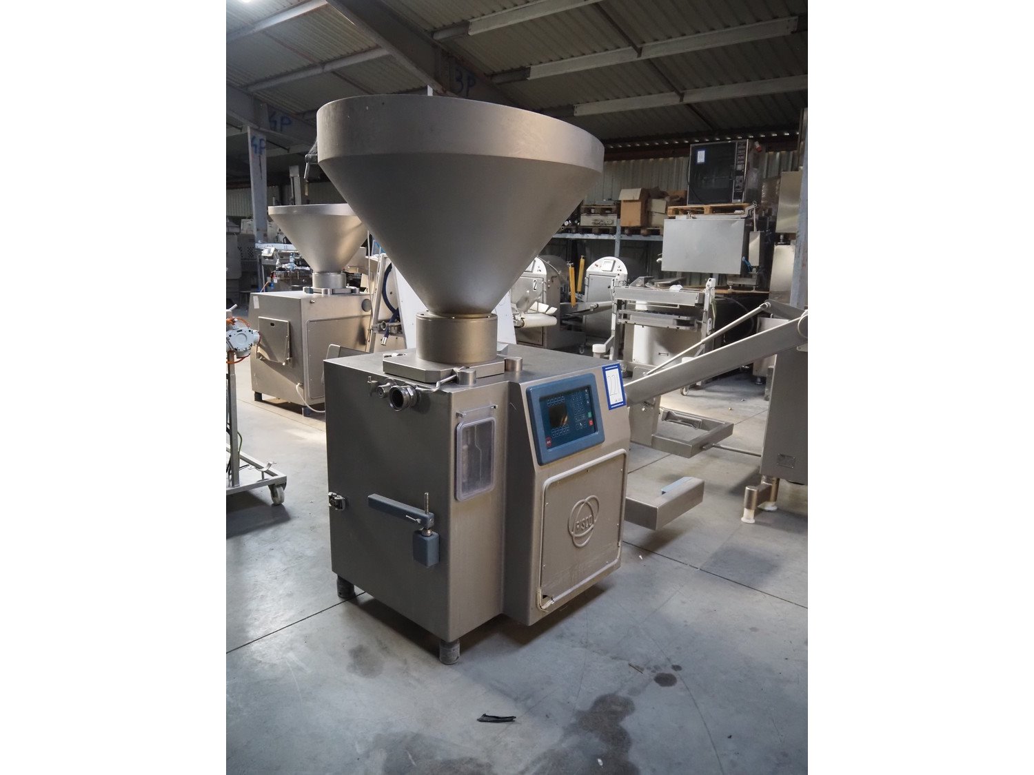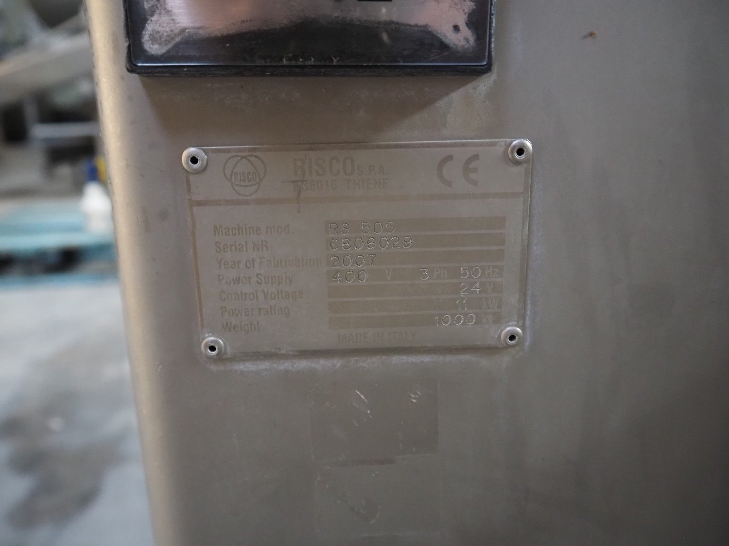 Risco S.p.A. vacuum filling machine with lifter for 200 liter meat bins, type: RS 505, serial number: C806029, year of construction: 2007, 400 V, 3 Ph, 50 Hz, 11 kW, machine weight: 1000 kg, total dimensions: 2000 mm x 1400 mm x 2100 mm. Kavel locatie: Lipsko 241, 22-400 Zamość, Polen