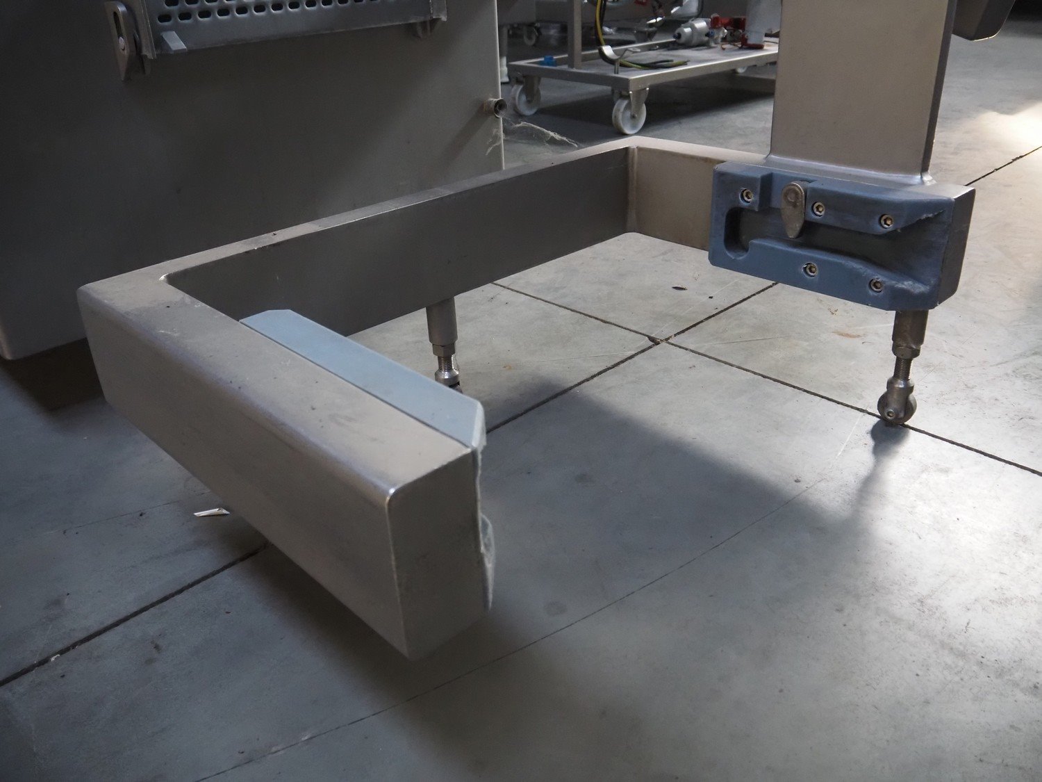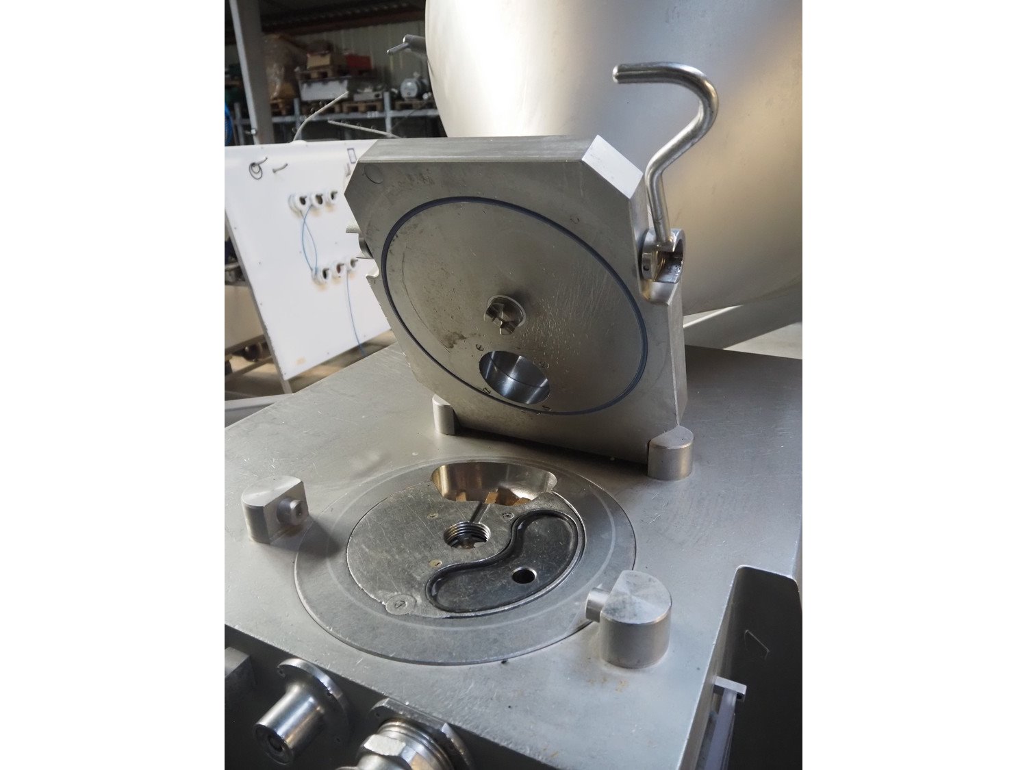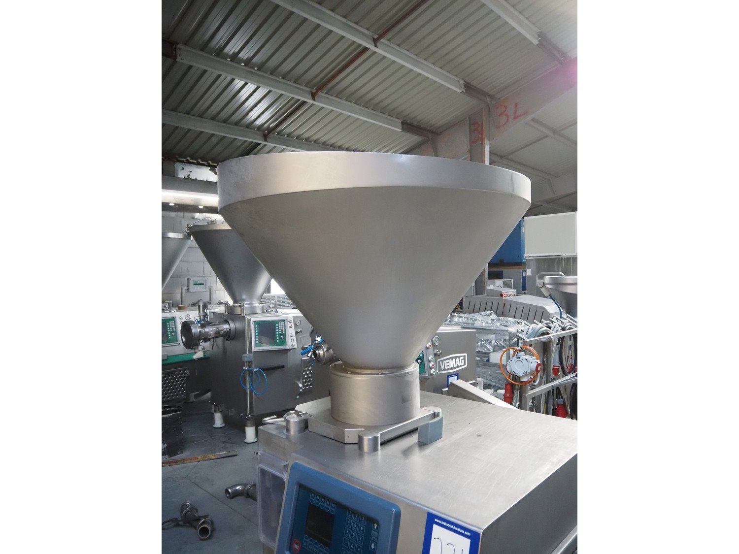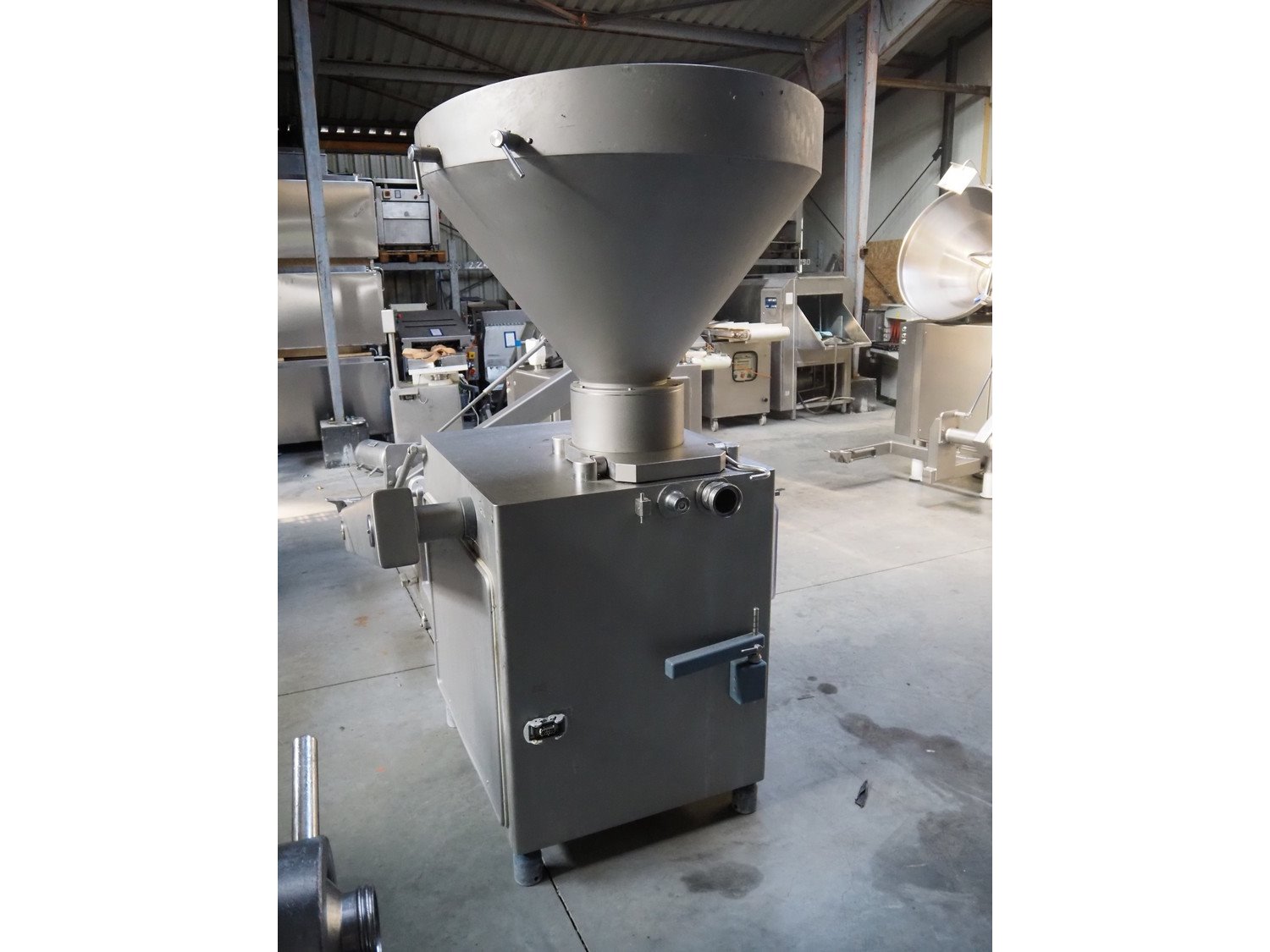Risco S.p.A. vacuum filling machine with lifter for 200 liter meat bins, type: RS 505, serial number: C806029, year of construction: 2007, 400 V, 3 Ph, 50 Hz, 11 kW, machine weight: 1000 kg, total dimensions: 2000 mm x 1400 mm x 2100 mm. Kavel locatie: Lipsko 241, 22-400 Zamość, Polen