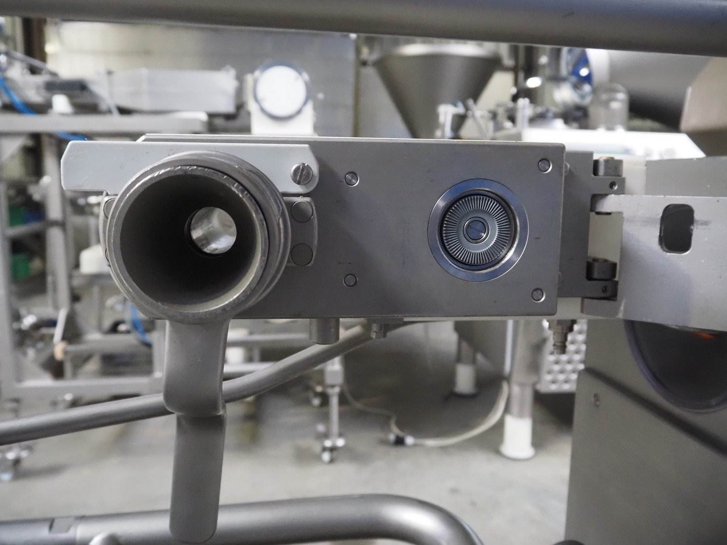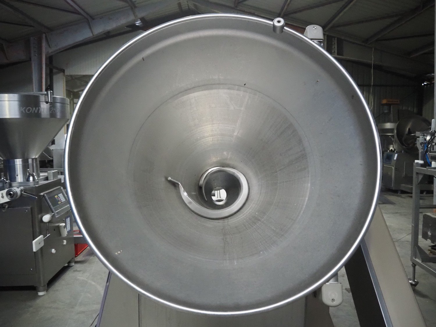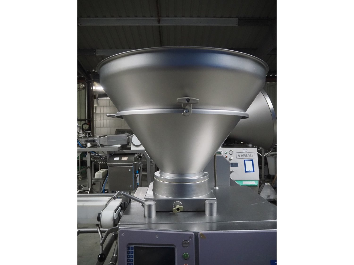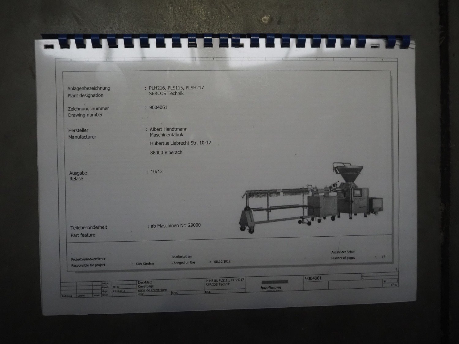 Handtmann vacuum filling machine with lifter for 200 liter meat bins, type: VF200B, number: 4333, year of construction: 1999, 400 V, 50 Hz, 17 A, 6.5 kW, dimensions: 2300 mm x 1450 mm x 1950 mm. Including linking attachment and case holding device. Kavel locatie: Lipsko 241, 22-400 Zamość, Polen