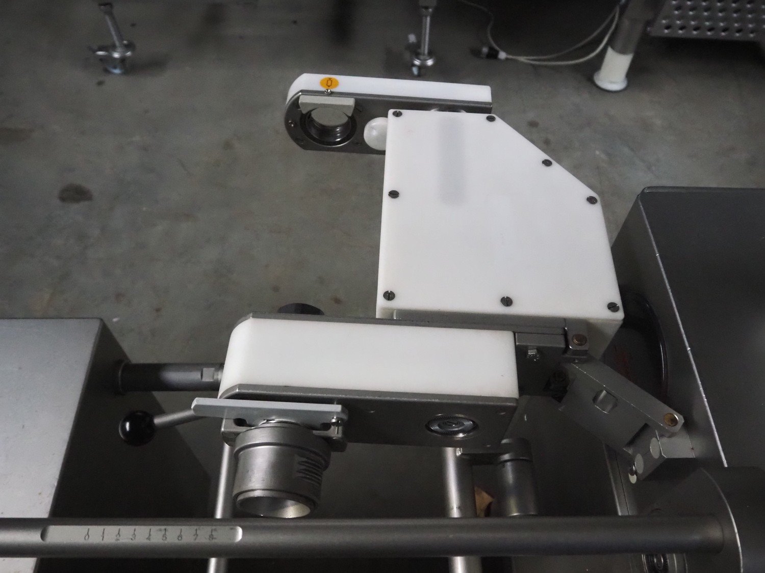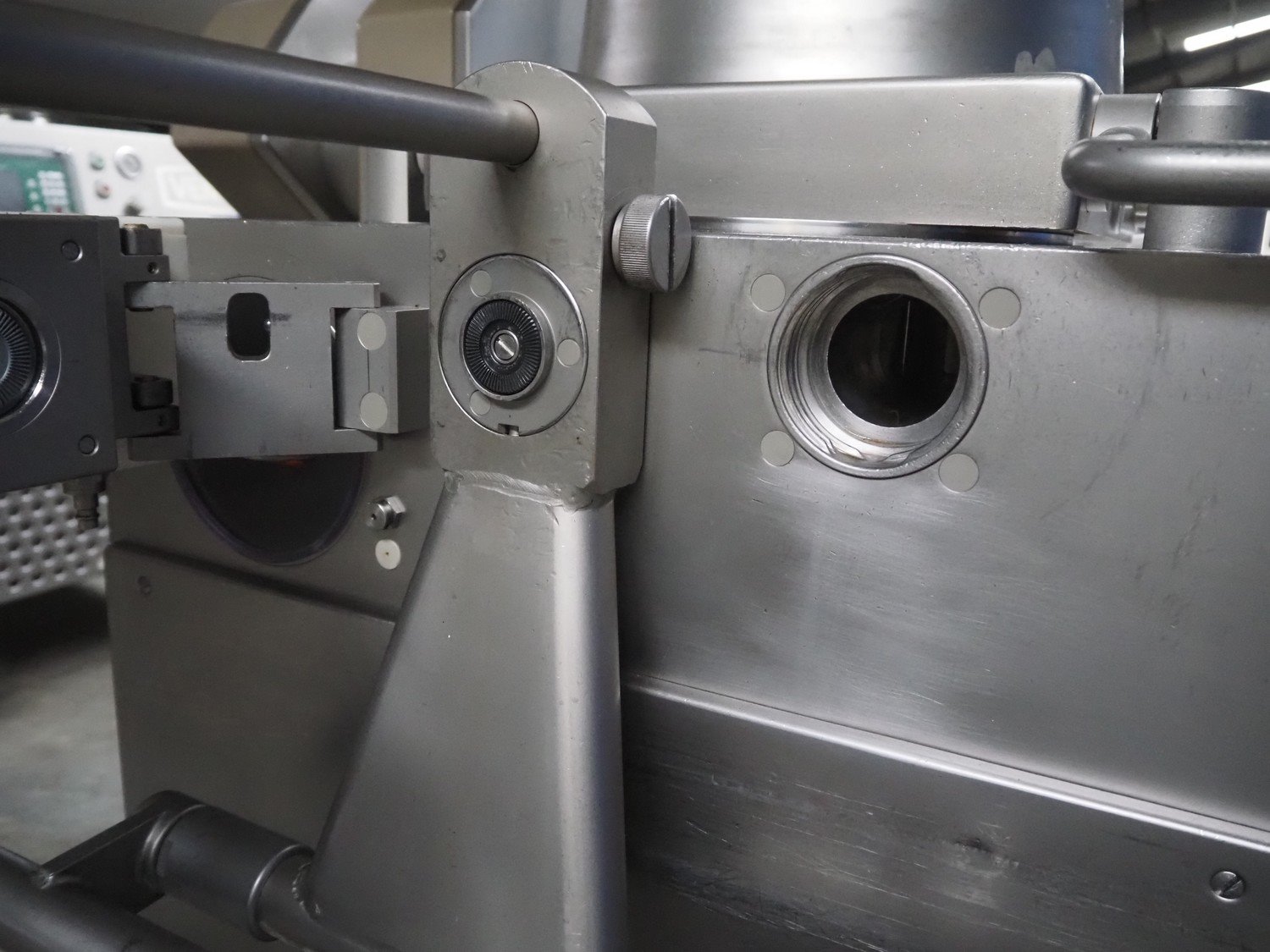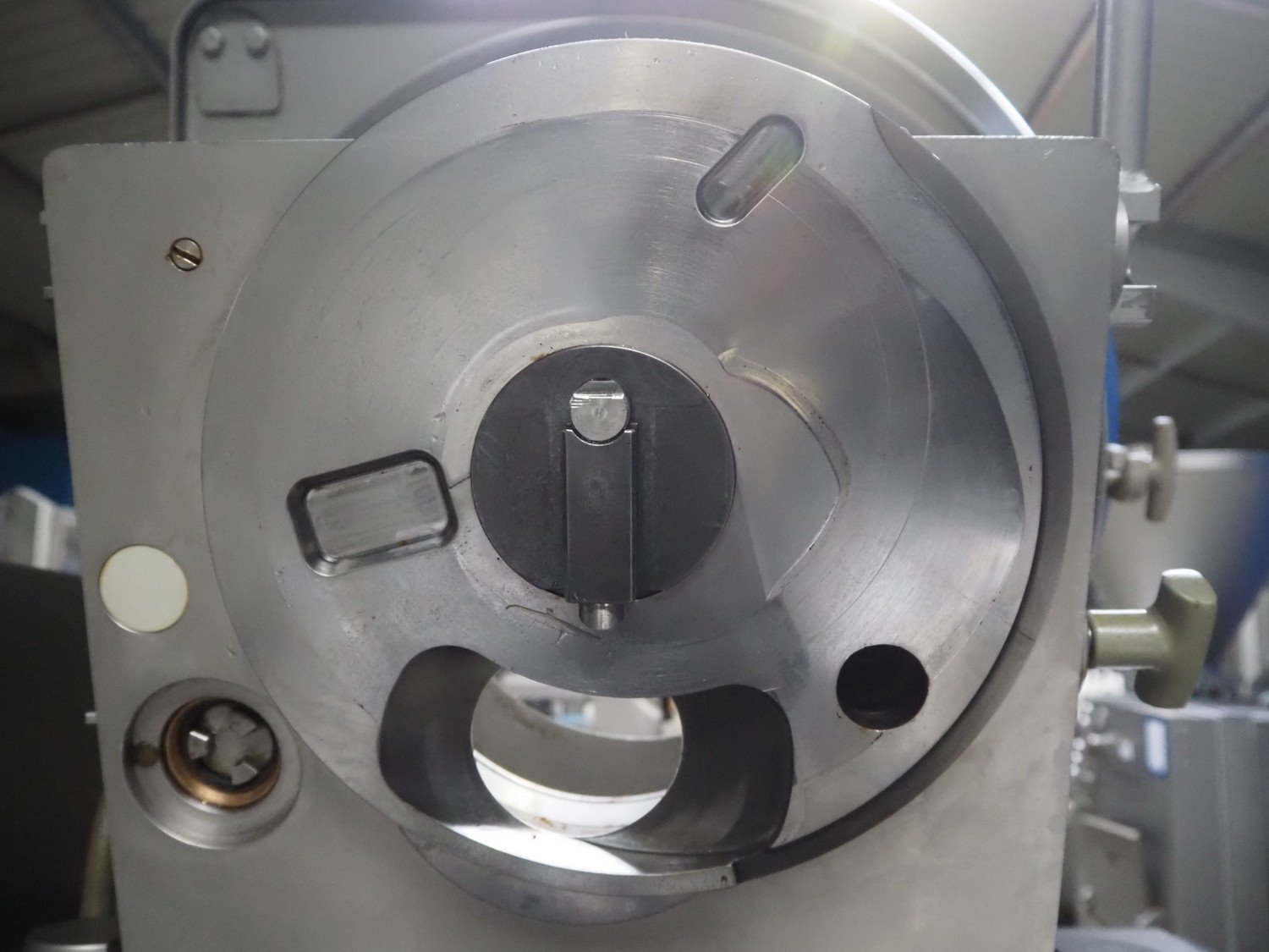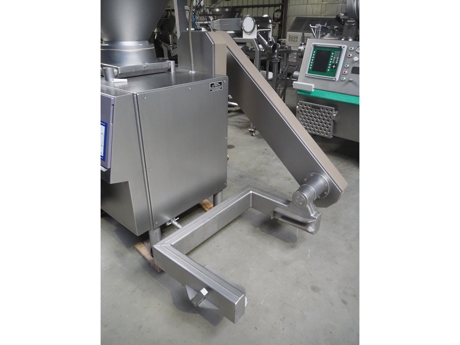 Handtmann vacuum filling machine with lifter for 200 liter meat bins, type: VF200B, number: 4333, year of construction: 1999, 400 V, 50 Hz, 17 A, 6.5 kW, dimensions: 2300 mm x 1450 mm x 1950 mm. Including linking attachment and case holding device. Kavel locatie: Lipsko 241, 22-400 Zamość, Polen