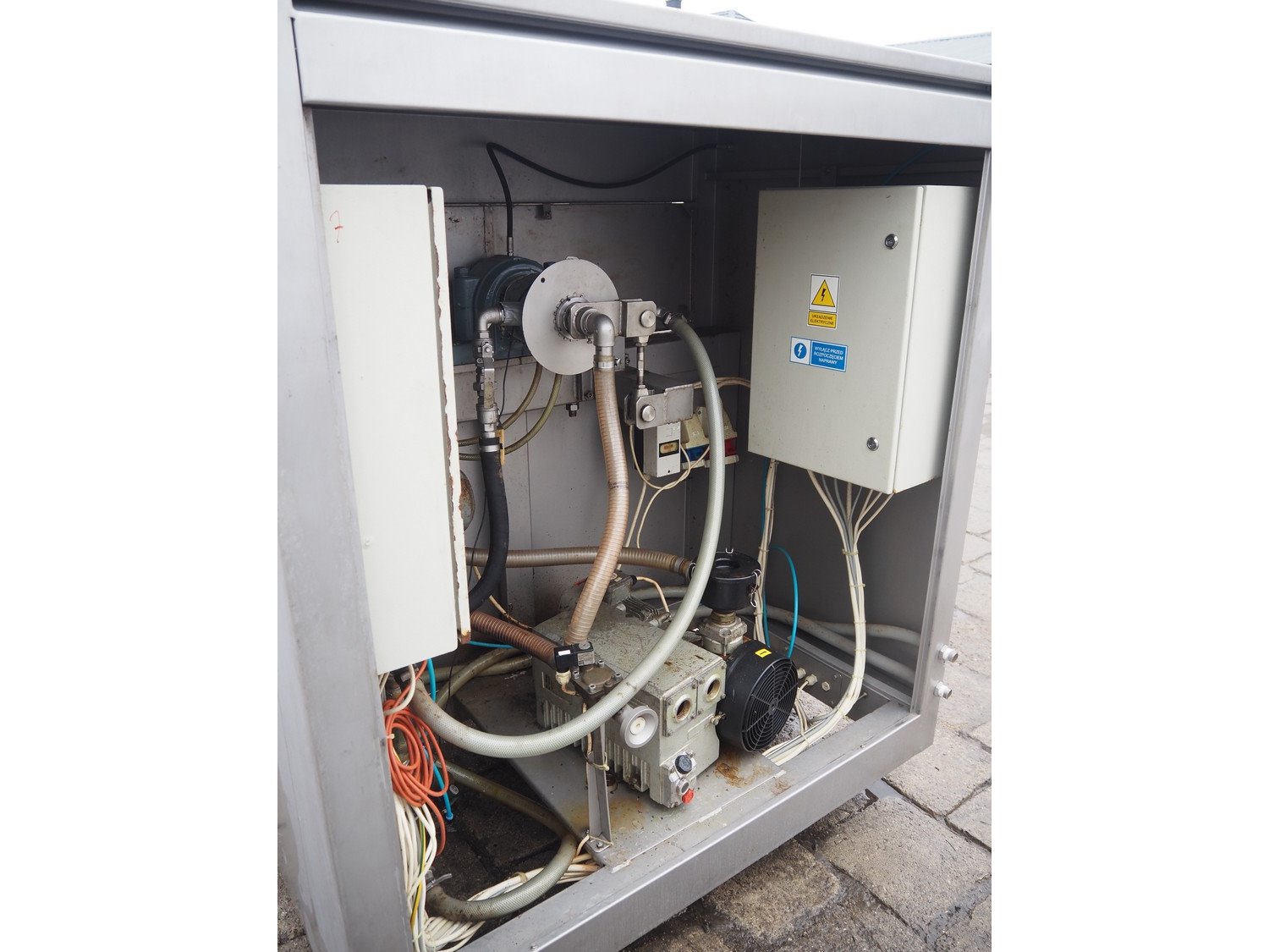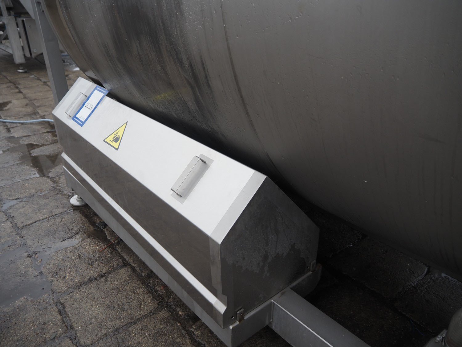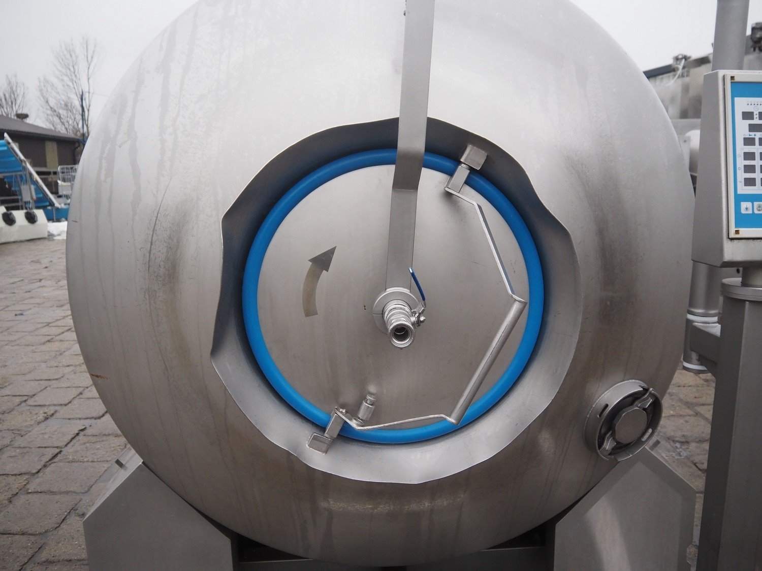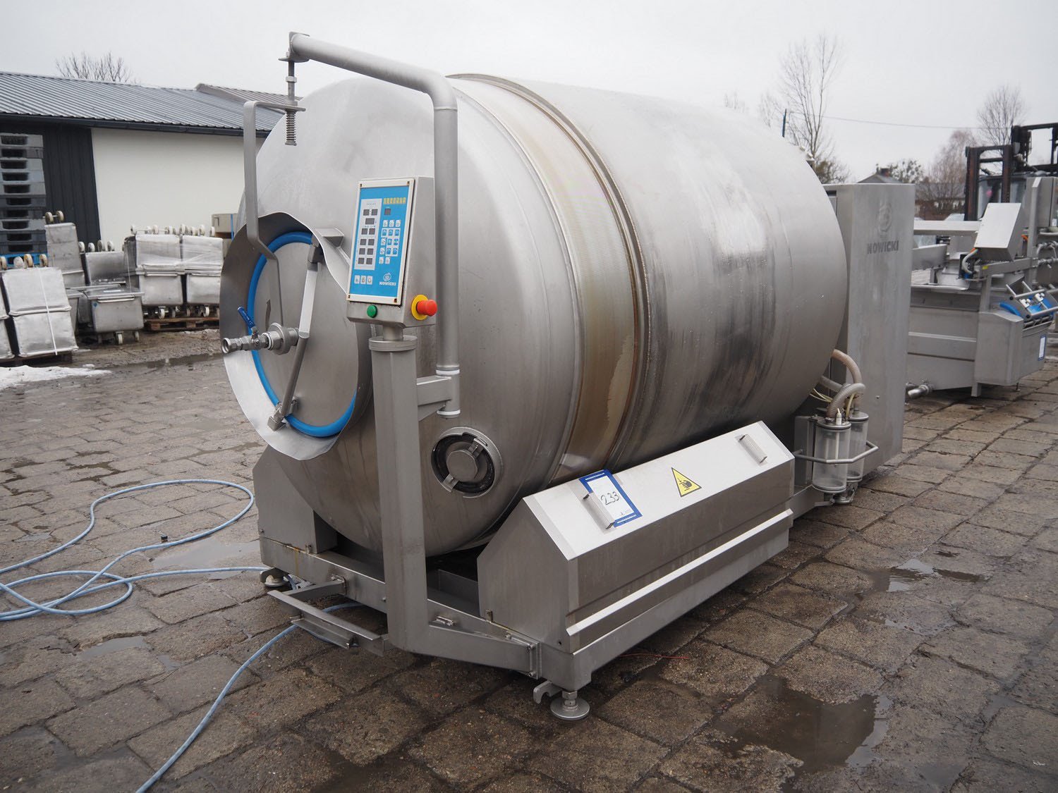 Nowicki s/s vacuum tumbler, type: MA-3600 PSCH, serial number: 22703025, year of construction 2003, 400 V, 3 Ph, 5.3 / 11.1 kW, capacity: 3600 liter, weight: 2000 kg, clearance: Ø 600 mm, with Busch vacuum pump, type: RC 0063 E 501, serial number: 03007773, 20 hPa, total dimensions: 3200 mm x 1750 mm x 2050 mm. Kavel locatie: Lipsko 241, 22-400 Zamość, Polen