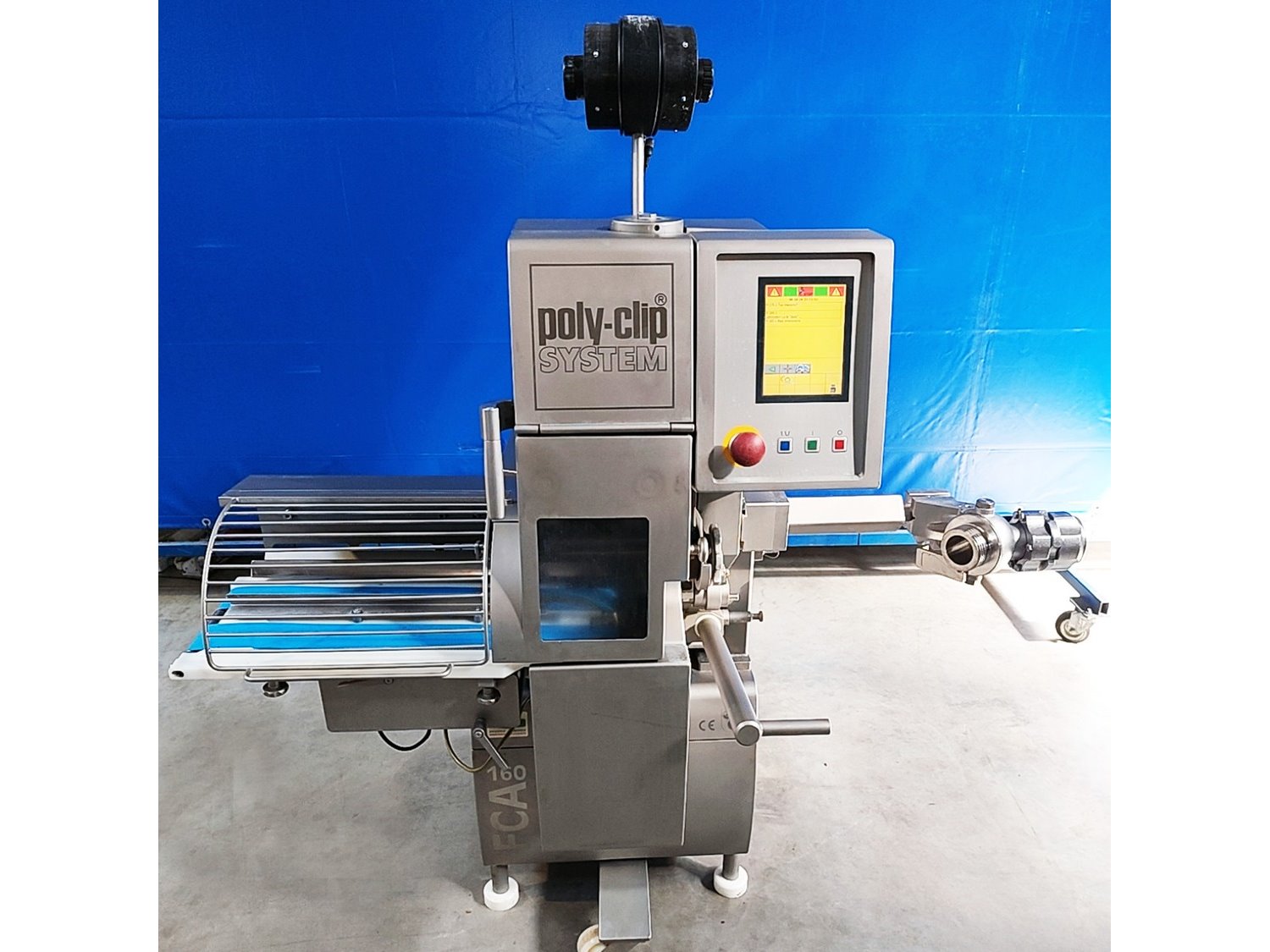 Poly-clip System GmbH & Co. KG automatic double clipper, model: FCA 160, 3x400 V, 50/60 Hz, 6.0 A, 4.0 kW, 5-7 bar, 625 kg, dimensions: 1500 mm x 1200 mm x 1900 mm. Kavel locatie: Lipsko 241, 22-400 Zamość, Polen