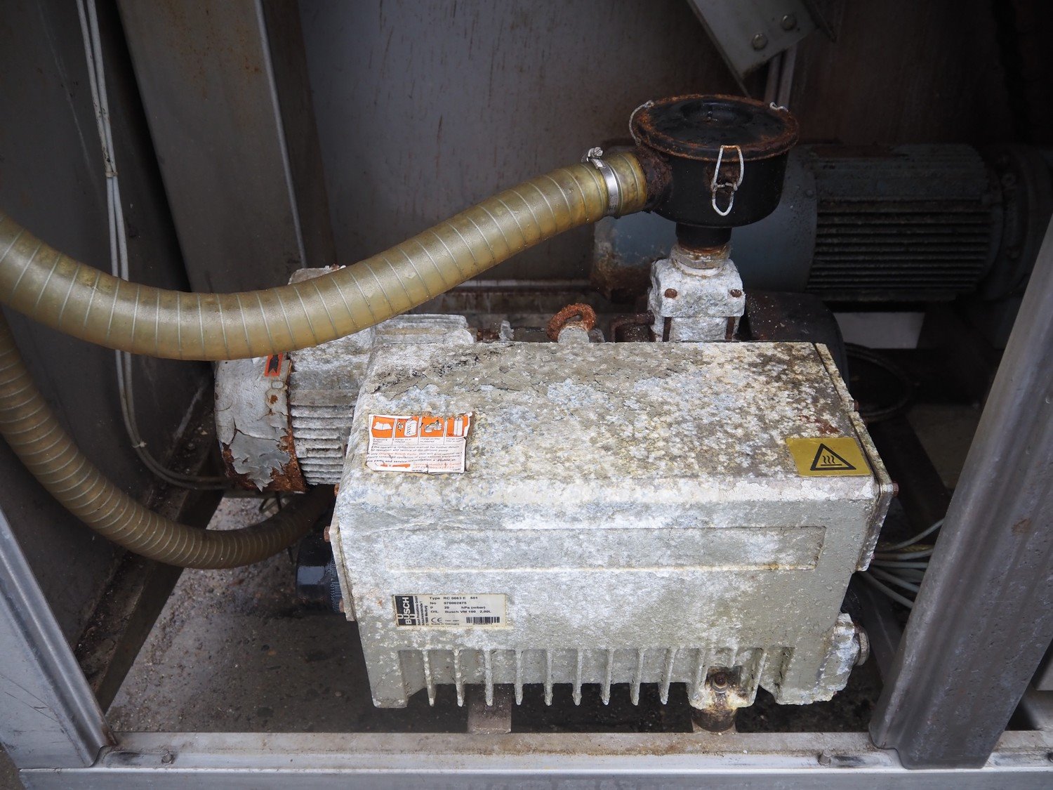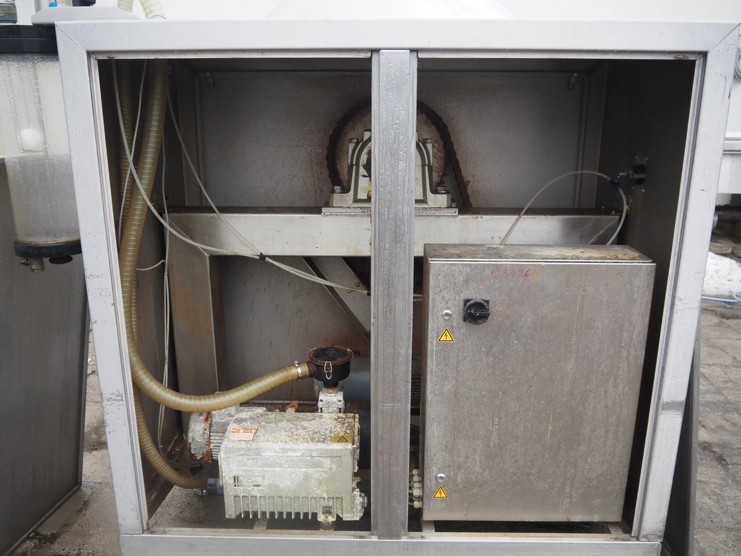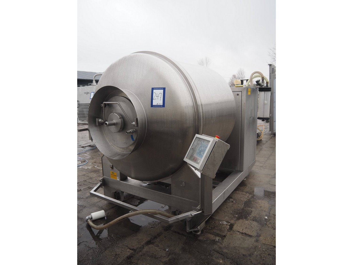 Henneken s/s vacuum tumbler, inside dimensions: Ø 1400 mm x 1700 mm, clearance: Ø 500 mm, with busch vacuum pump, type: RC 0063 E 501, serial number: 070002875, year of construction: 2007, 20 hPa, total dimensions: 3000 mm x 1900 mm x 2050 mm. Kavel locatie: Lipsko 241, 22-400 Zamość, Polen