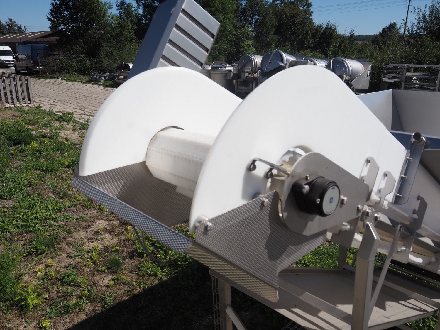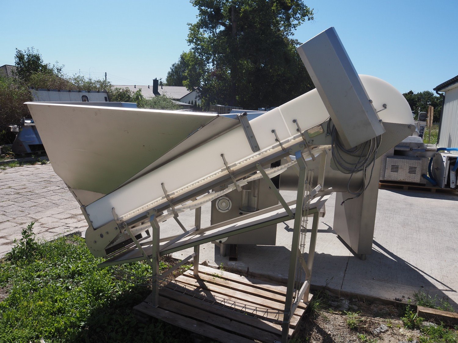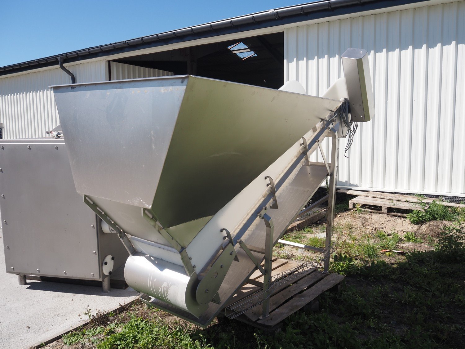 Carsoe elevating belt with dividers, type: INFEED CONVEYOR, serial number: SO-12611, year of construction: 2016, 230 V, 1 Ph, 0.25 kW, plastic belt, belt width: 505 mm, divider height: 25 mm, distance between dividers: 600 mm, elevating height: 1700 mm, total dimensions: 2700 mm x 1100 mm x 2000 mm. Kavel locatie: Lipsko 241, 22-400 Zamość, Polen