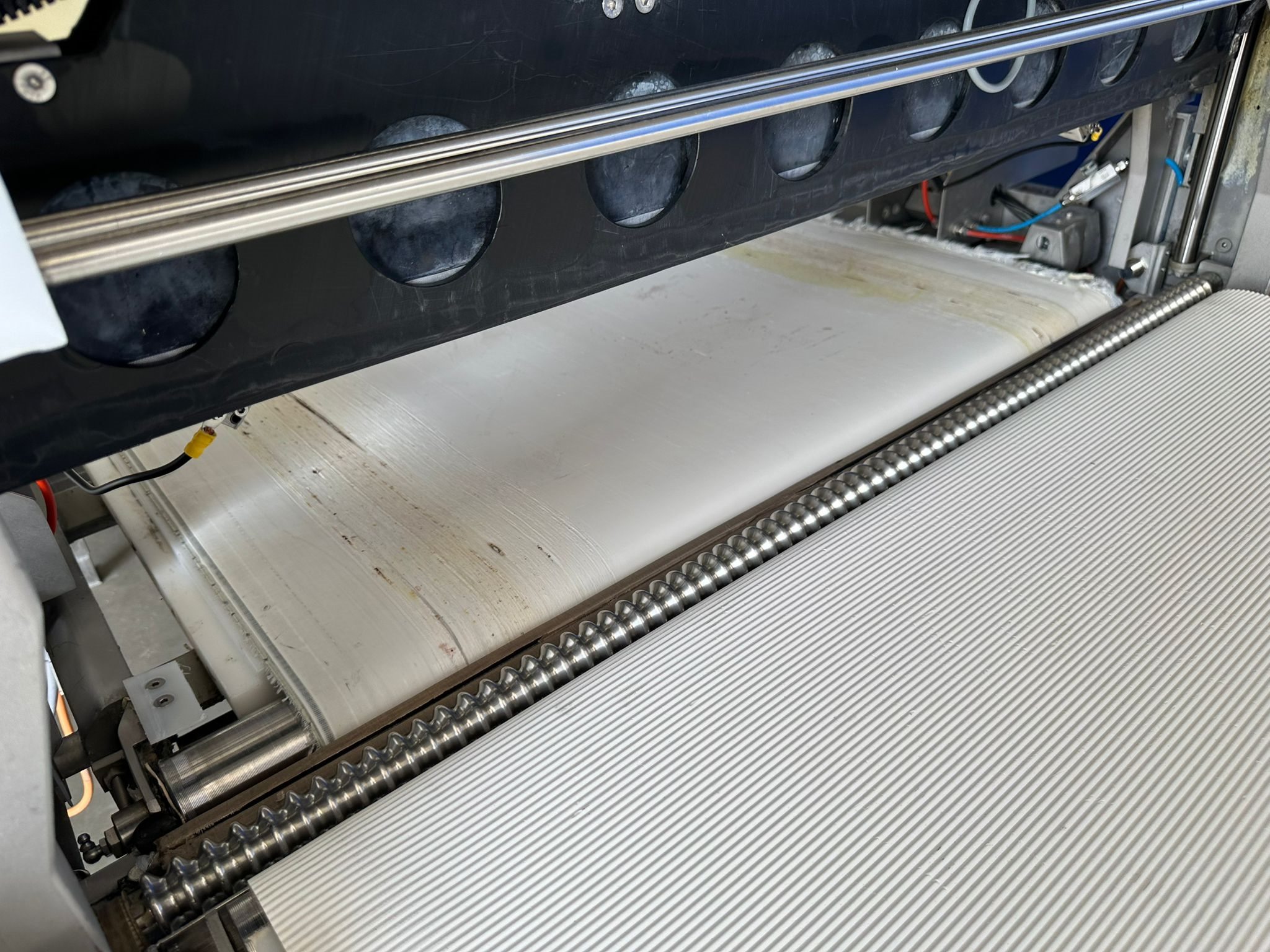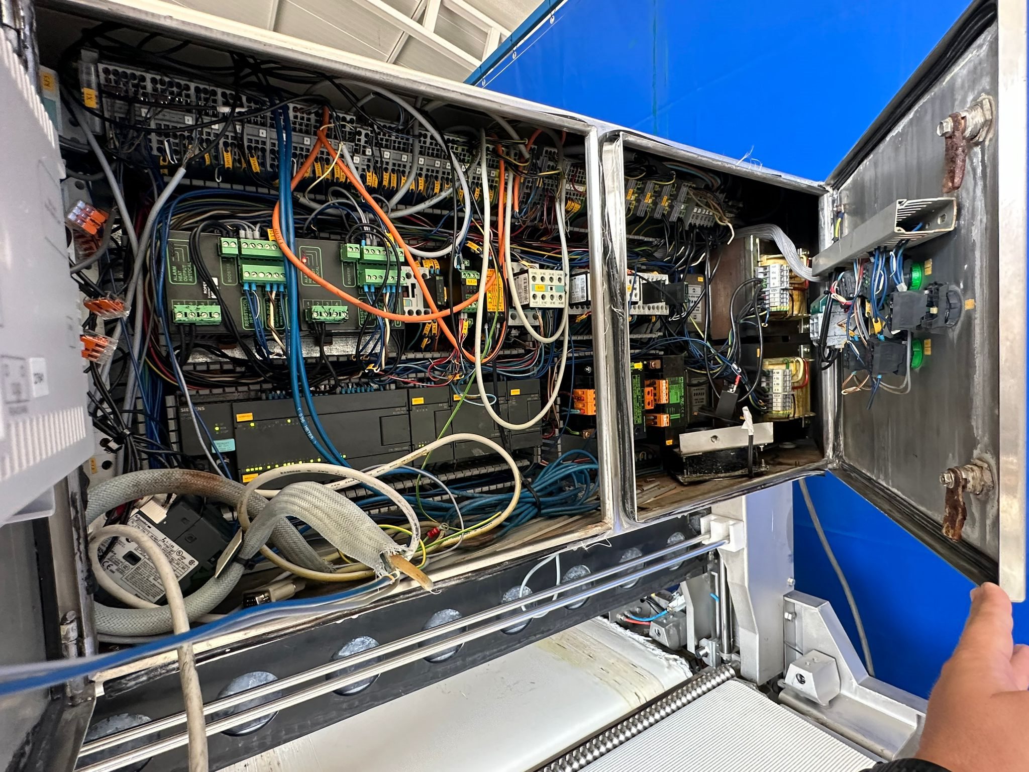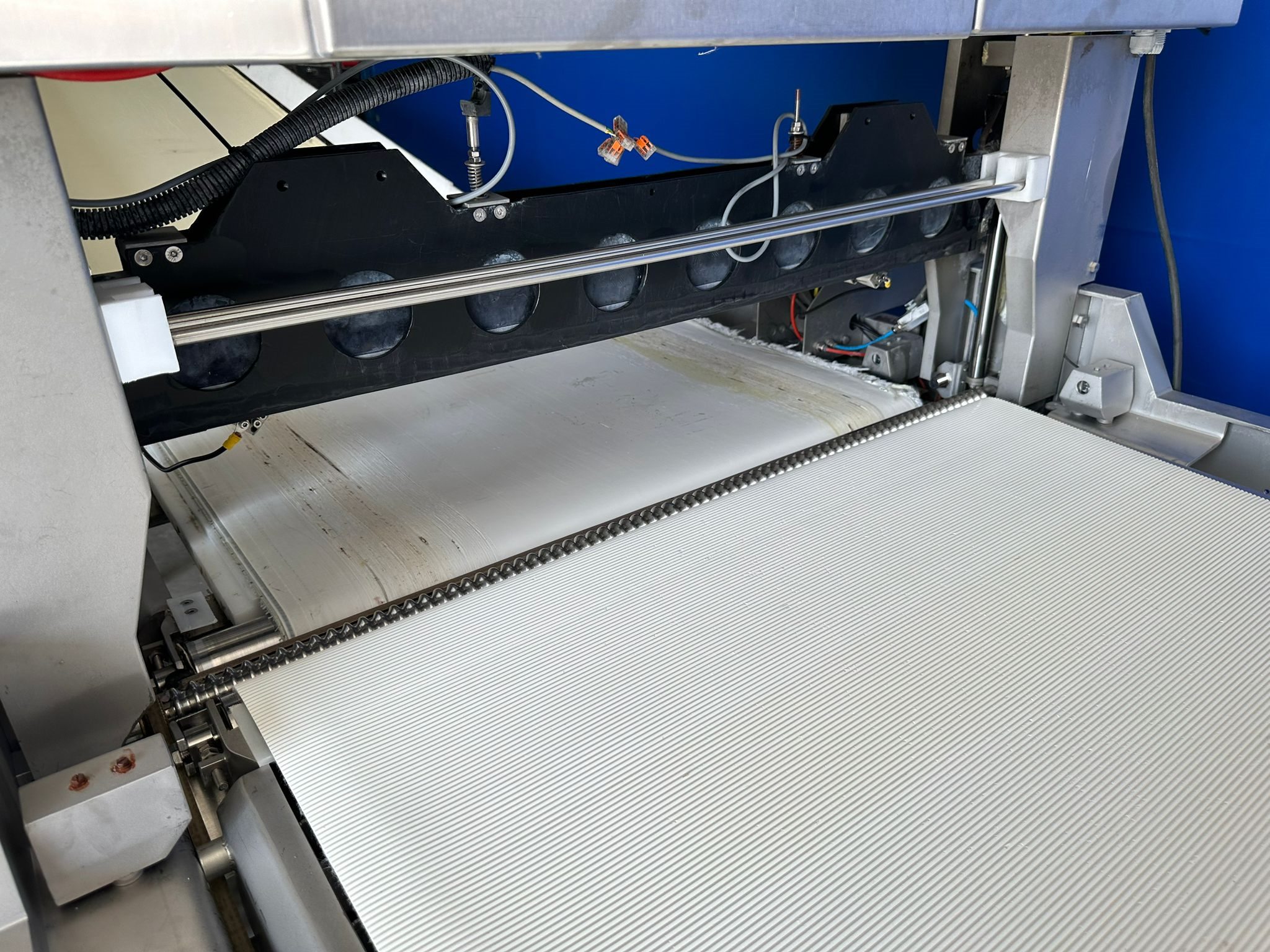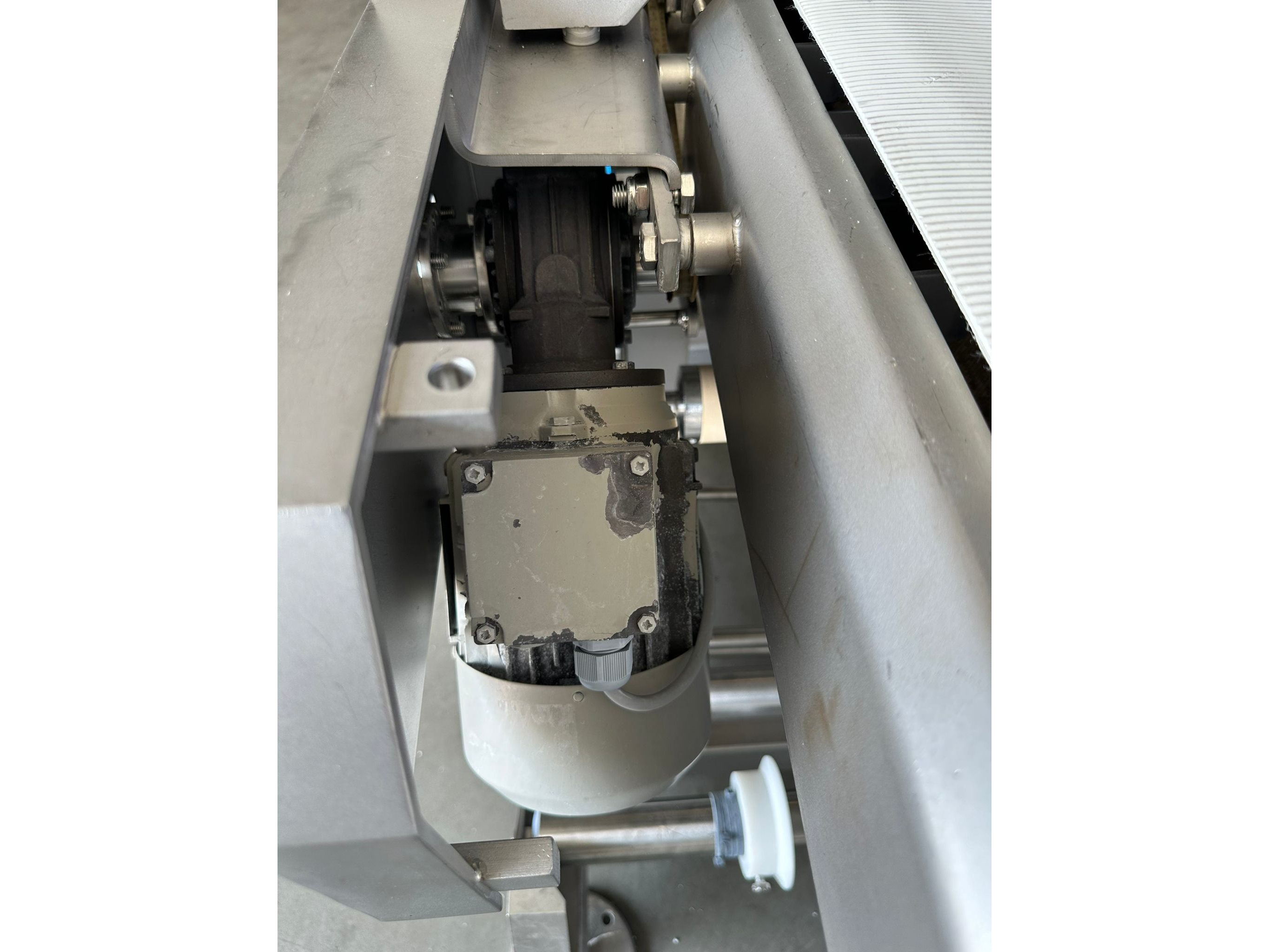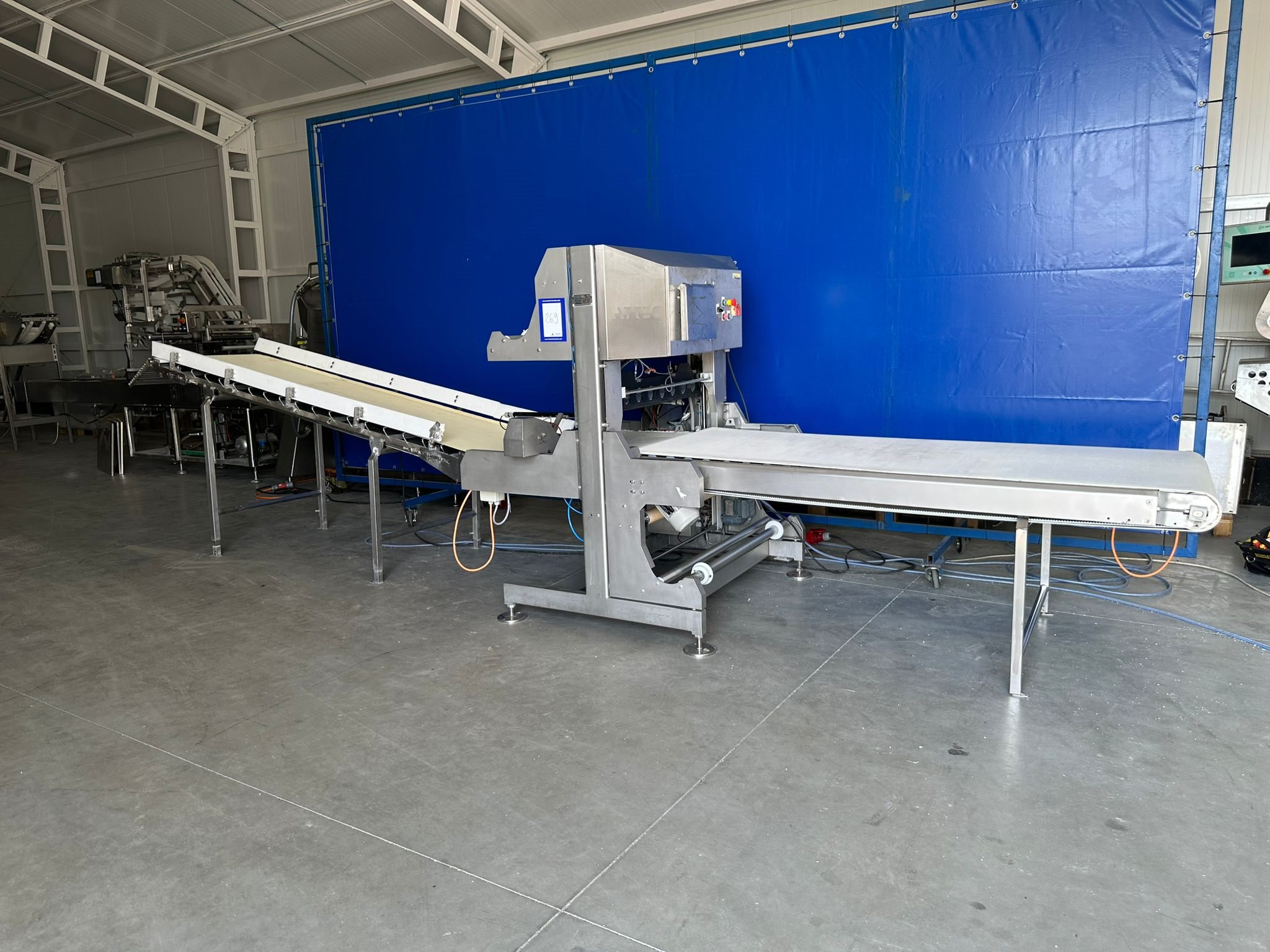 Attec Food Technology film wrapping machine with in- and outfeed transport belts, type: FWAL, series: 453, order number: 15860-001, year of construction: 2004, seal length: 1050 mm, plastic belts, belt width: 1000 mm and 750 mm, total dimensions: 6200 mm x 1700 mm x 1830 mm. Kavel locatie: Lipsko 241, 22-400 Zamość, Polen