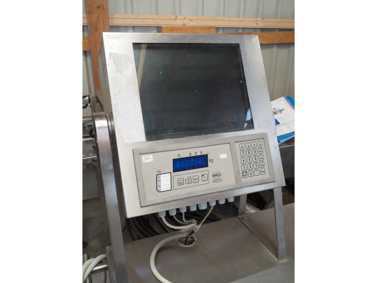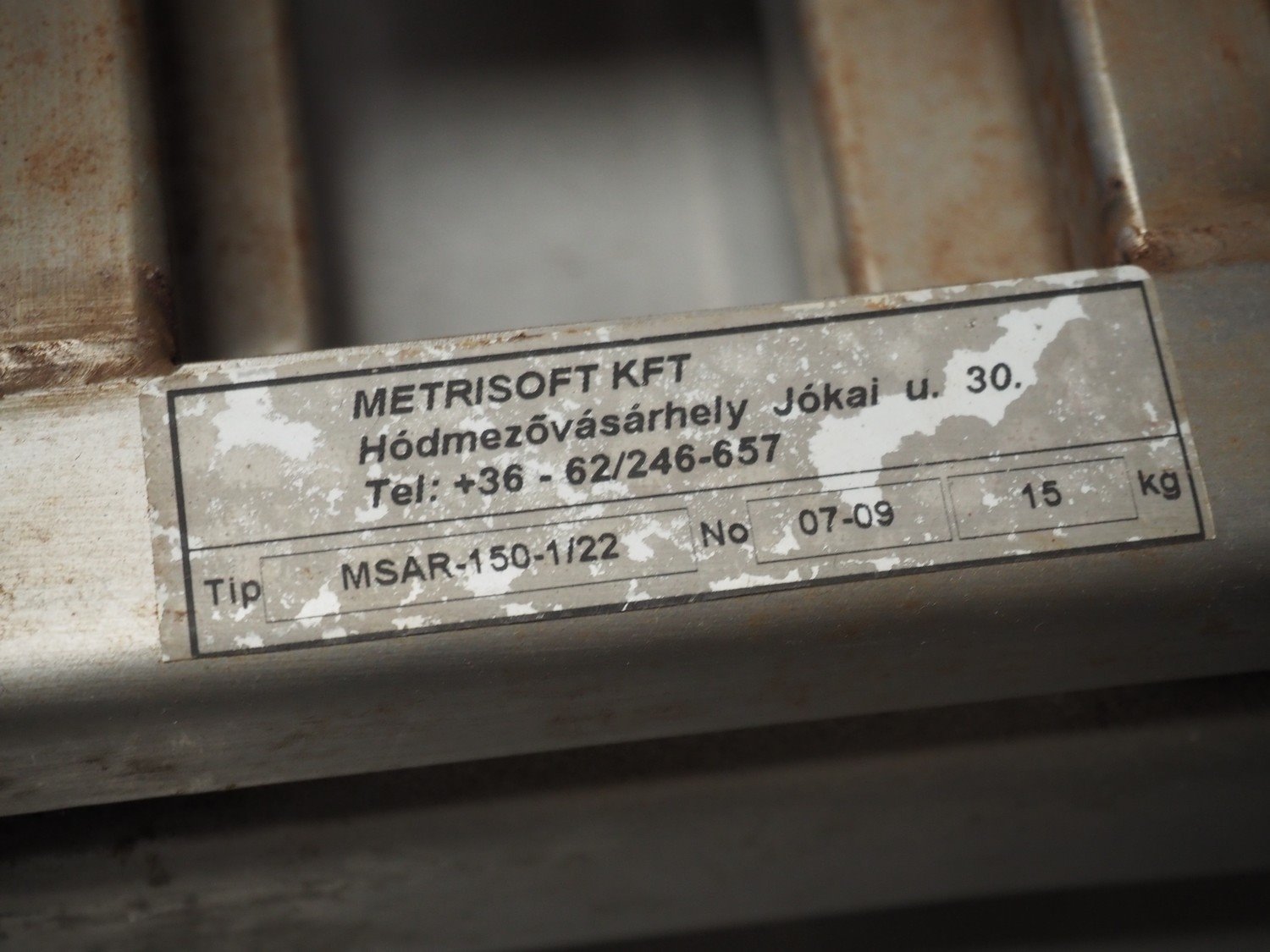 Metrisoft KFT weighing scale, type: MSAR-150-1/22, number: 07-09, 230 V, 50 Hz, minimum load: 0.1 kg, maximum load: 15 kg, e= 0.005 kg, dimensions scale: 400 mm x 300 mm, with Sato label printer, model: M-5900RVe, serial number: 6B520016, 100-120/200-240 V, 50/60 Hz, 3/1.5 A, total dimensions: 1200 mm x 700 mm x 1450 mm. Kavel locatie: Lipsko 241, 22-400 Zamość, Polen
