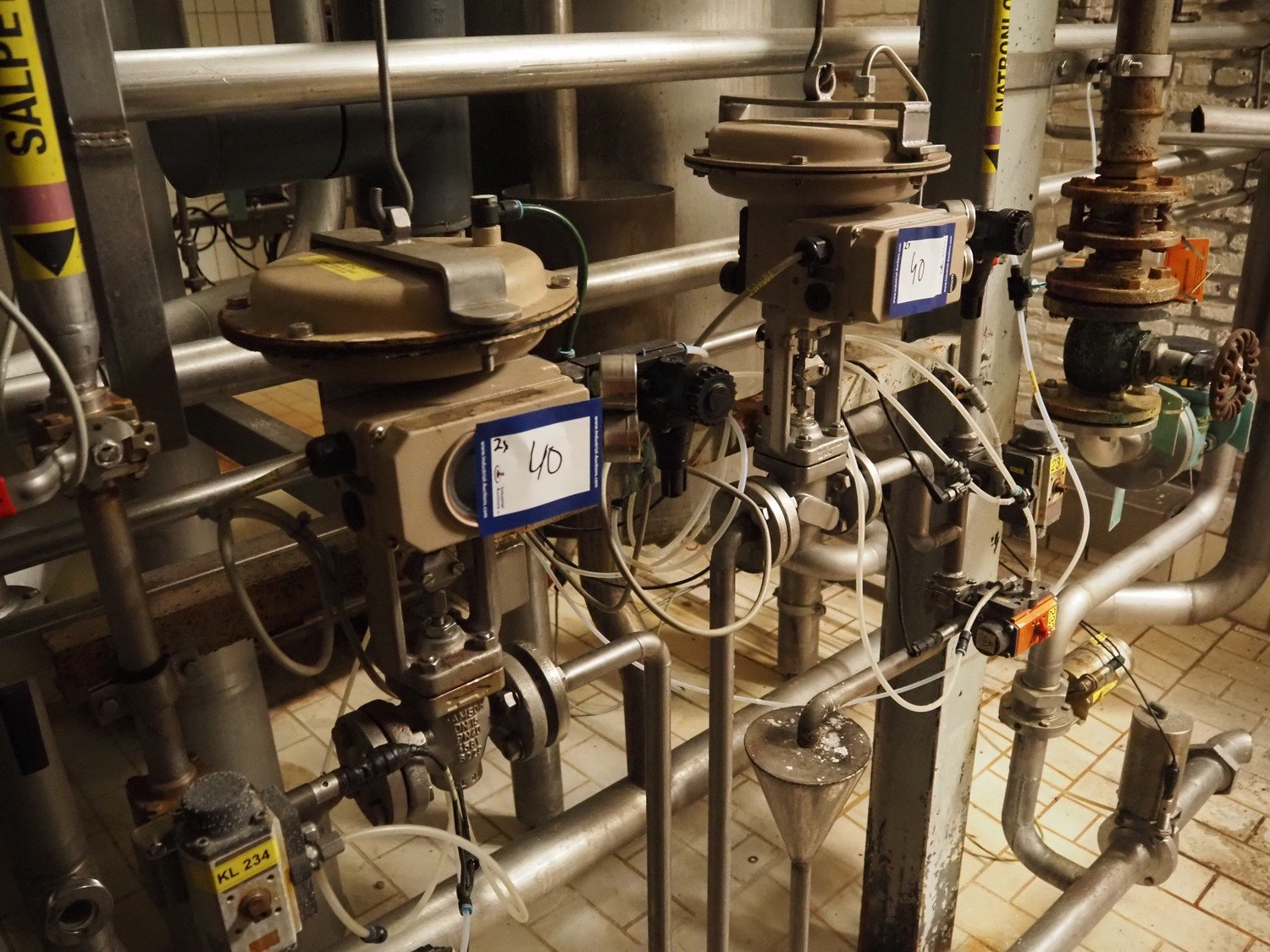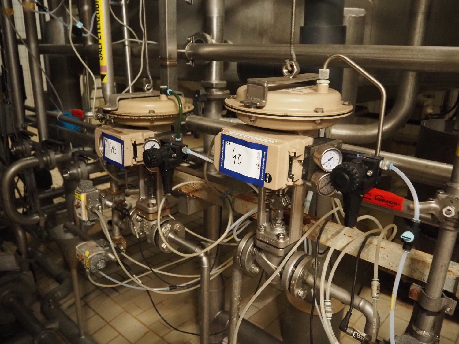 2 Samson valves with pneumatic diaphragm actuators and electropneumatic positioners, type valves: 3277, type positioner: 3730-2, dimensions valves: DN15, dimensions actuators: (2x) 300 mm x 200 mm x 450 mm. Kavel locatie: P. Stuyvesantweg 1, 8937 AC Leeuwarden, Nederland