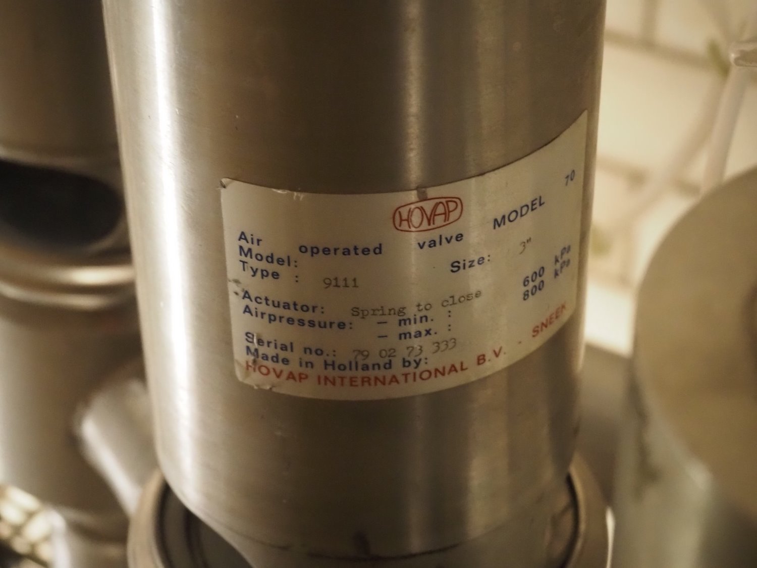 4 Hovap pneumatic valves, type: 9111, dimensions: (4x) ø 120 mm x 400 mm. Kavel locatie: P. Stuyvesantweg 1, 8937 AC Leeuwarden, Nederland
