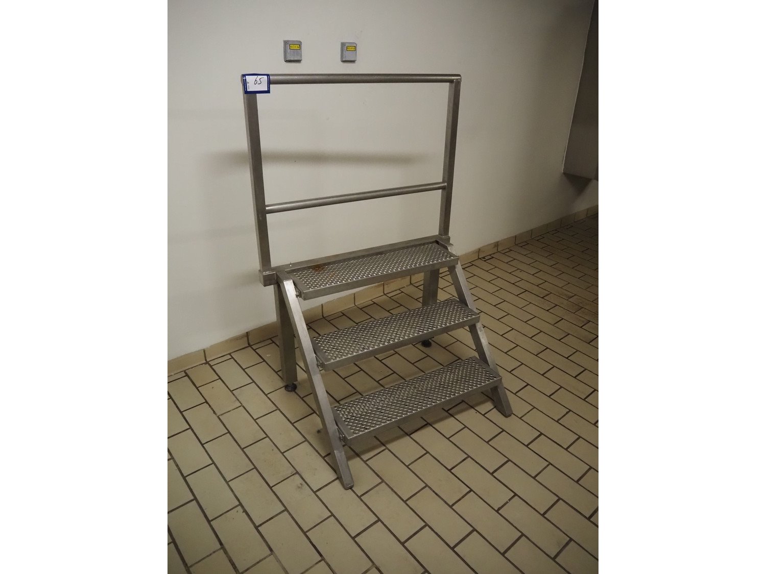 S/s stairs, 3 steps, dimensions: 1000 mm x 750 mm x 1440 mm. Kavel locatie: P. Stuyvesantweg 1, 8937 AC Leeuwarden, Nederland