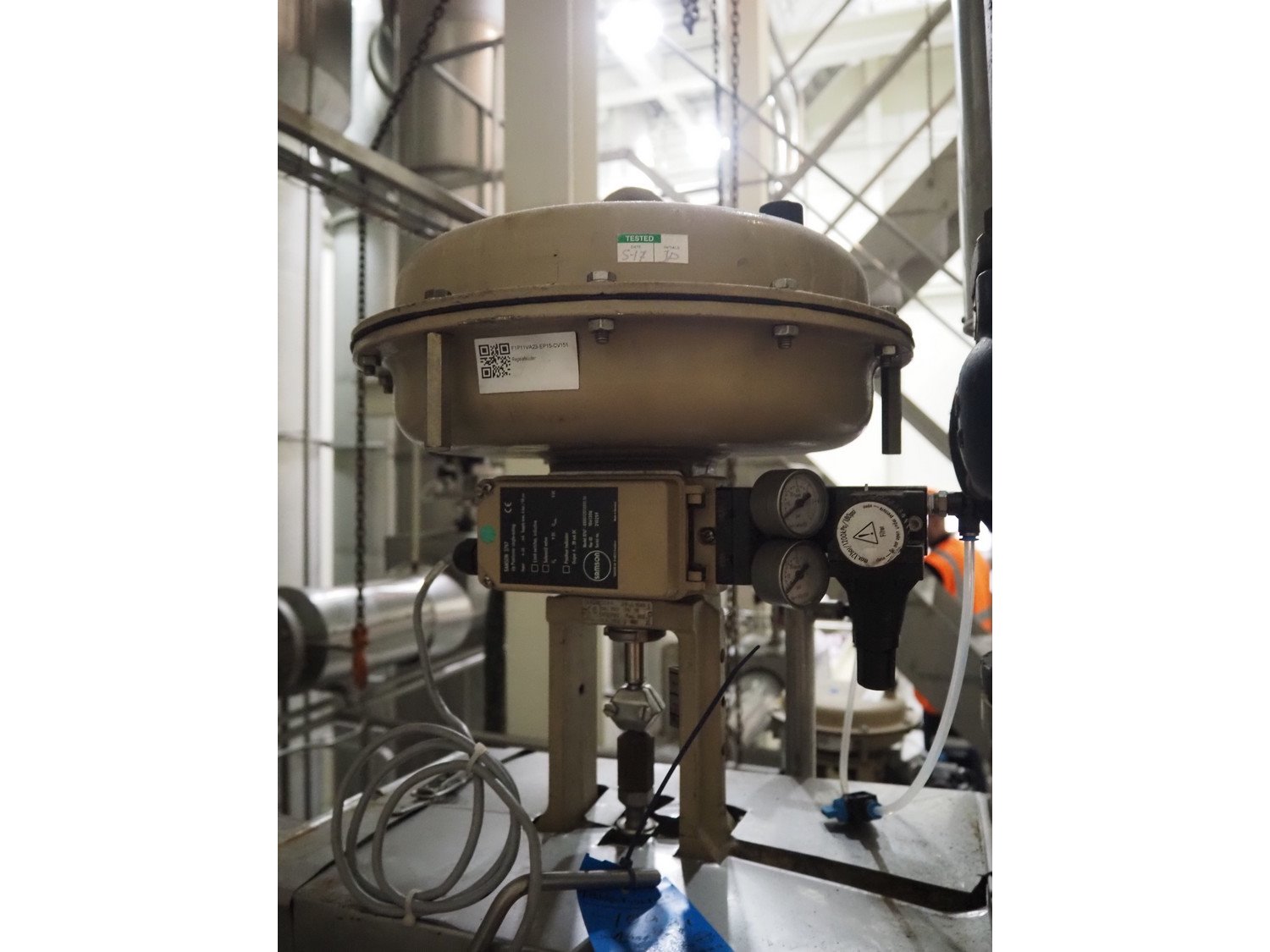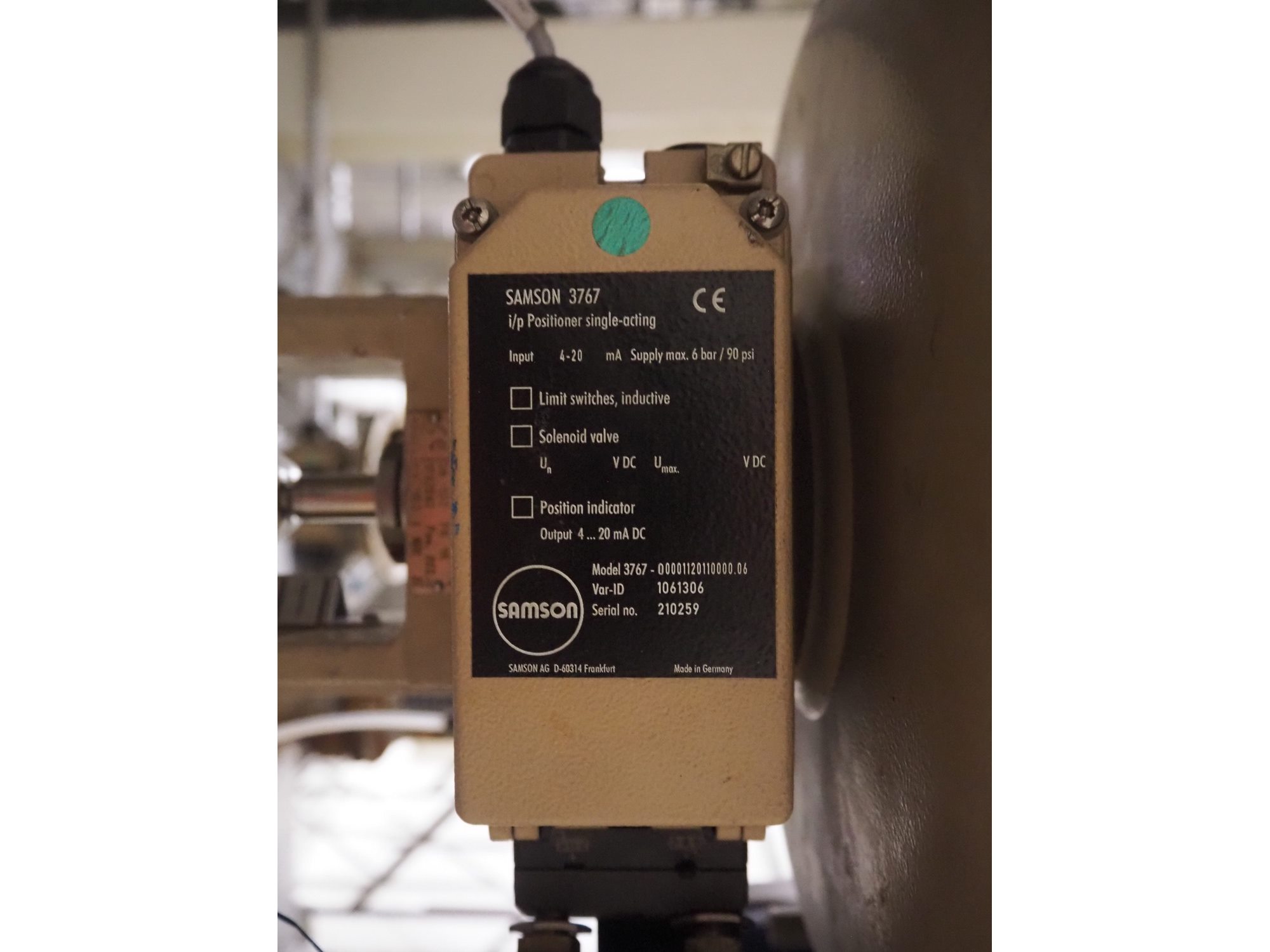 Samson valve with pneumatic diaphragm actuator and electropneumatic positioner, type actuator: 3277, type positioner: 3767, dimensions: 400 mm x 250 mm x 500 mm with ARI safety valve, DN: 100. Kavel locatie: P. Stuyvesantweg 1, 8937 AC Leeuwarden, Nederland