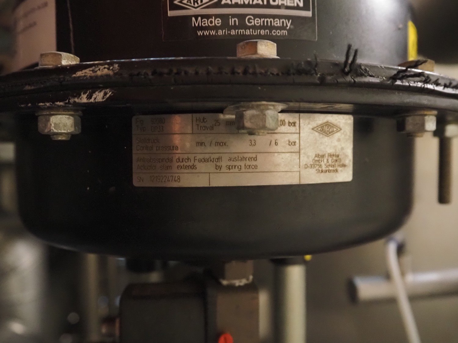 ARI Armaturen pneumatic valve, type: DP33, serial number: 1219224748, DN: 100, dimensions: ø 300 mm x 530 mm. Kavel locatie: P. Stuyvesantweg 1, 8937 AC Leeuwarden, Nederland