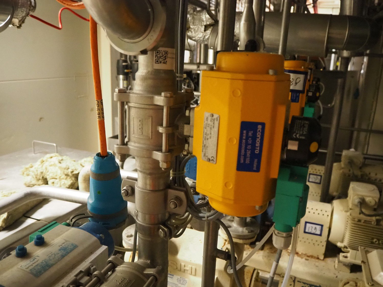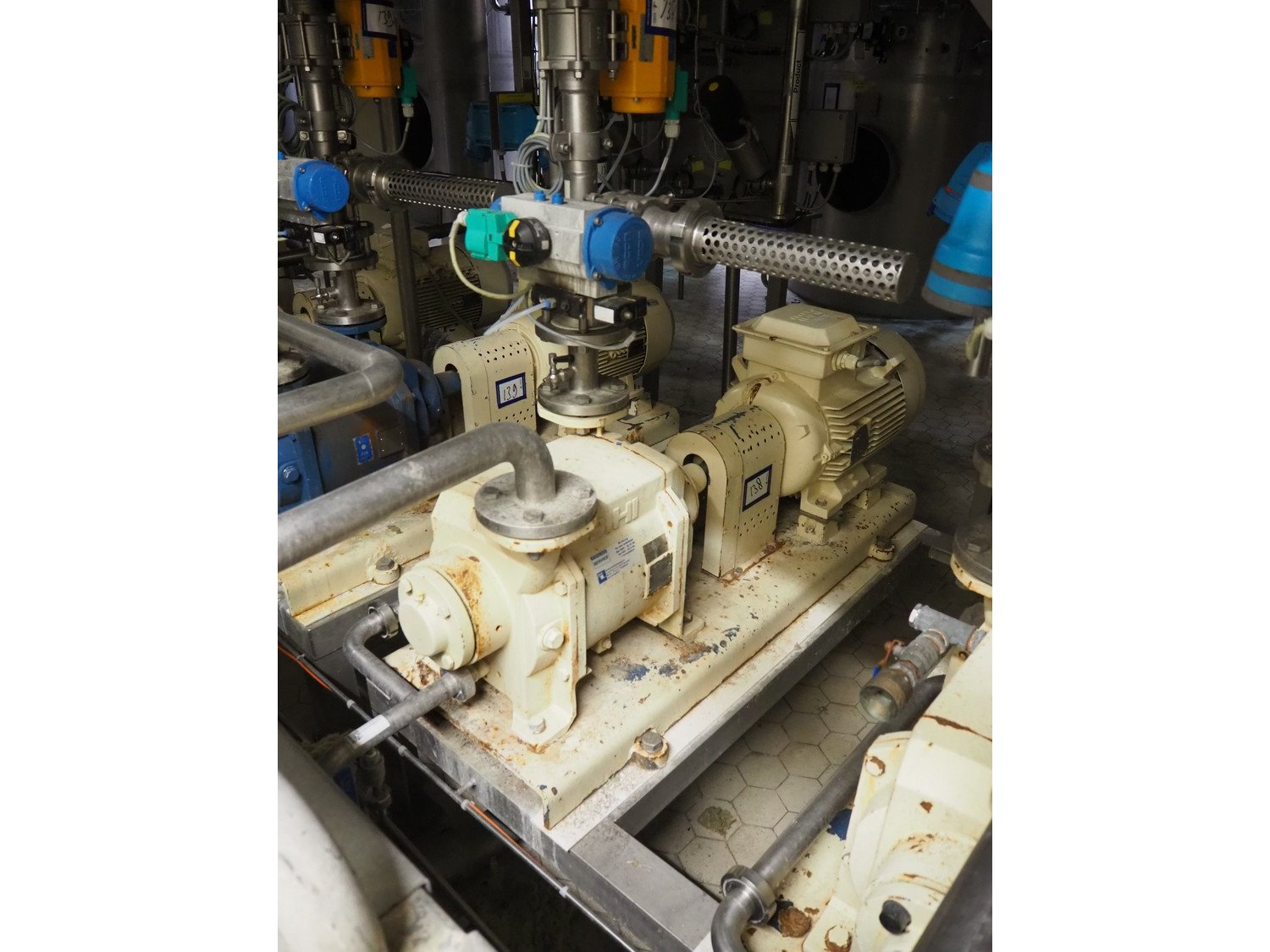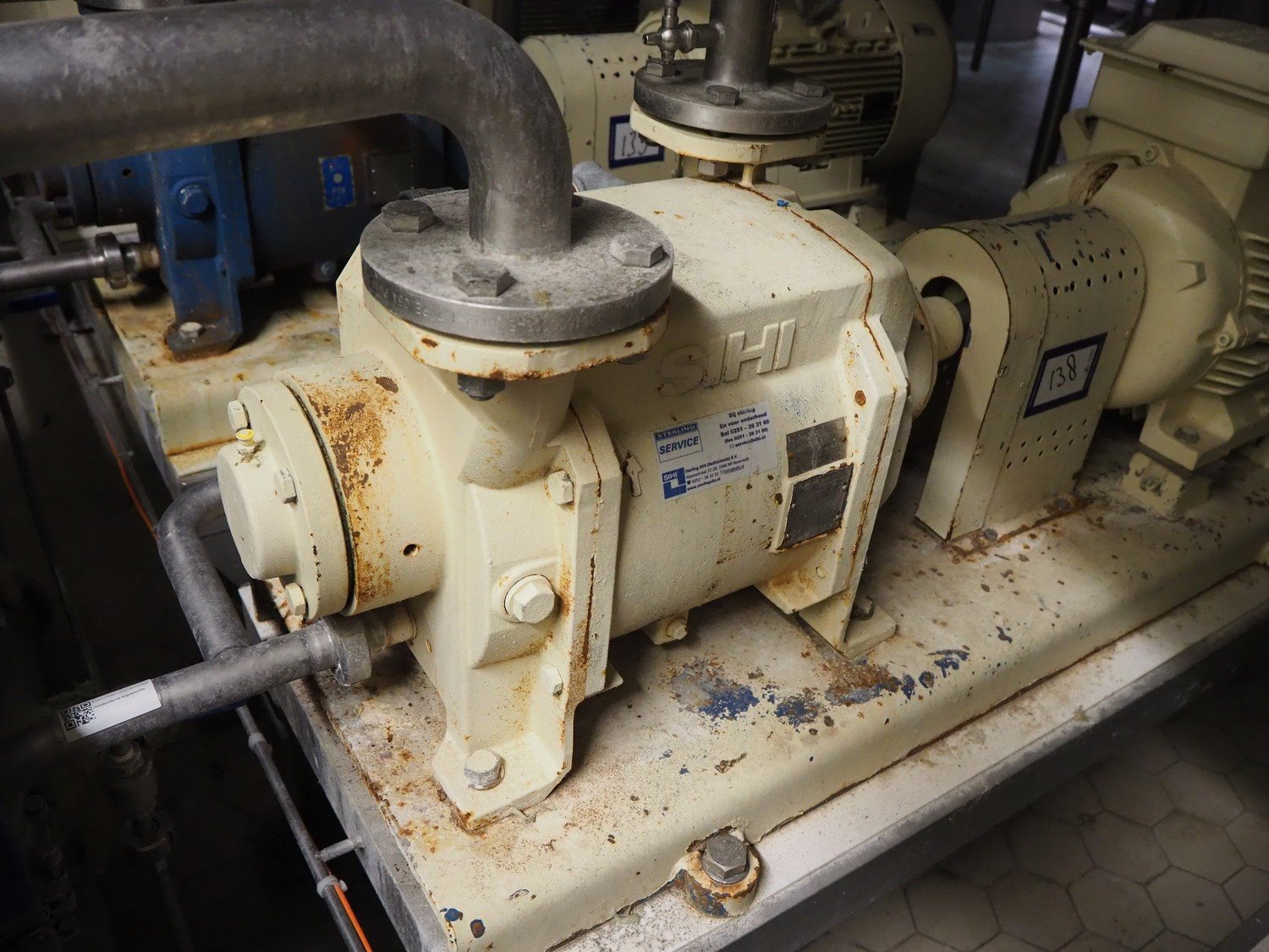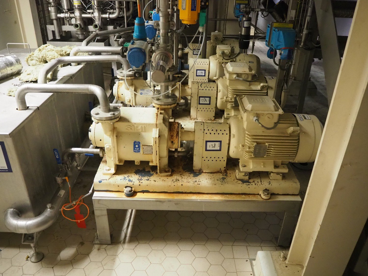 S/s frame with 2 Sterling Fluid Systems liquid ring vacuum pump, type: LPHX 50523 AB, year of construction: 2012, dimensions: 1350 mm x 1200 mm x 1000 mm, including various El-O-Matic lye/acid valves and Econ valve. Kavel locatie: P. Stuyvesantweg 1, 8937 AC Leeuwarden, Nederland