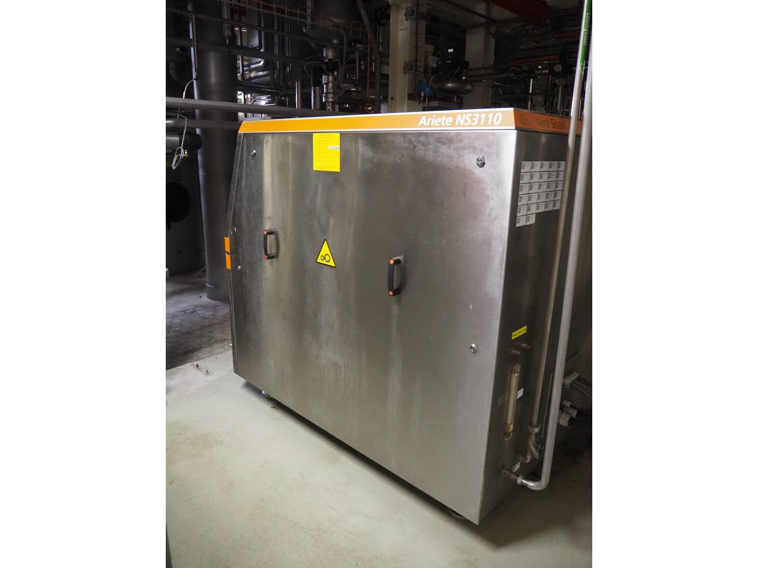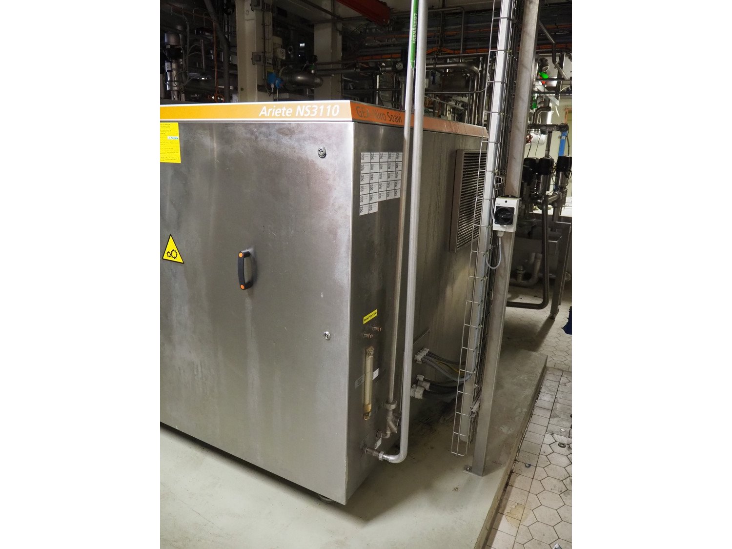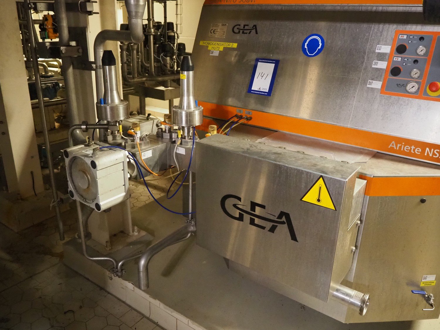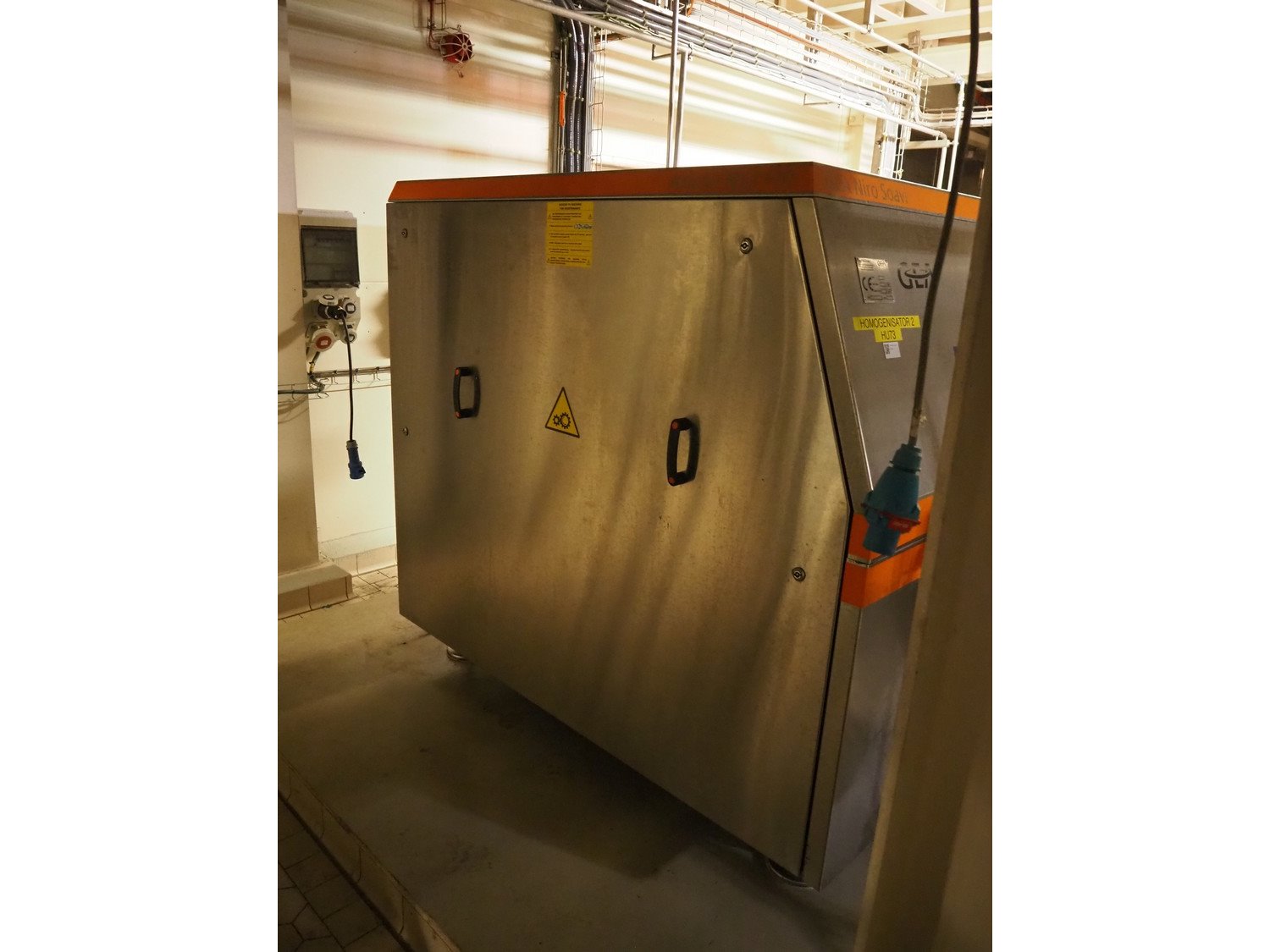 Gea Niro Soavi homogenizer, type: NS3110/90H, serial number: 9344, year of construction: 2012, maximum pressure: 40 MPa, rated flow: 5800 dm³/h, dimensions: 2600 mm x 1600 mm x 1550 mm. Kavel locatie: P. Stuyvesantweg 1, 8937 AC Leeuwarden, Nederland