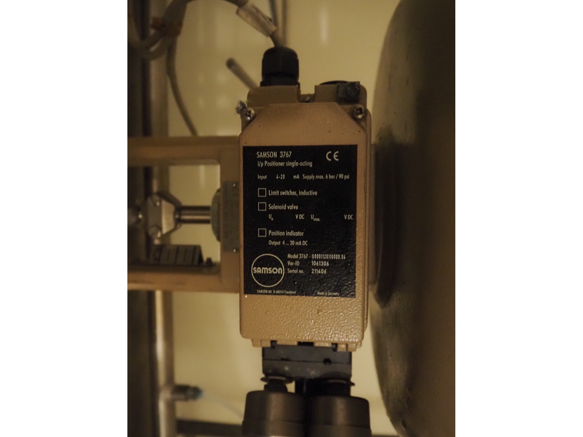Samson valve with pneumatic diaphragm actuator and electropneumatic positioner, type actuator: 3277, type positioner: 3767, dimensions: 400 mm x 44 mm x 650 mm. Kavel locatie: P. Stuyvesantweg 1, 8937 AC Leeuwarden, Nederland